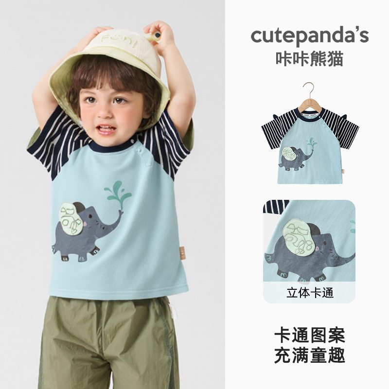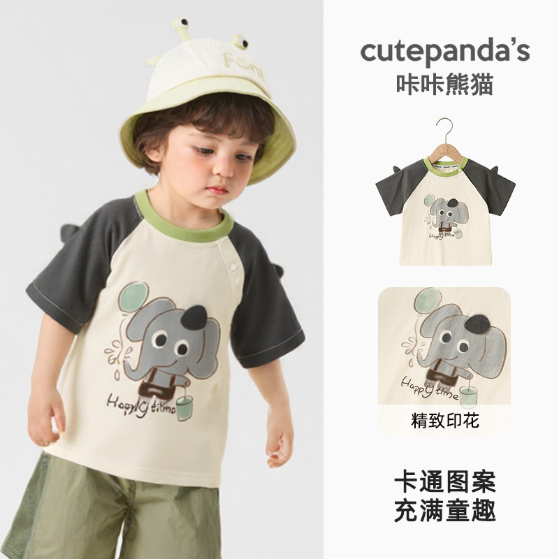 카카 팬더 어린이 캐주얼 반팔 티셔츠 소년 여름 원피스 여자 아기 여름 반소매 셔츠 아동복스토어 가기