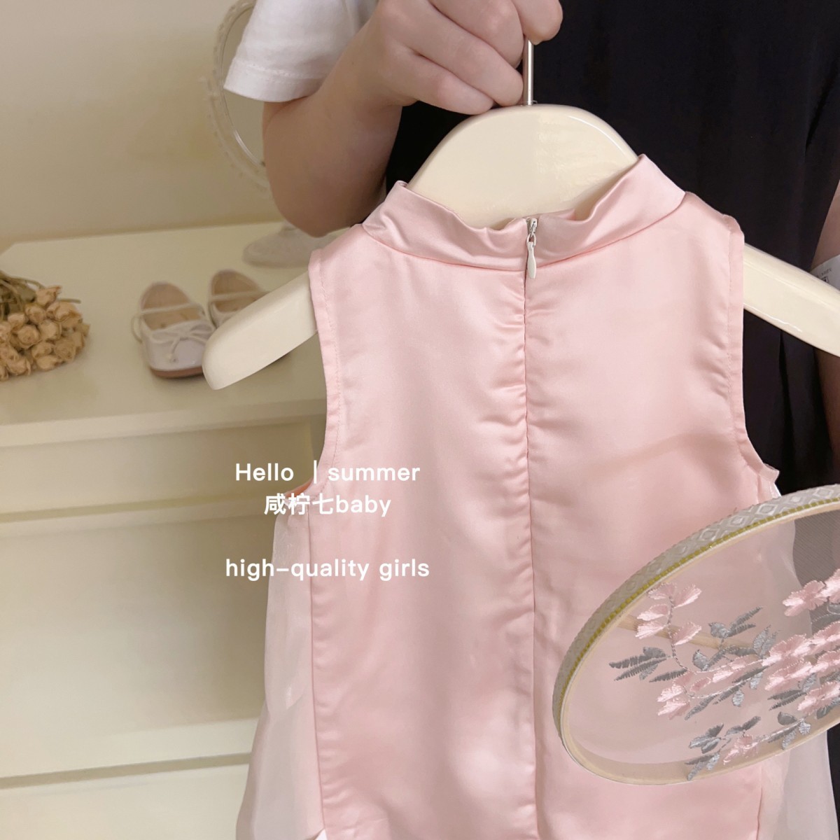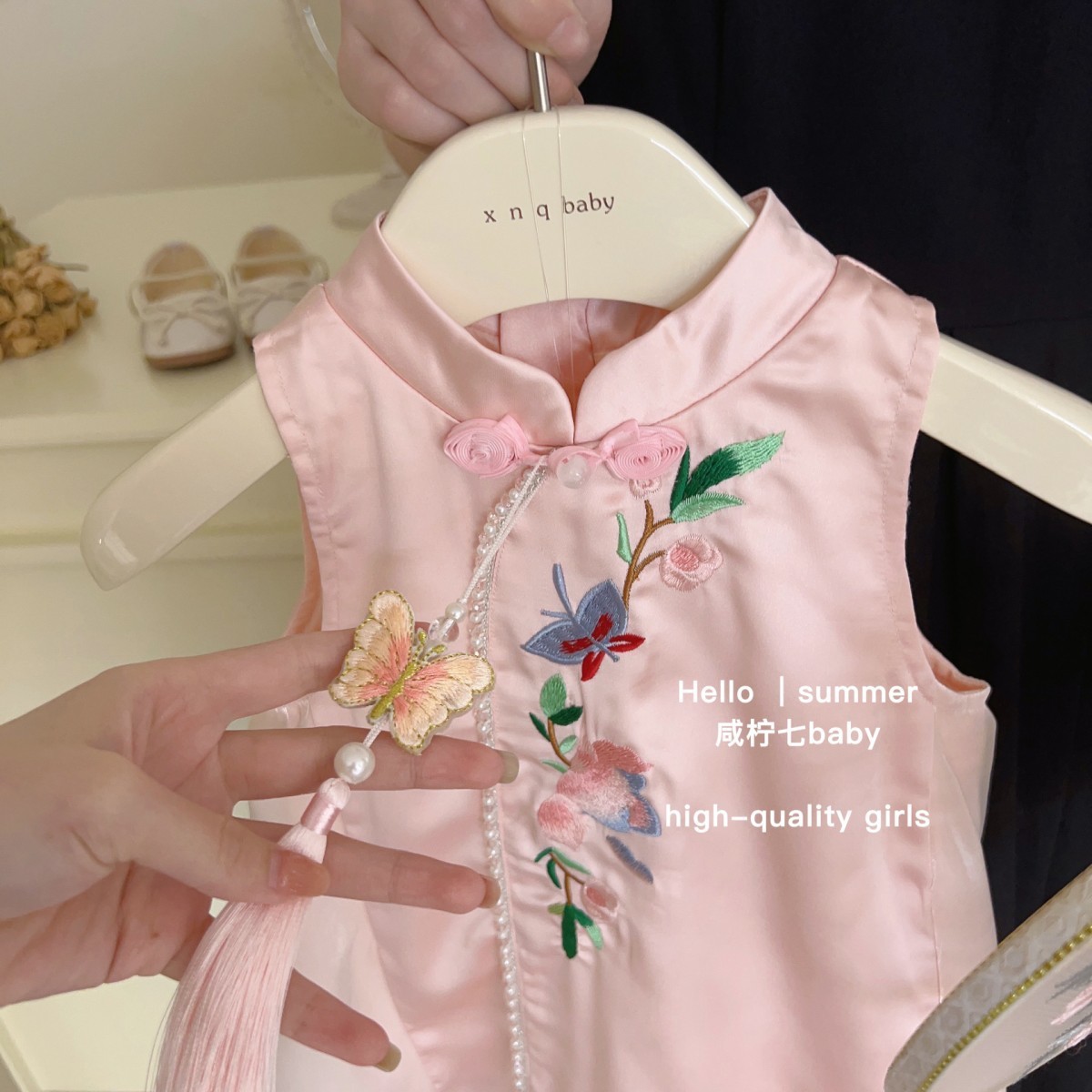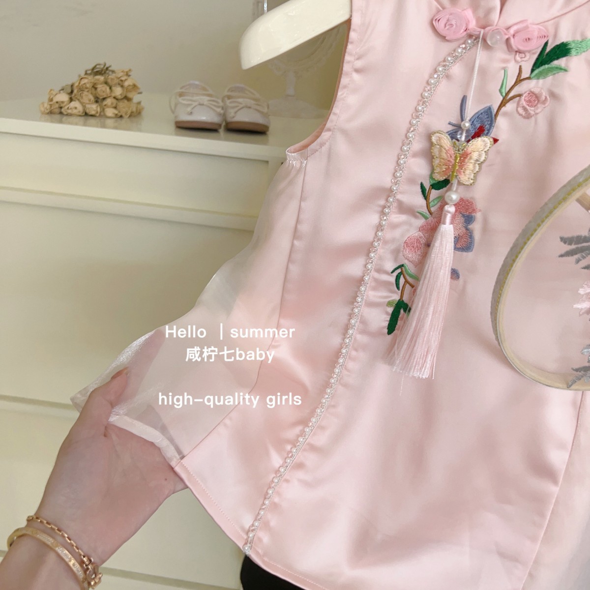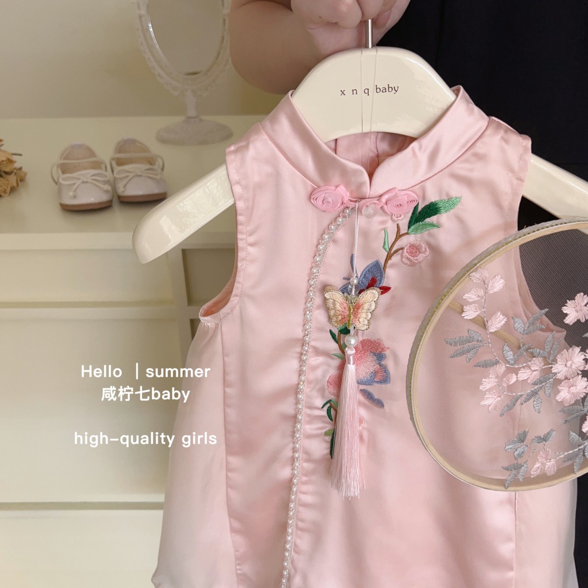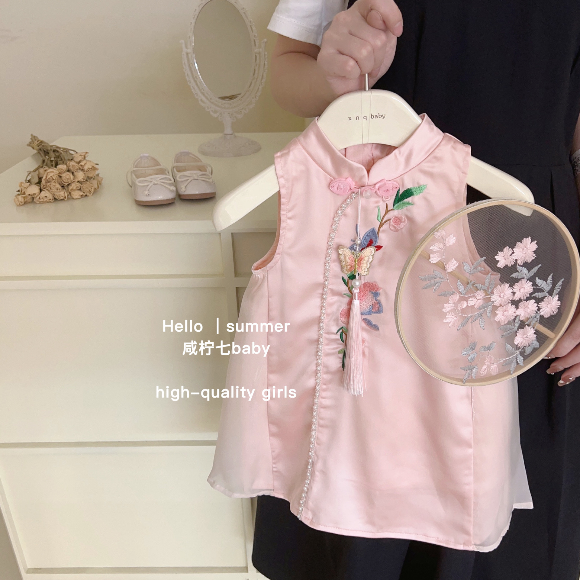 2025 새로운 스타일의 어린이 국가 스타일 자수 소녀 cheongsam 원피스 여름 새로운 중국 민소매 조끼 스커트스토어 가기