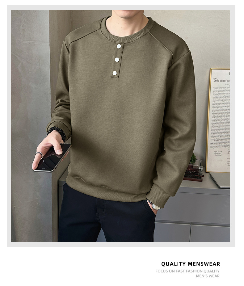 남자 스웨드셔츠 봄 · 가을 캐주얼 올매치 2025 뉴 유스 크루 넥 긴팔 티셔츠 센스 남성 패션스토어 가기