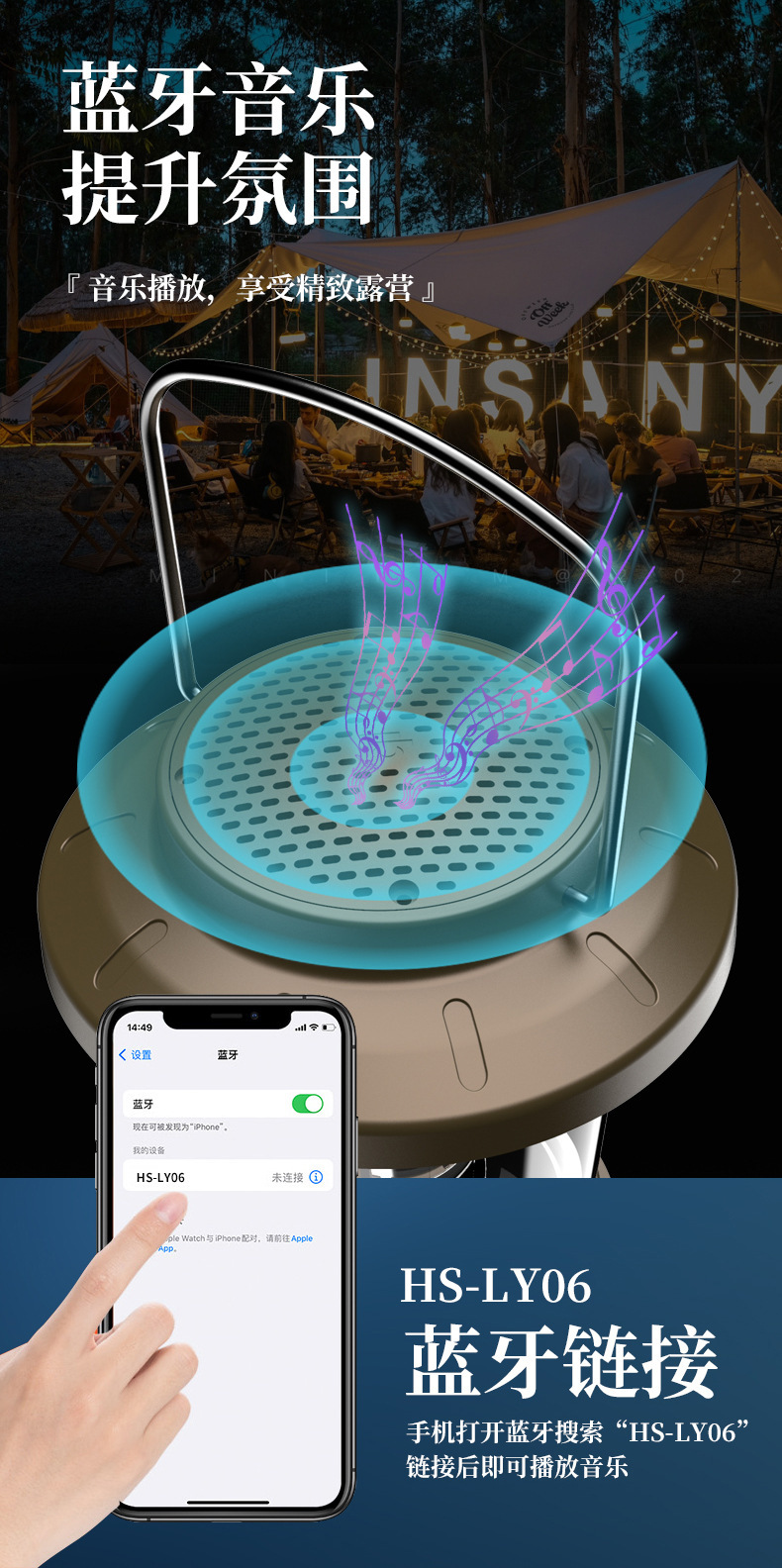• 노란색 빛 블루투스 스피커 캠핑 라이트