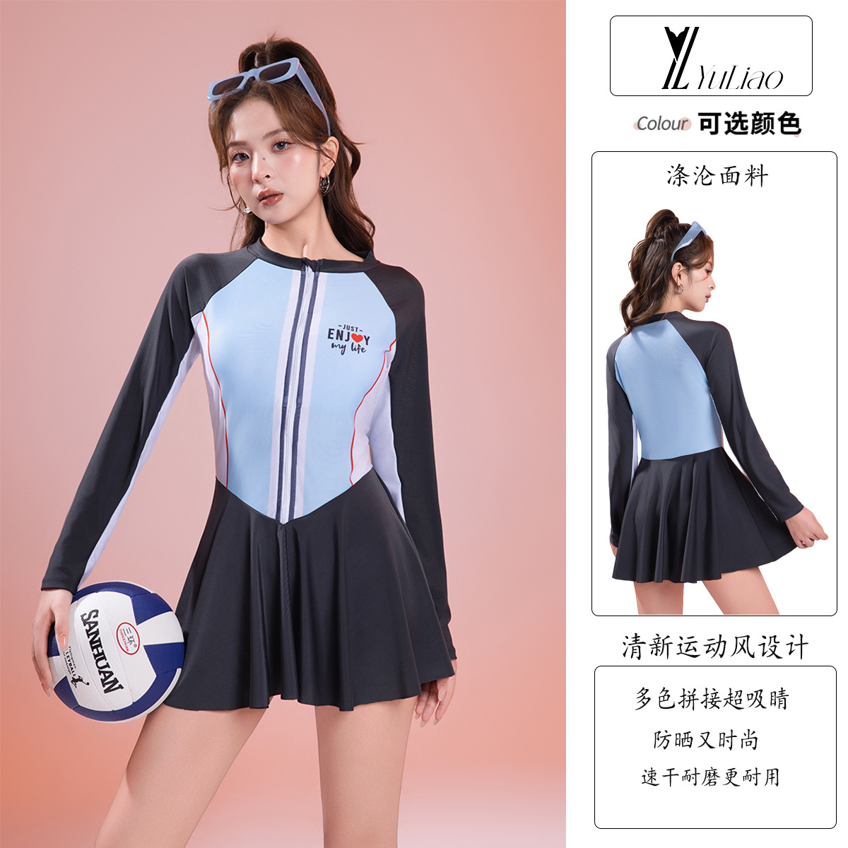 2025 새로운 수영복 여성 원피스 스커트 온천 휴가 보수적 인 선 스크린 긴팔 수영복 폴리 에스테르 빠른 건조 핫 세일