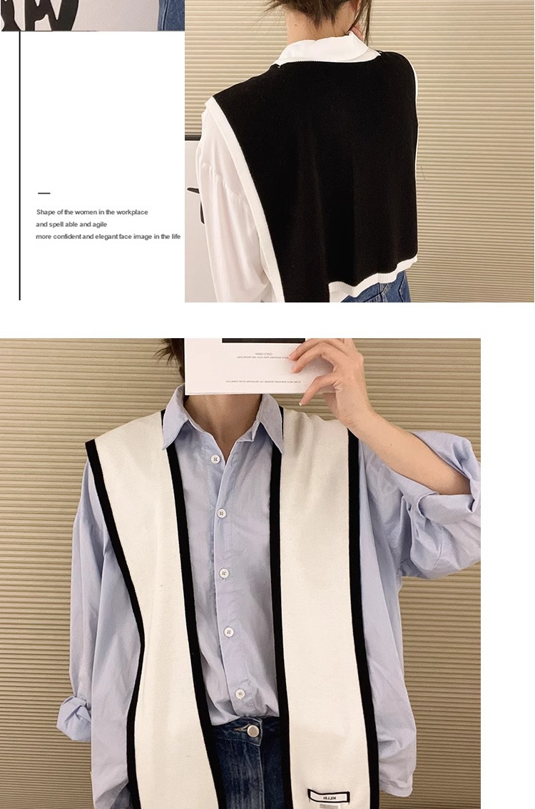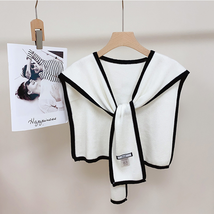 새로운 프랑스 스타일 올 매치 스트라이프 작은 목도리 여성 하이 엔드 스타일 봄과 가을 니트 스카프 장식 웨어 듀얼 사용스토어 가기