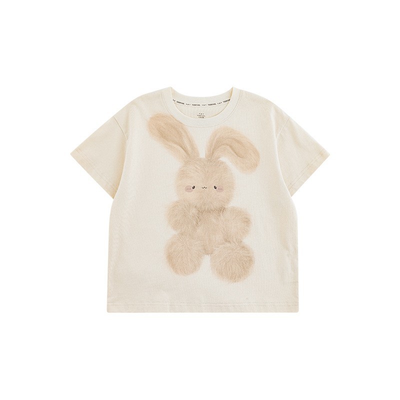 Wuri Boo Girl's Rabbit Print 티셔츠 2025 여름 쿨 리브 크루 넥 캐주얼 루즈 반팔 티셔츠