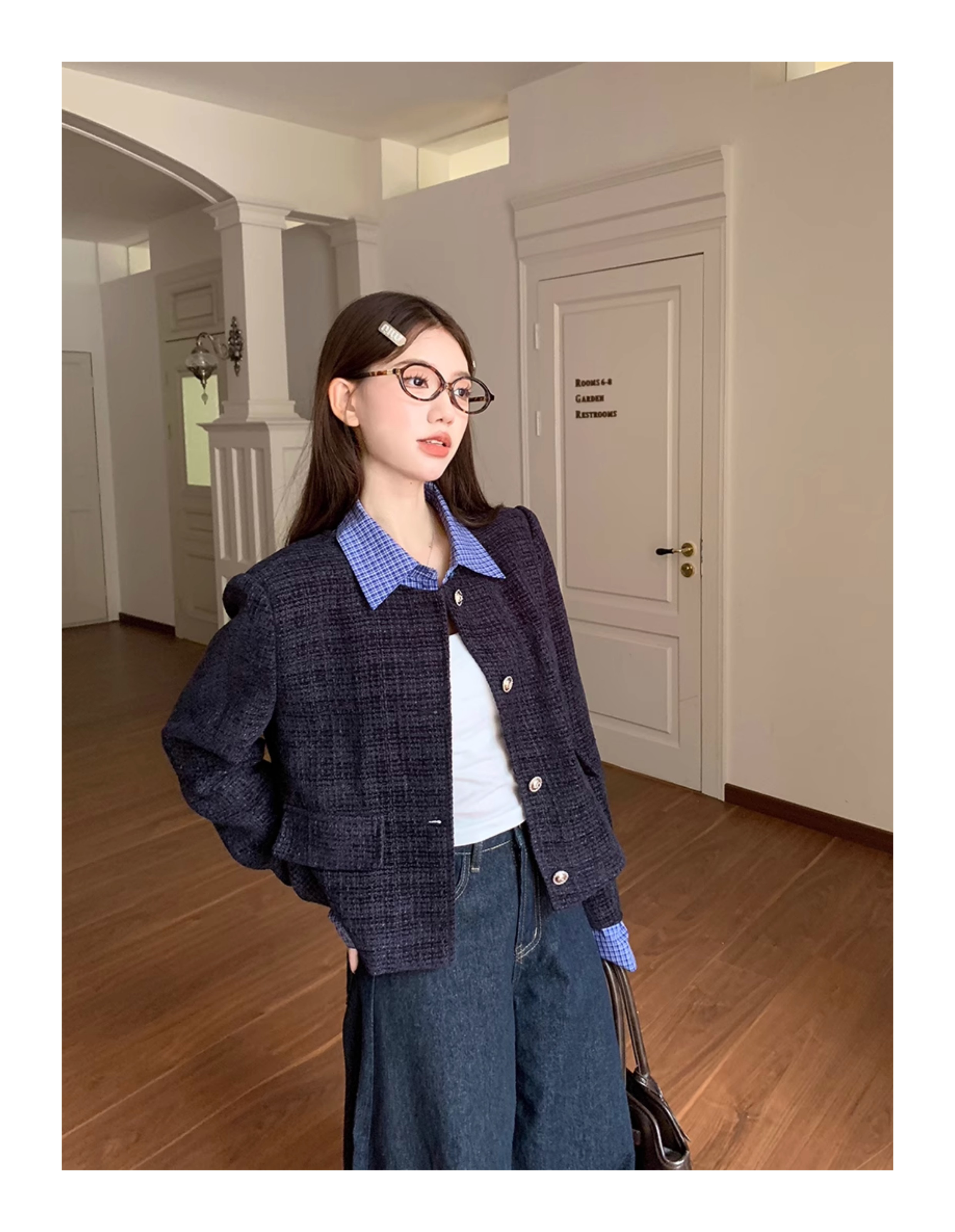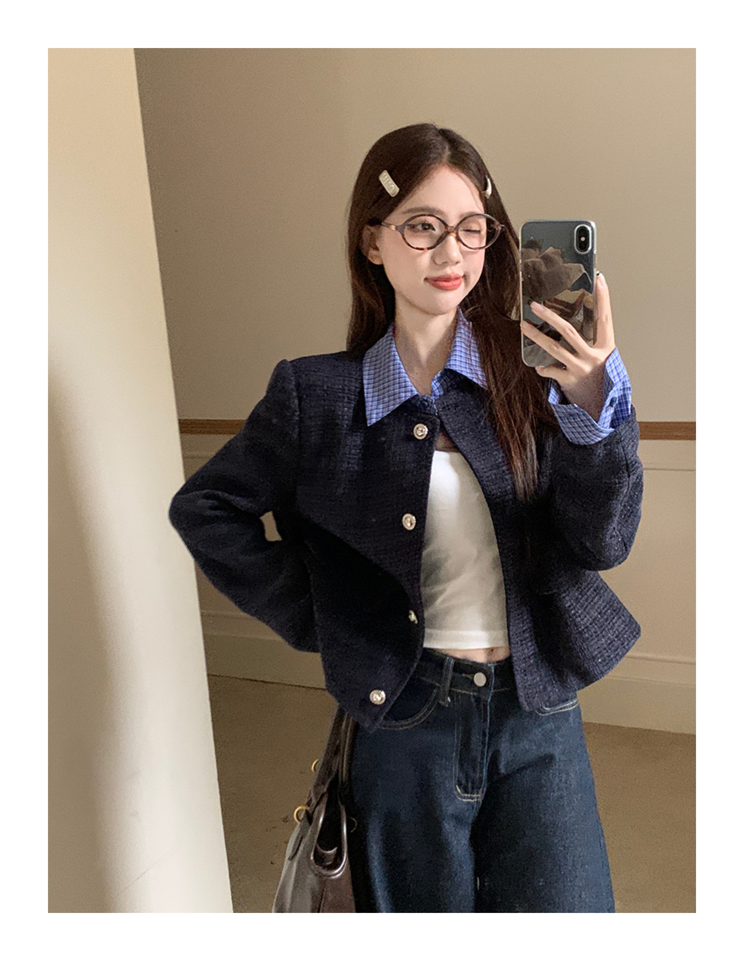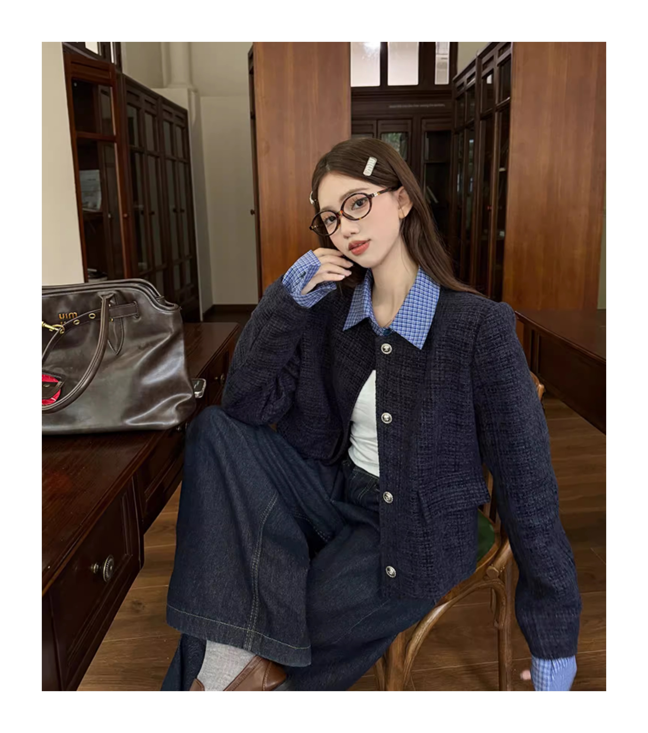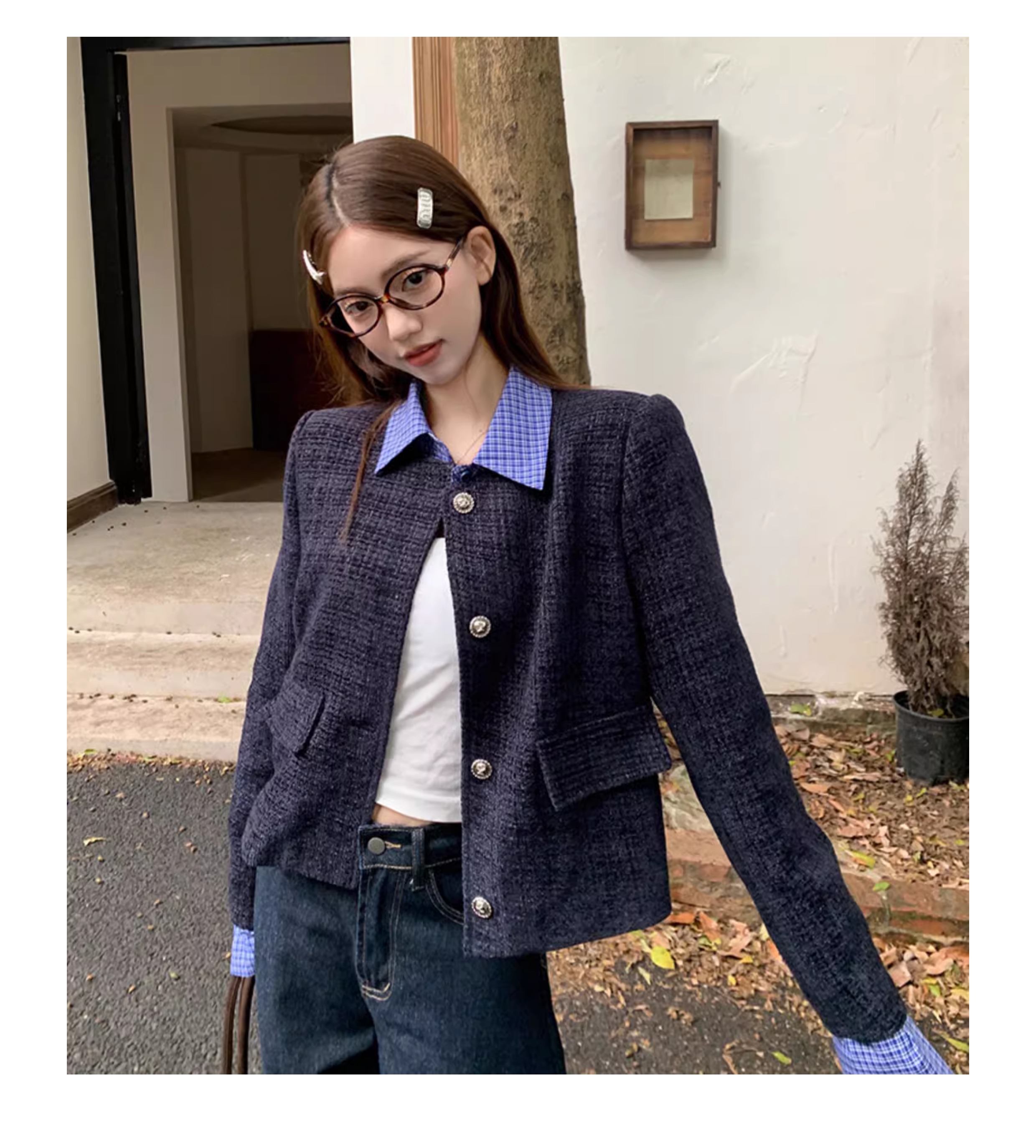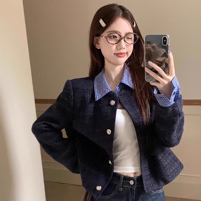 한국 스타일 샤넬 스타일 코트 여자 이른 봄 2025 새로운 스티칭 센스 슈퍼 잘 생긴 짧은 우아한 카디건 탑스토어 가기
