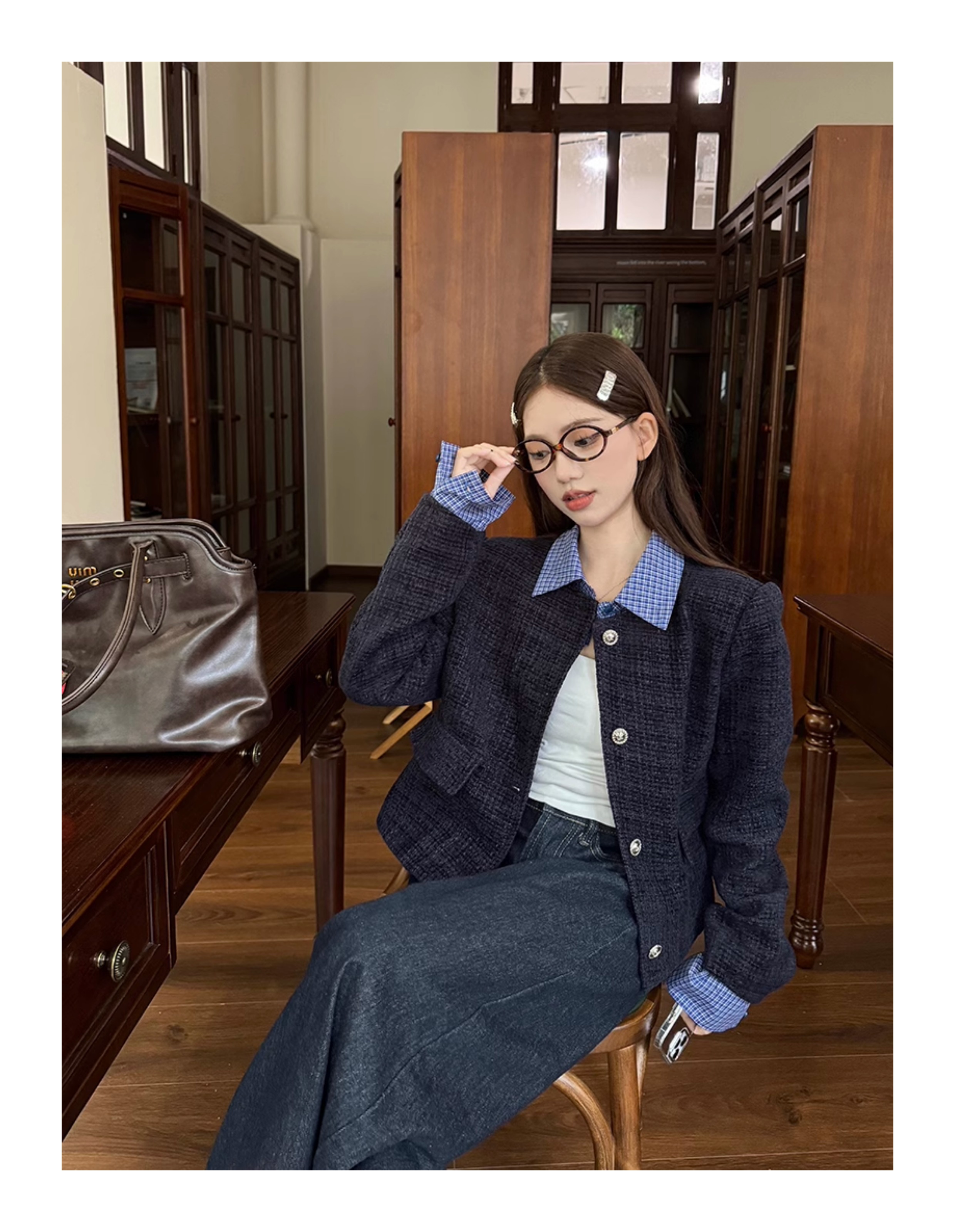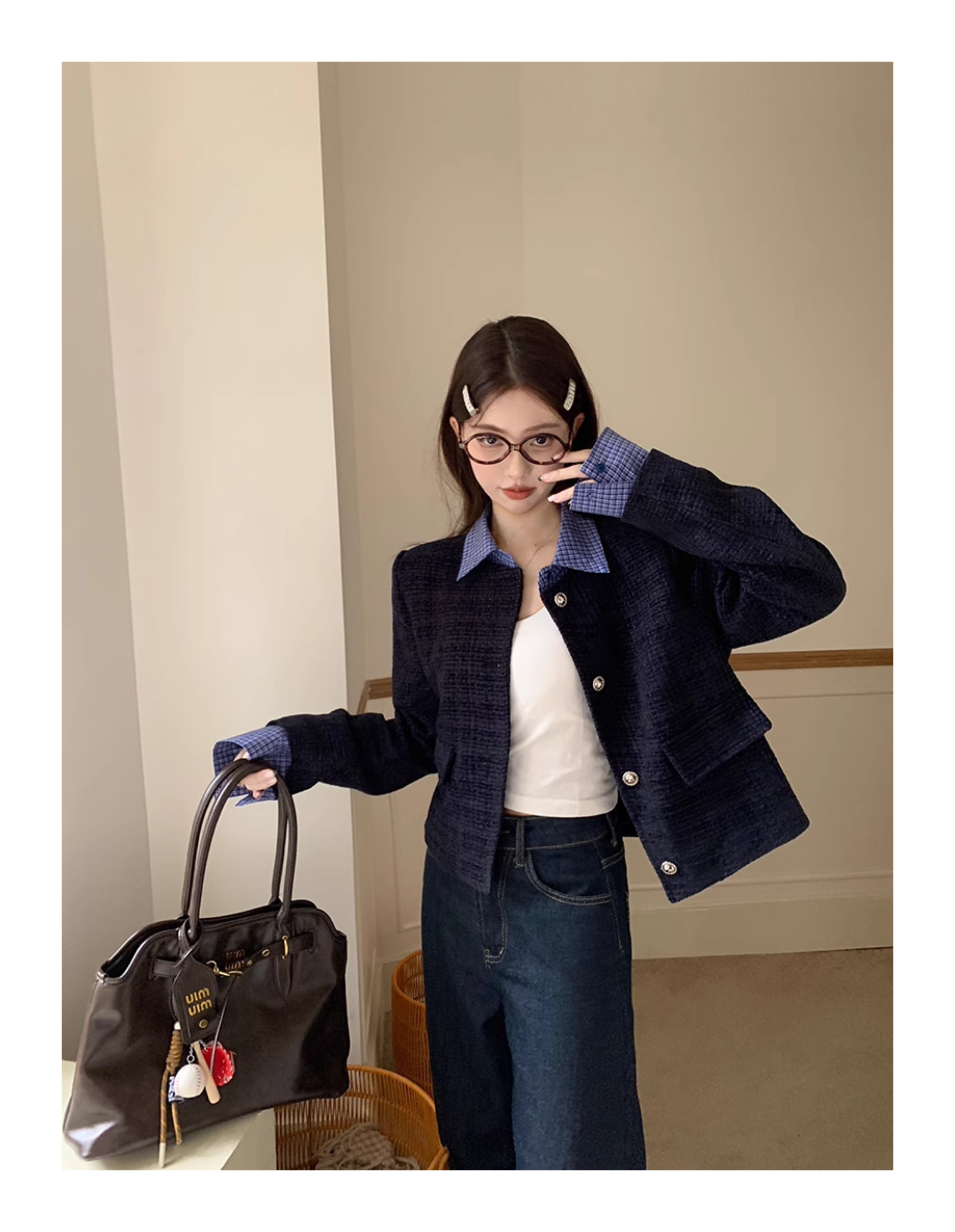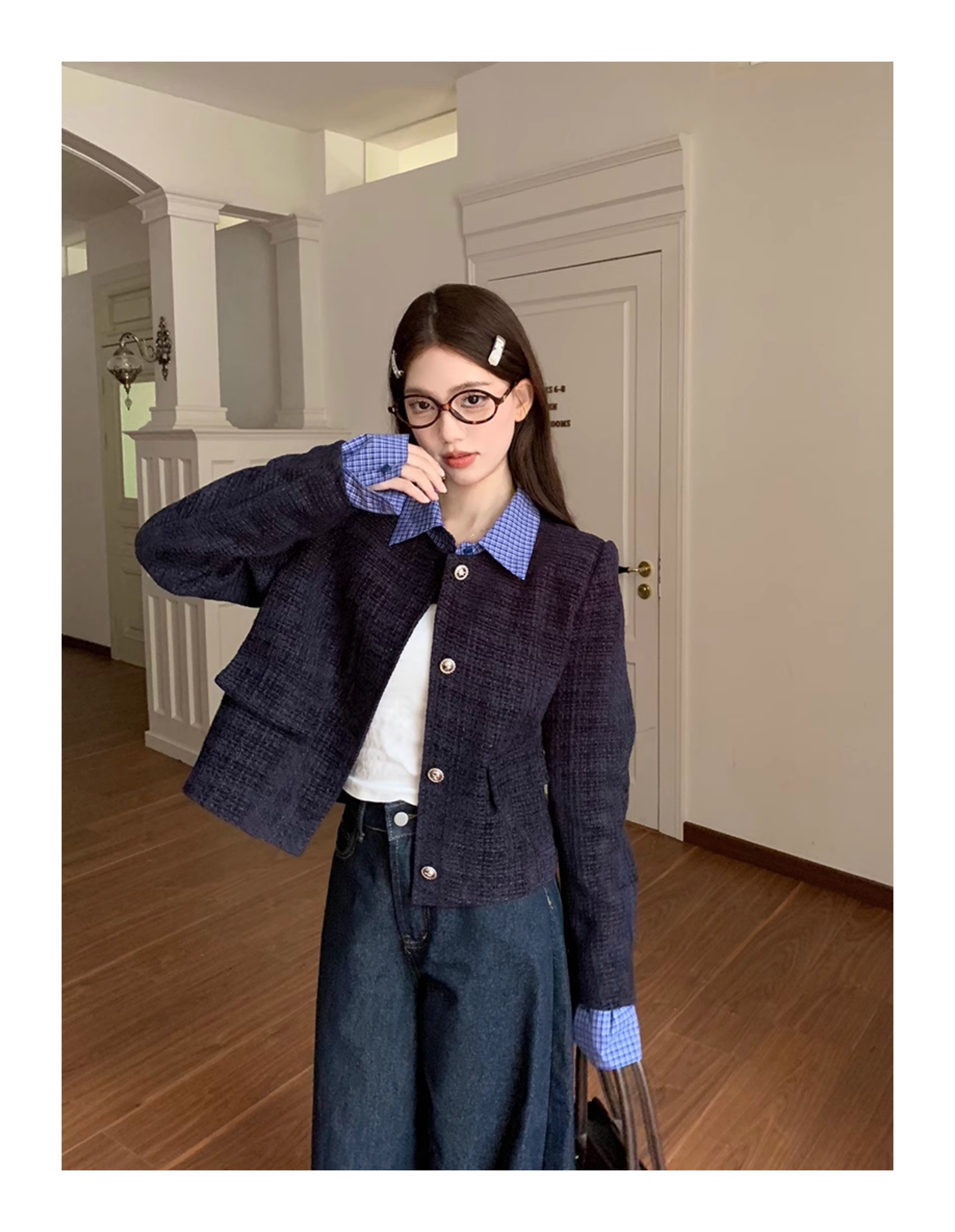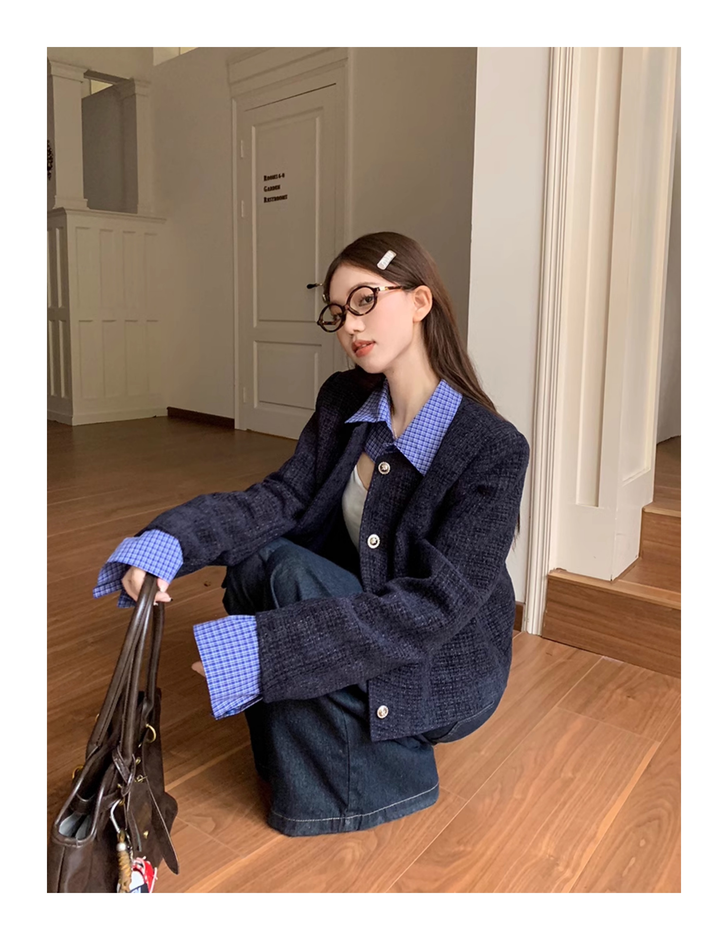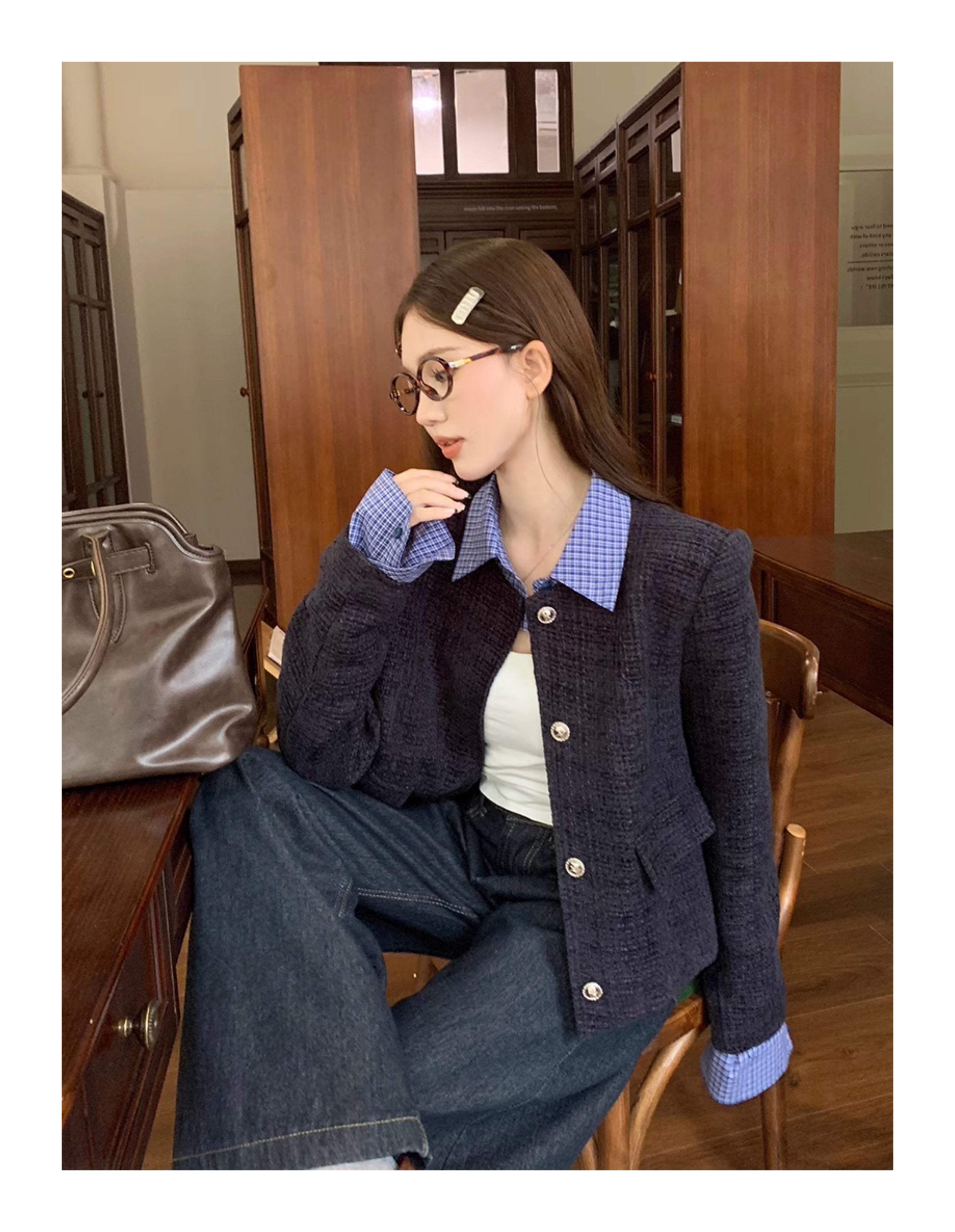 한국 스타일 샤넬 스타일 코트 여자 이른 봄 2025 새로운 스티칭 센스 슈퍼 잘 생긴 짧은 우아한 카디건 탑스토어 가기