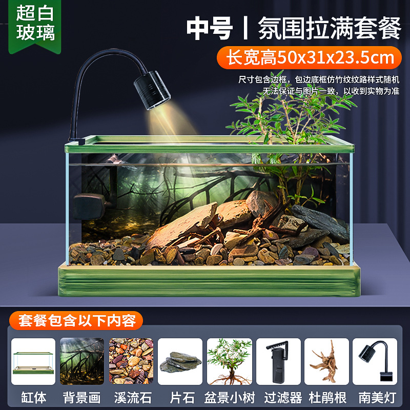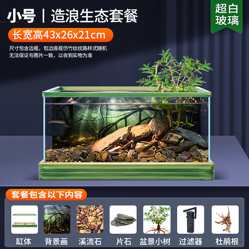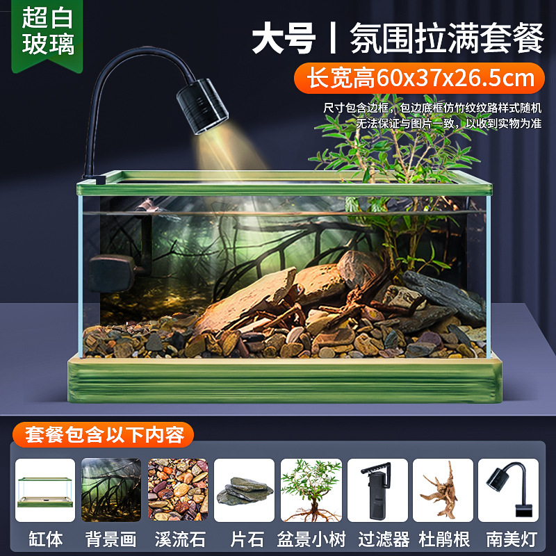 데스크탑 남미 풍류 풍경 거실 작은 물고기와 거북이 공동 재배 생태 물고기 탱크 슈퍼 화이트 유리 새로운 거북이 탱크스토어 가기