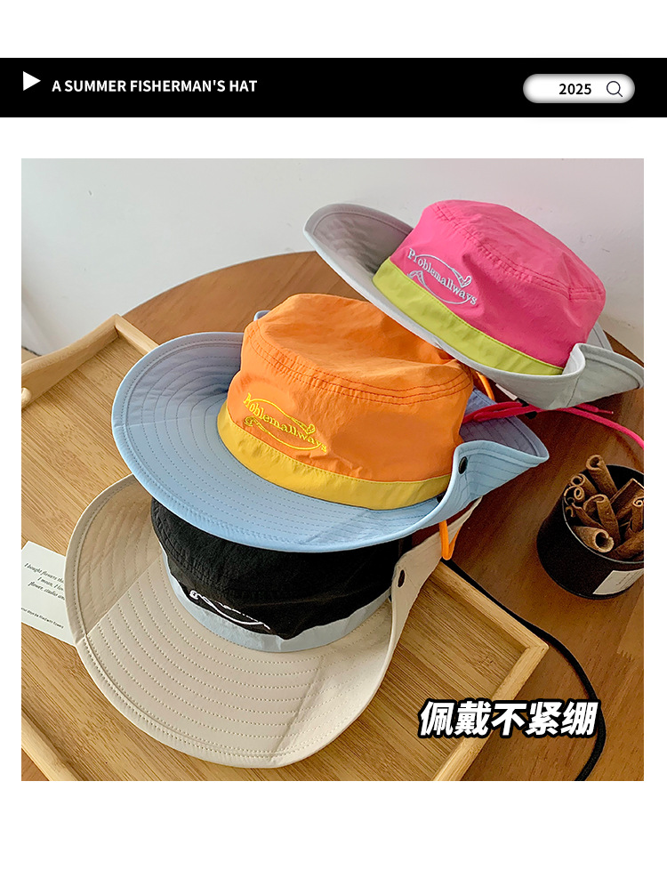 2025 봄 새 ~ 부모-어린이 수 놓은 어린이 색상 차단 등산 모자 소년 소녀 야외 하이킹 컬러 매칭 승마 선 스크린