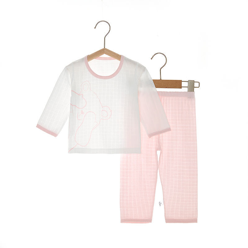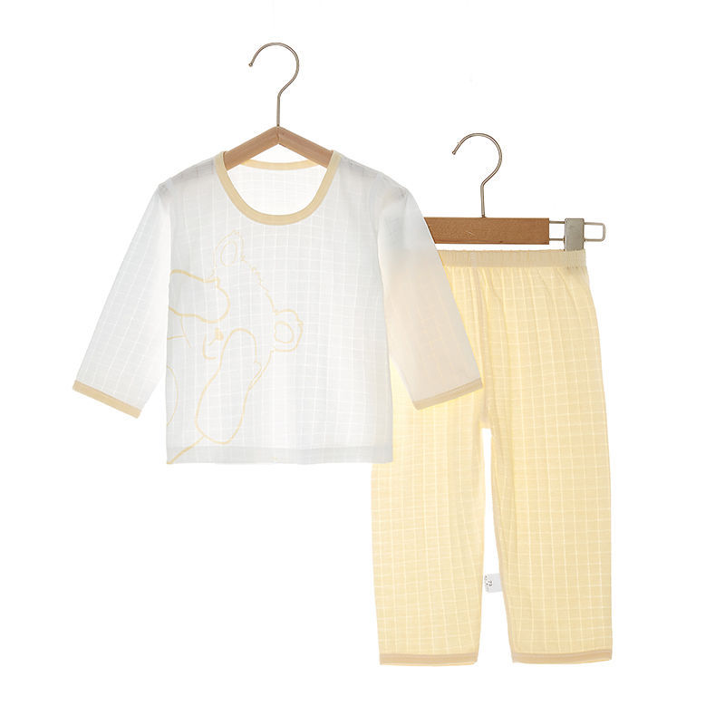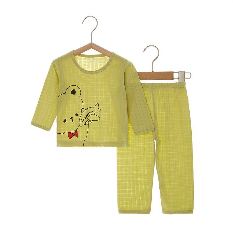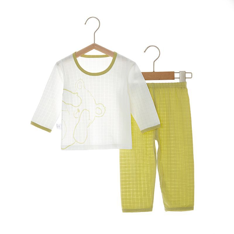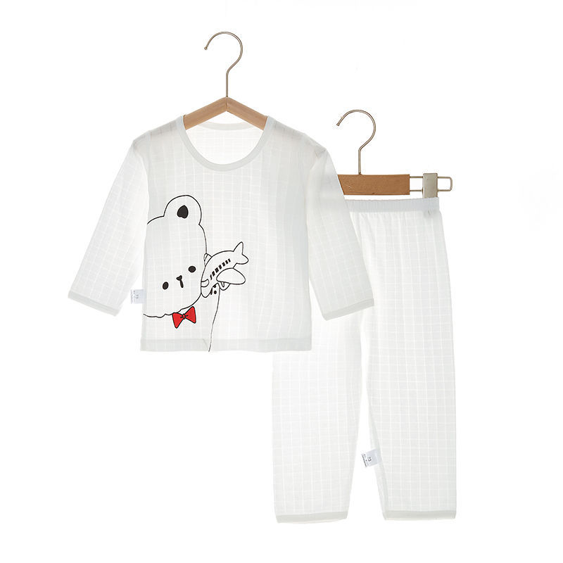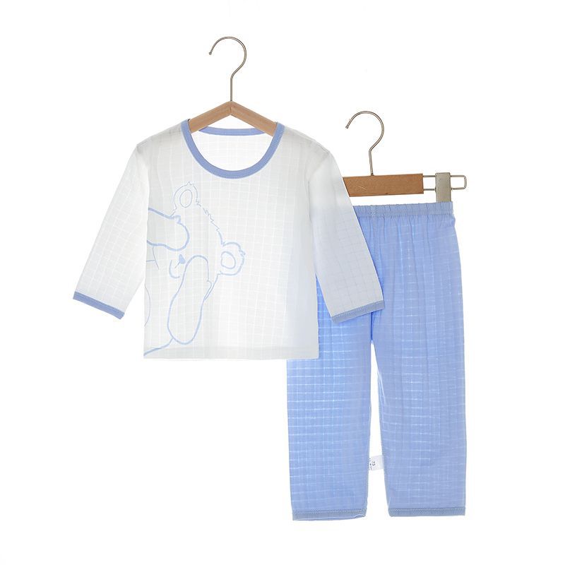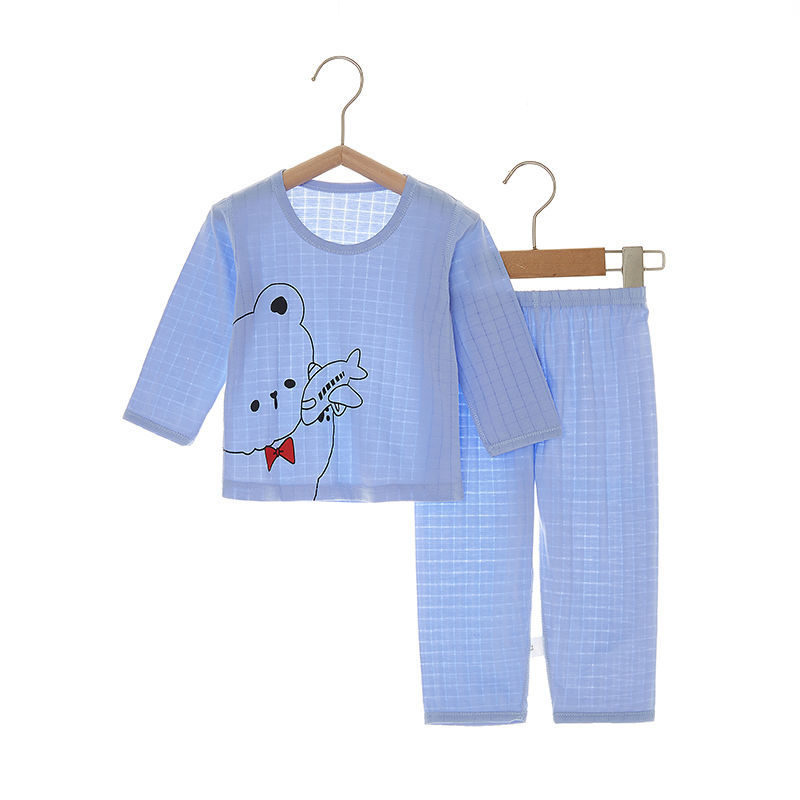 아기 잠자는 옷 사계절 여성과 아기 남자의 순면 자카드 긴 소매 세트 가을 옷 긴 바지 어린이 속옷 여름 얇은