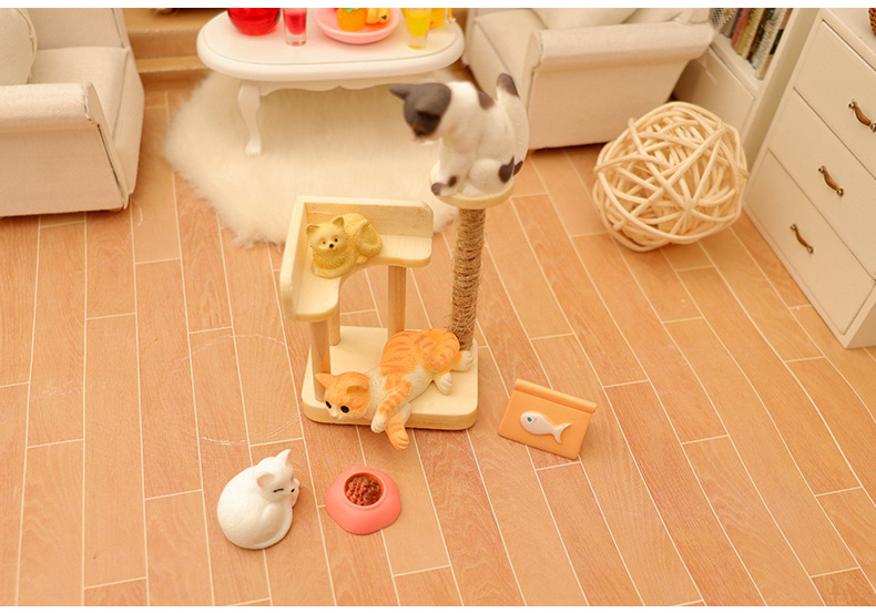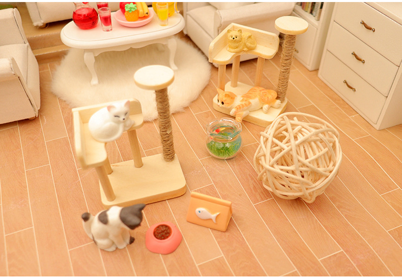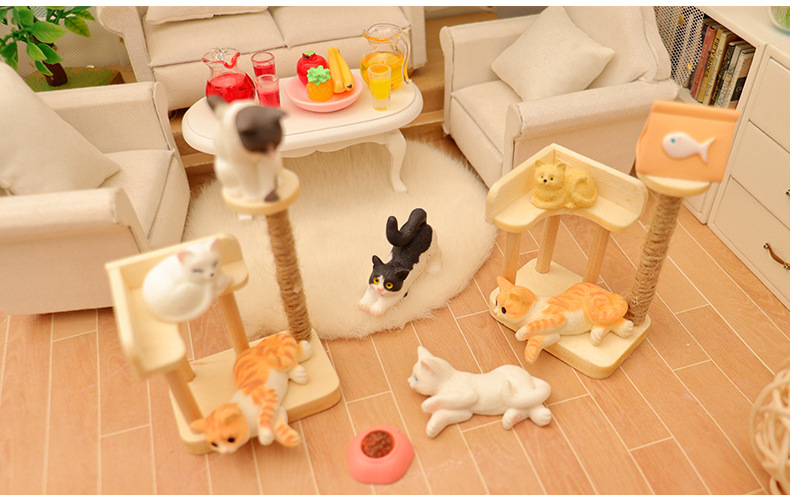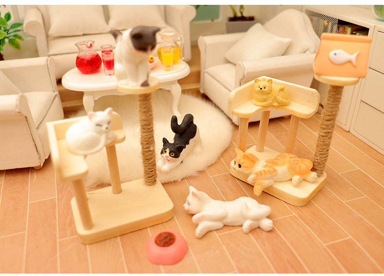 인형 집 인형 집 간단한 고양이 등반 랙 미니 고양이 애완 동물 고양이 둥지 diy 미니어처 장면 홈 모델