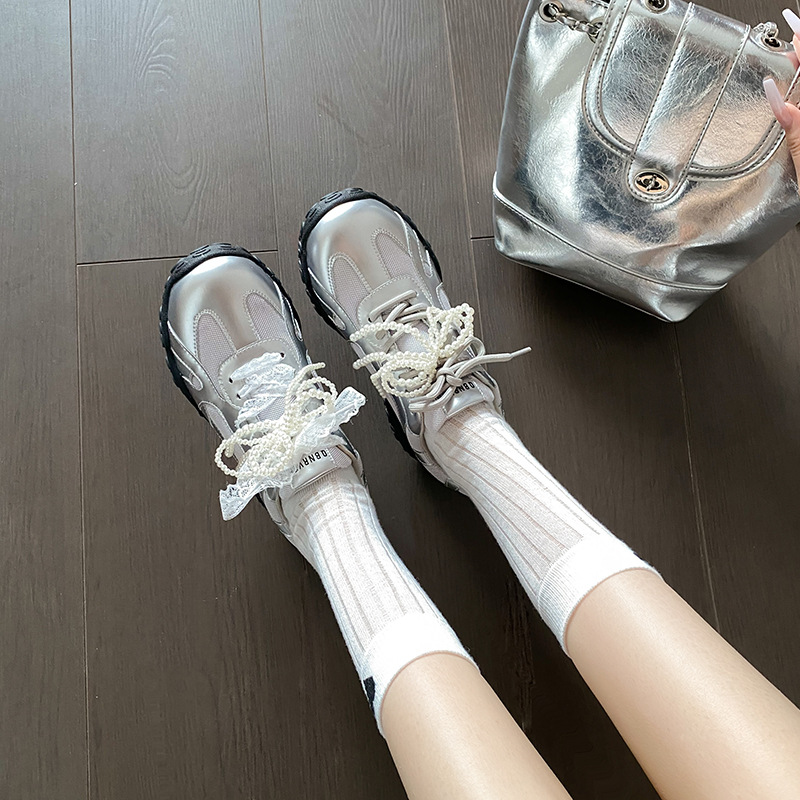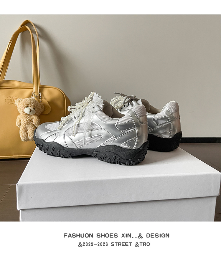 2025 여름 신상 키높이 운동화 여성 발레 스타일 아가니 신발 천연 가죽 캐주얼 신발 다용도 대형 사이즈 41-43