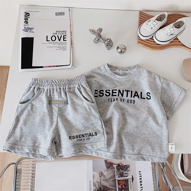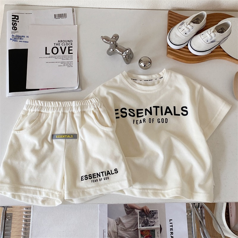 여름 착용 소년 스포츠 세트 느슨한 한국 풀오버 유행 남자와 어린이 아기 반팔 티셔츠 반바지 세트