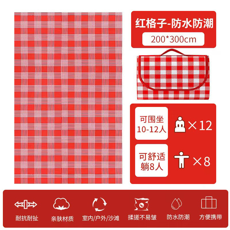• 피크닉 매트 [내마모성 양면 방수] 붉은 격자 무늬 [2* 3m] 10-12명이 앉을 수 있습니다
