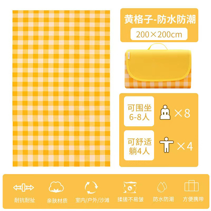 • 피크닉 매트 [내마모성 양면 방수] 노란색 격자 무늬 [200*200] 6-8명이 앉을 수 있습니다