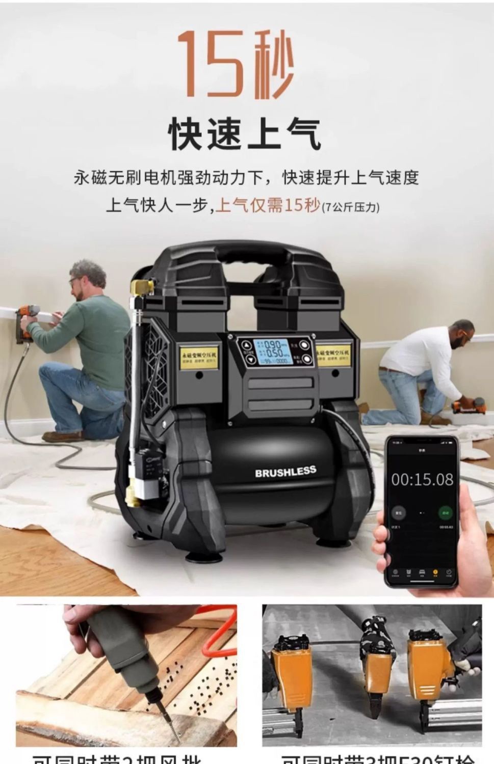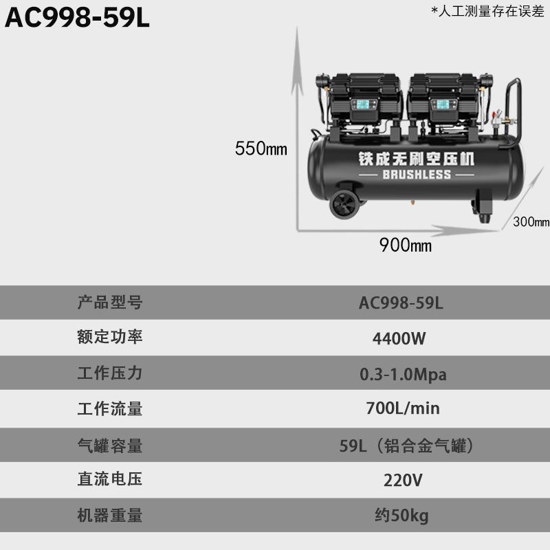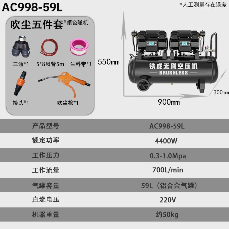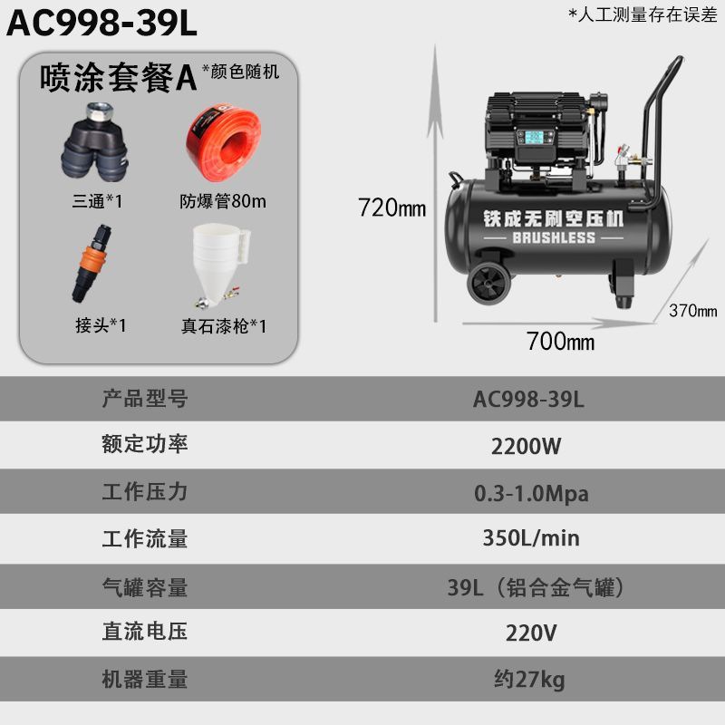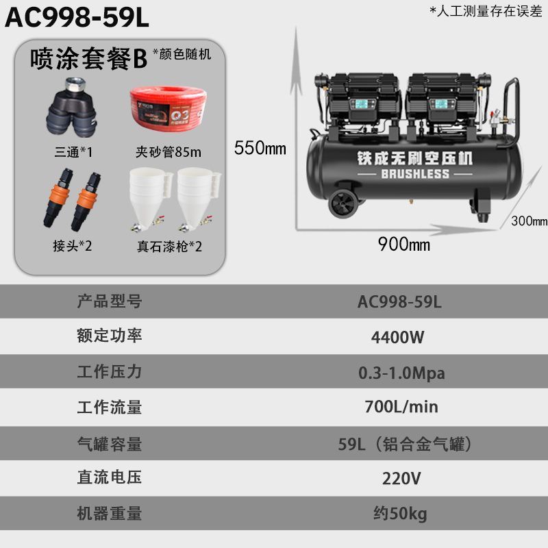 Tie Cheng 브러시리스 주파수 변환 공기 압축기 998 오일 프리 음소거 외부 벽 스프레이 39L 공장 지원 고압 도장 59L