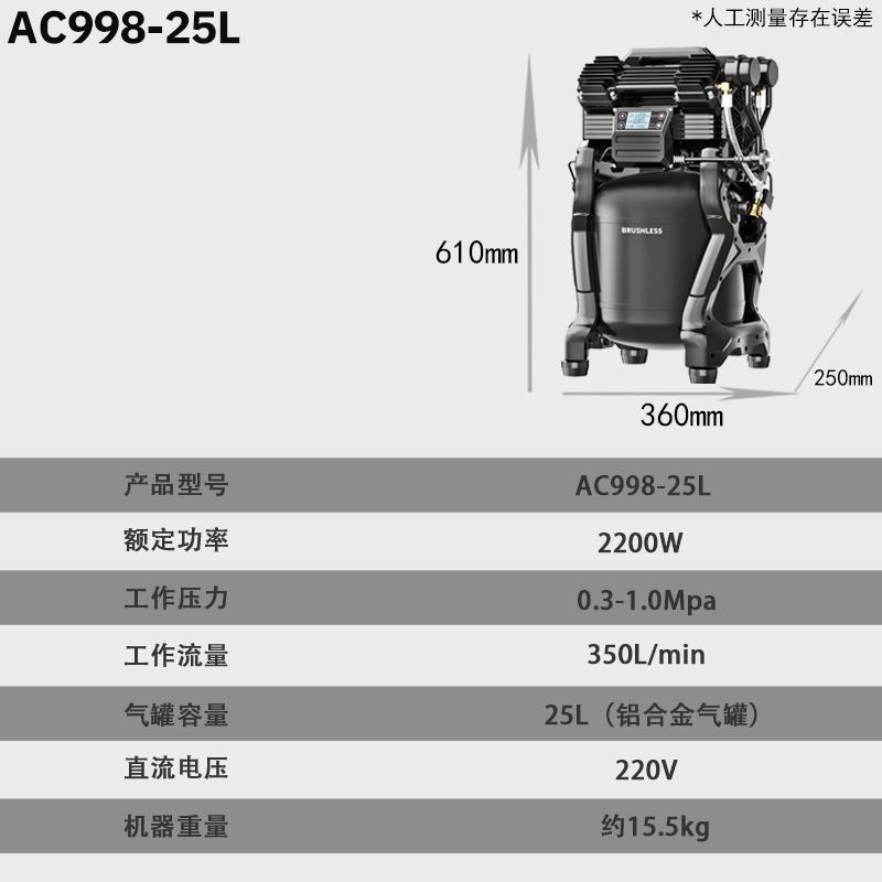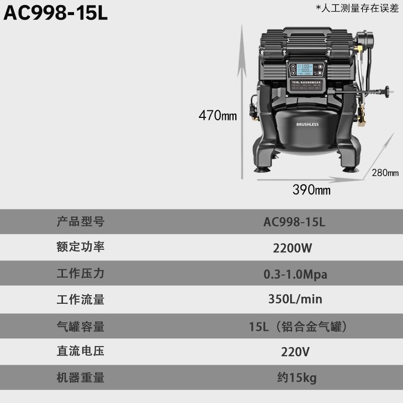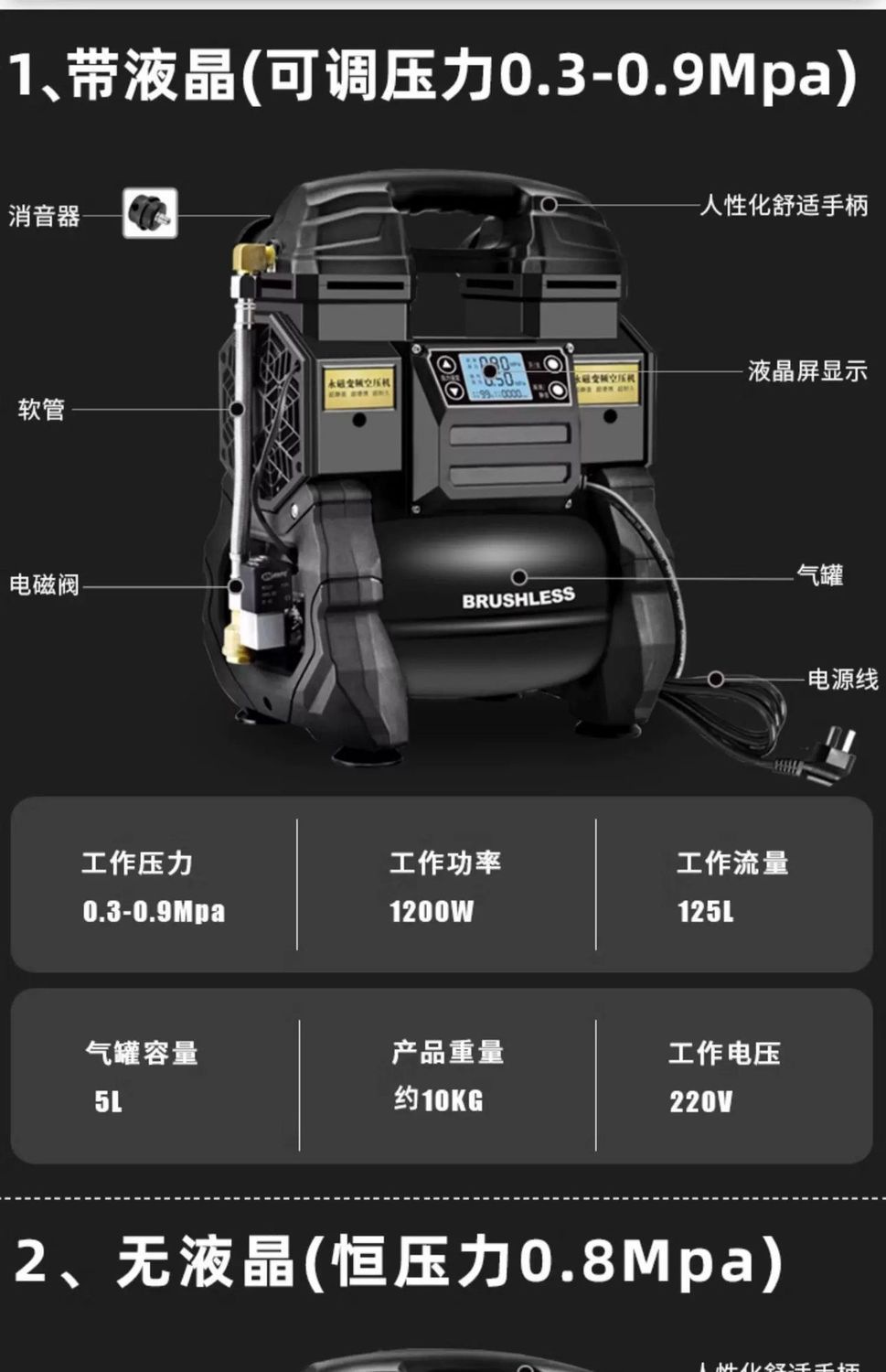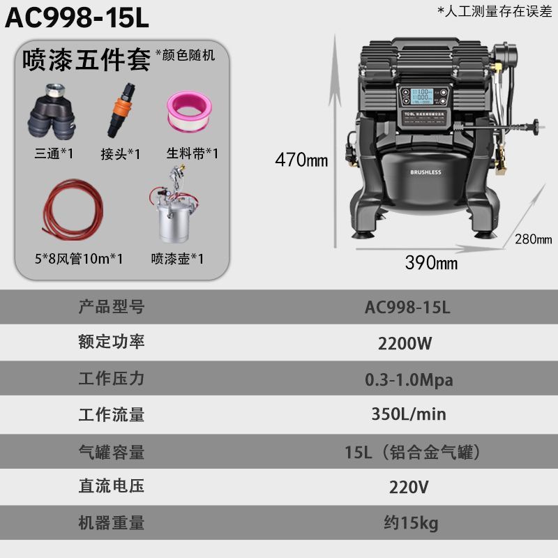 Tie Cheng 브러시리스 주파수 변환 공기 압축기 998 오일 프리 음소거 외부 벽 스프레이 39L 공장 지원 고압 도장 59L