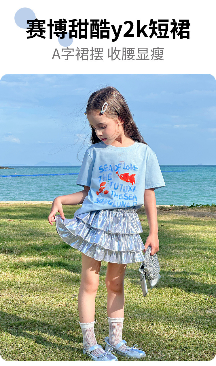 투투 리틀 엘리펀트 여아 케이크 스커트 2025 봄 신상 아동 레트로 짧은 치마 여름 부모-자녀 인스 스타일 플리츠 스커트