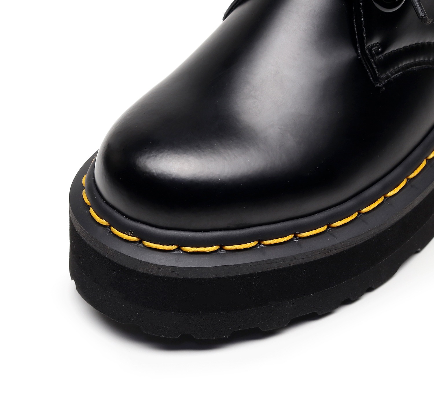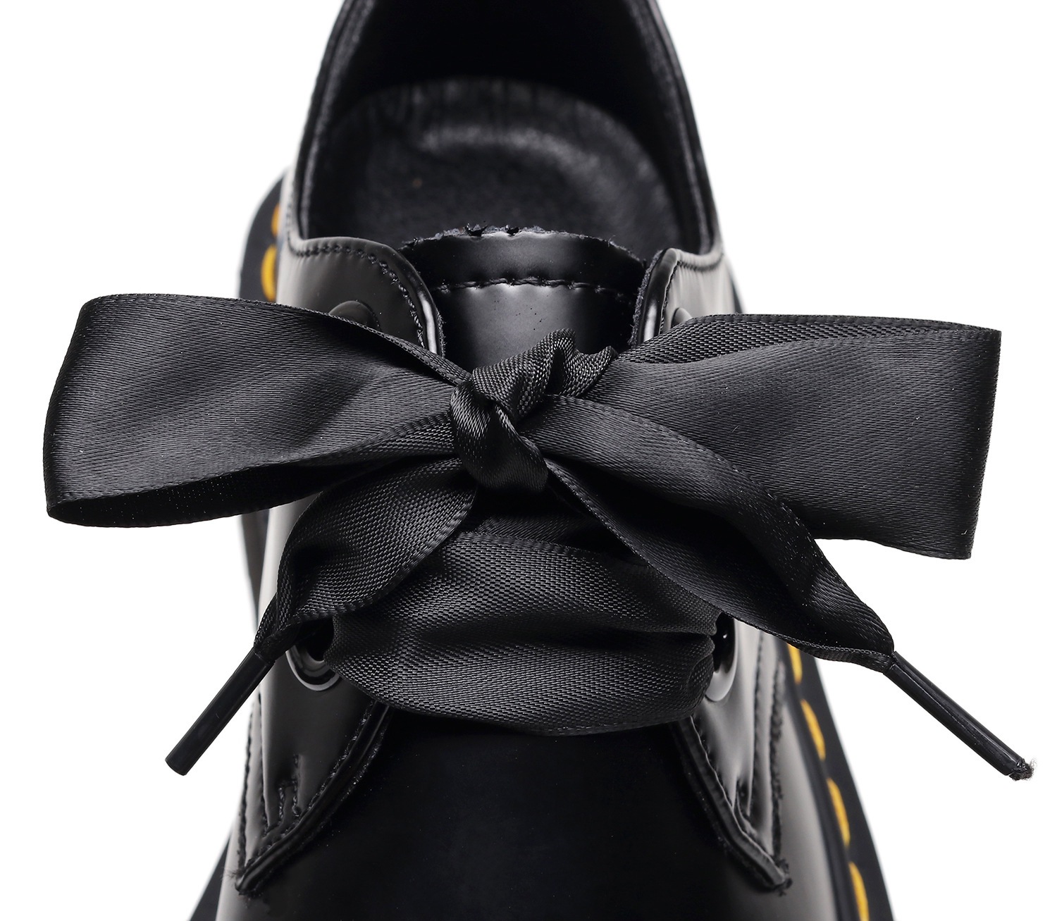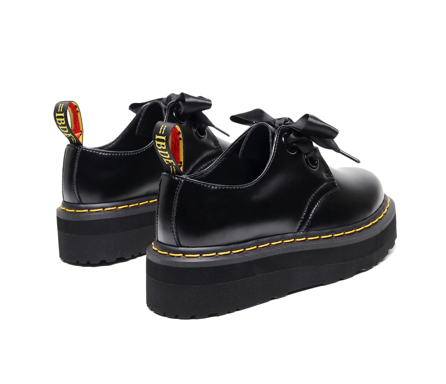 [발을 착용하지 마십시오] 라이트-2 홀 두꺼운 밑창 마틴 신발 블랙 로우 탑 가죽 신발 여성 리본 4 시즌 부츠