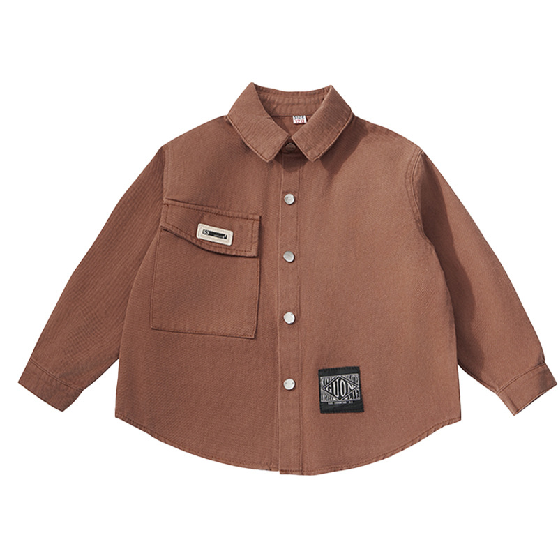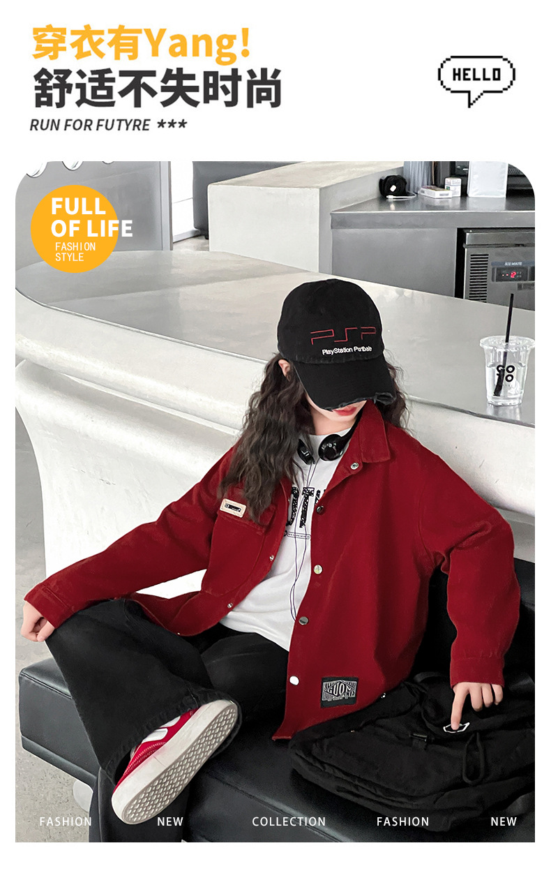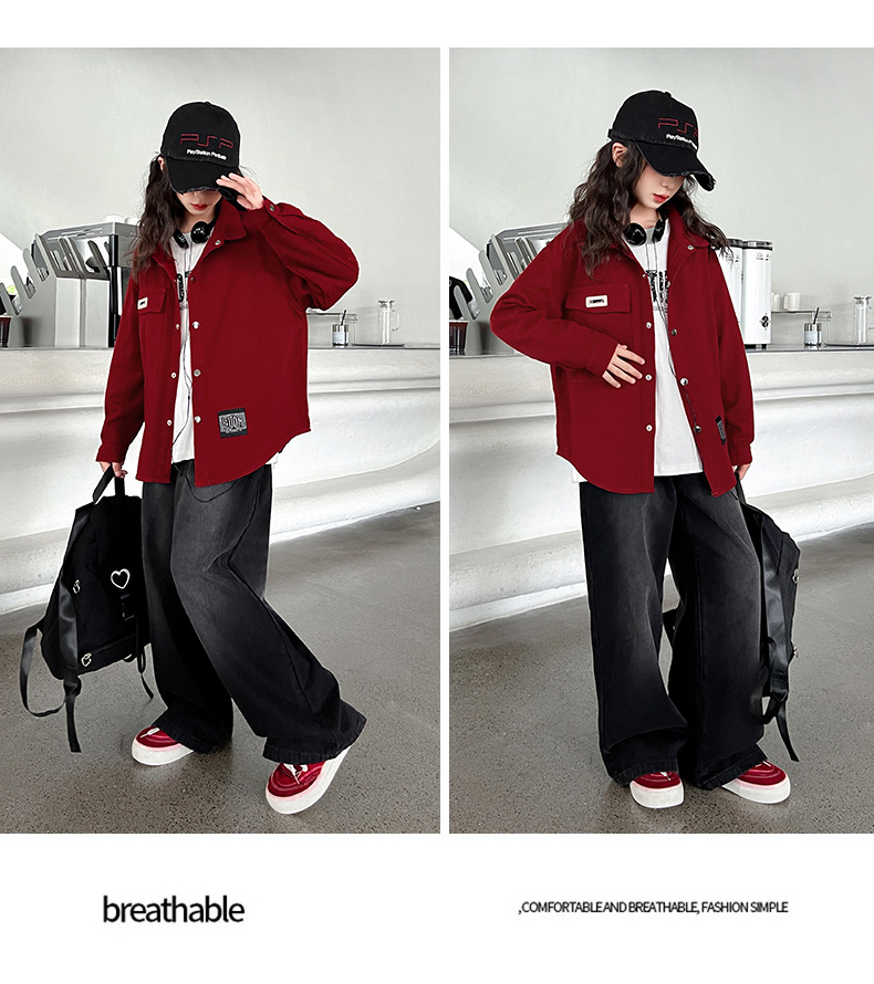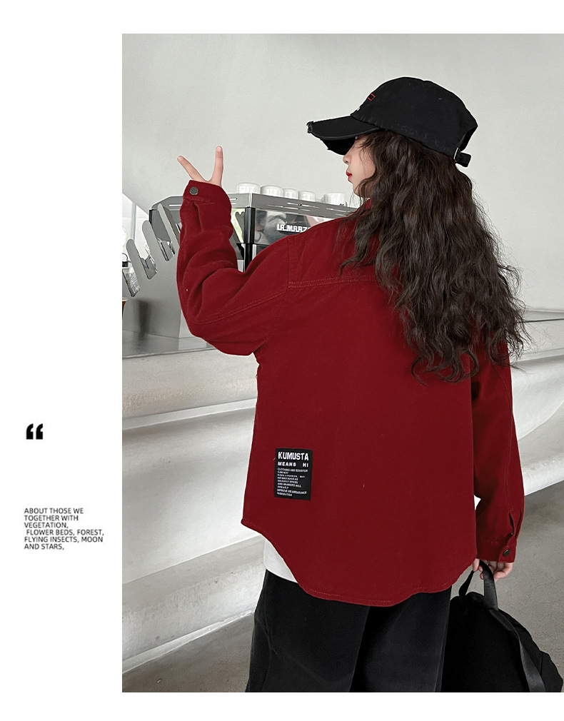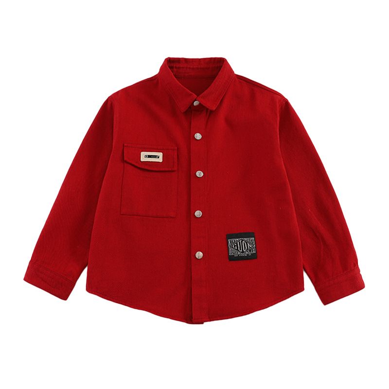 소년의 붉은 긴 소매 셔츠 봄과 가을 2025 새로운 스타일 어린이 씻은 면화 서양식 코트