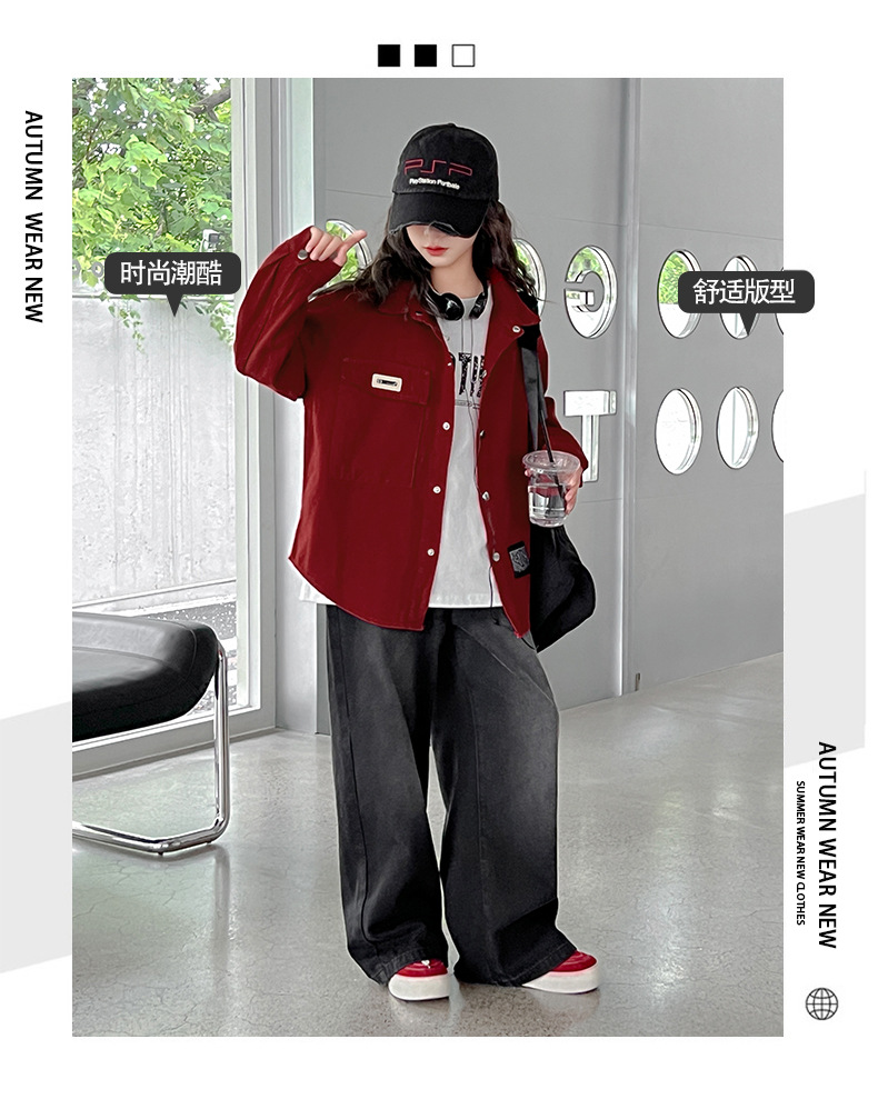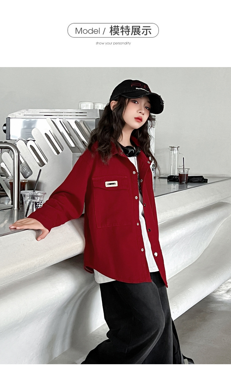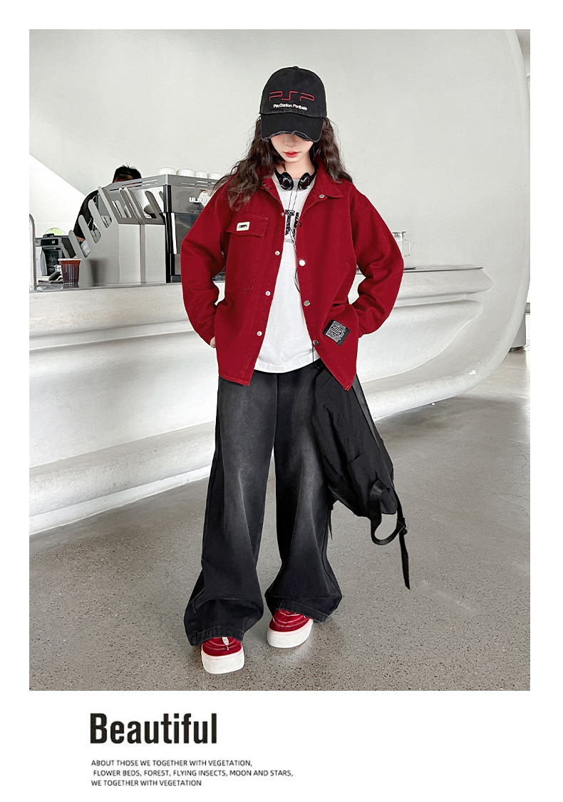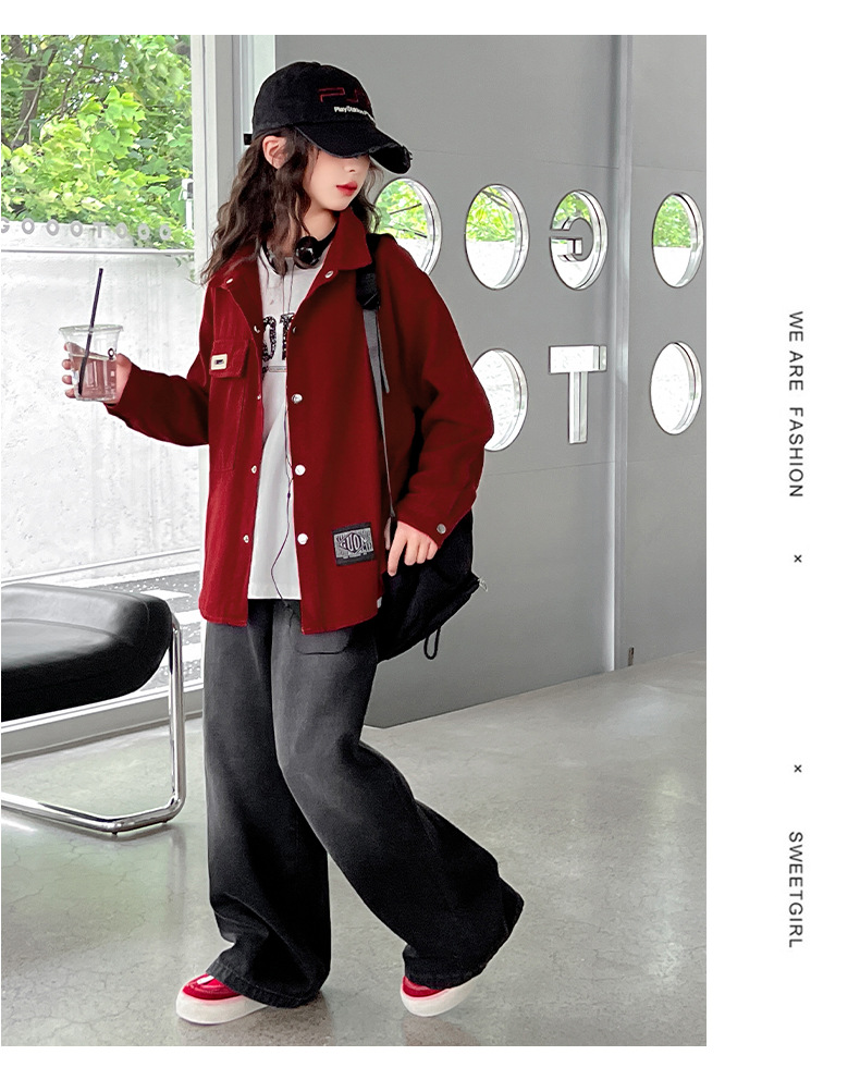 소년의 붉은 긴 소매 셔츠 봄과 가을 2025 새로운 스타일 어린이 씻은 면화 서양식 코트