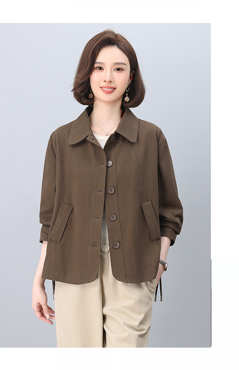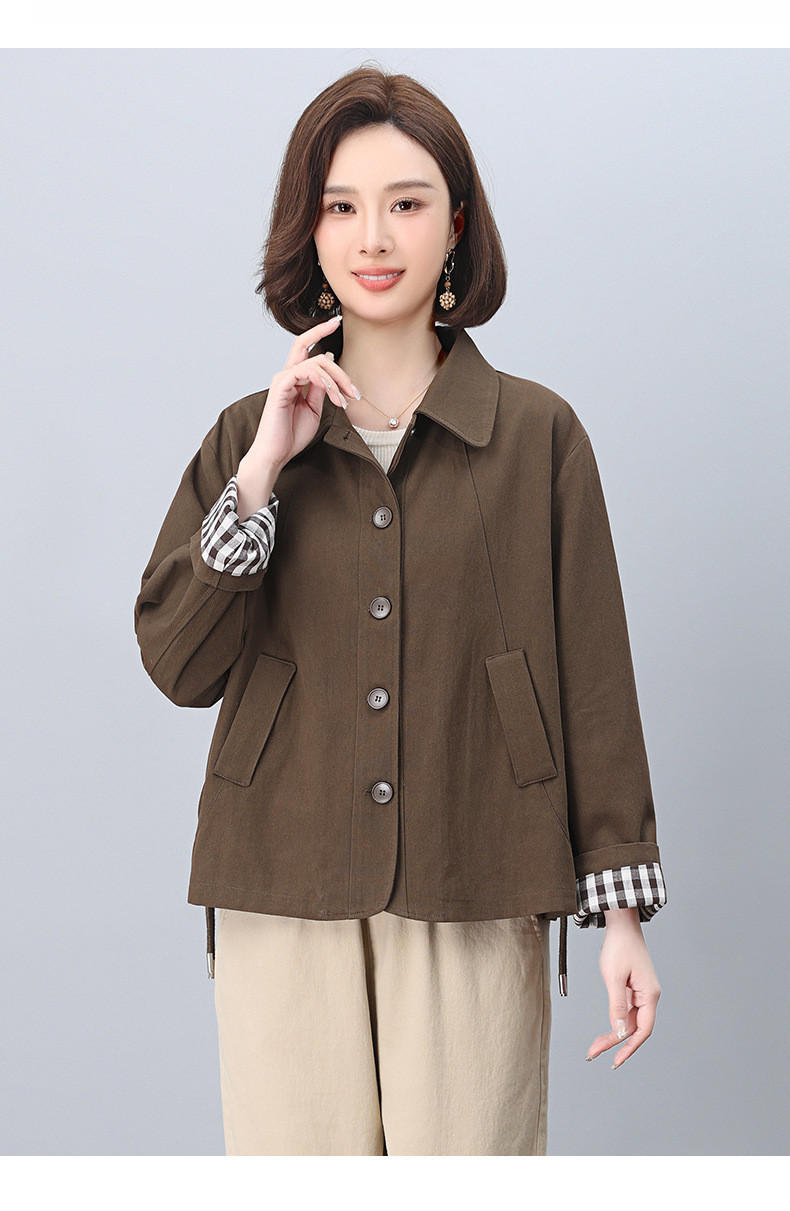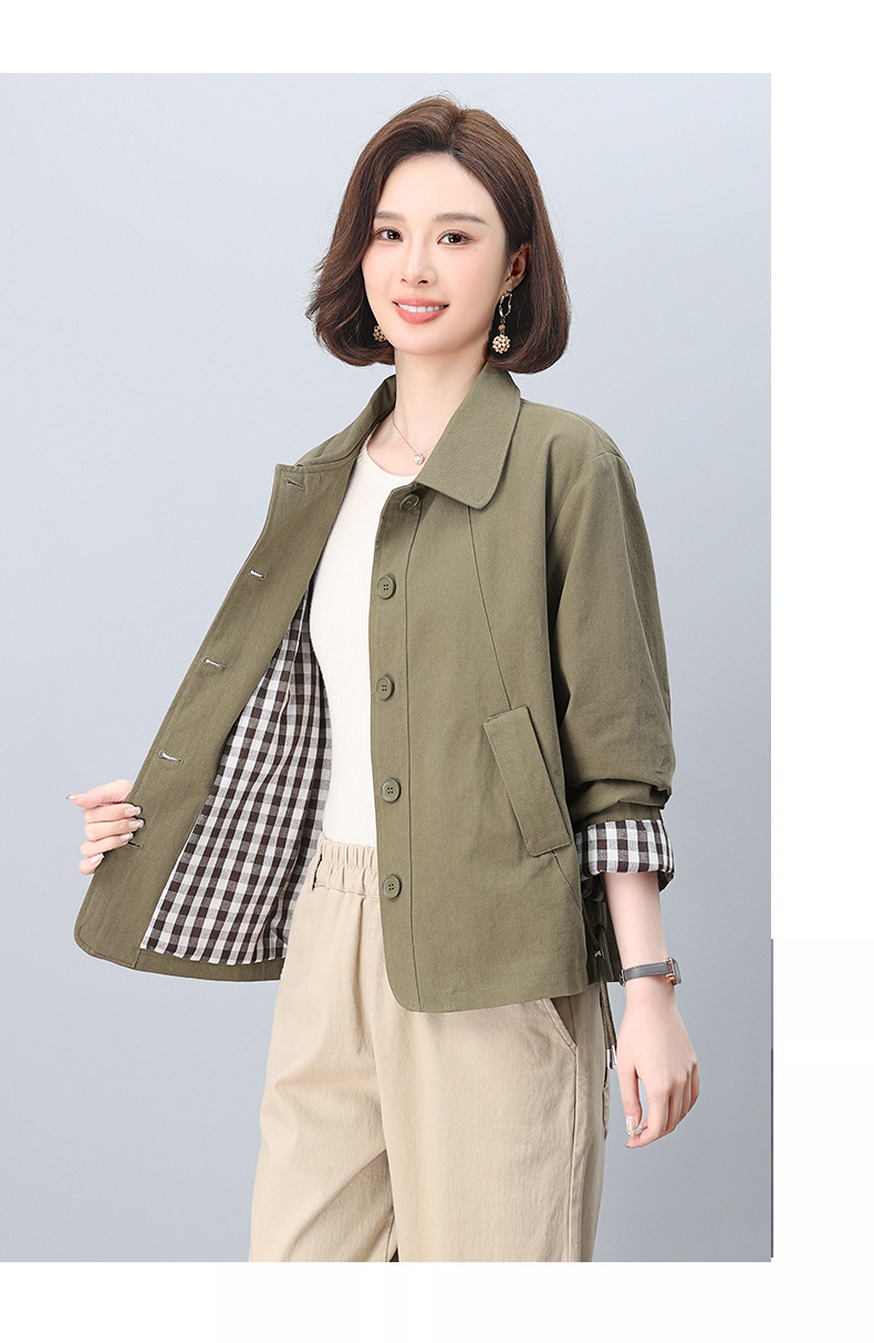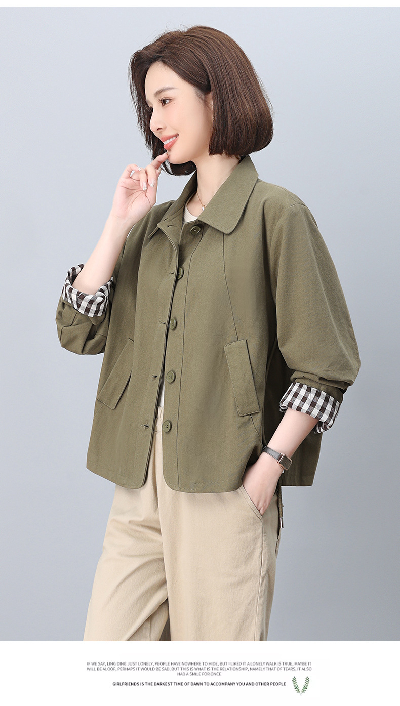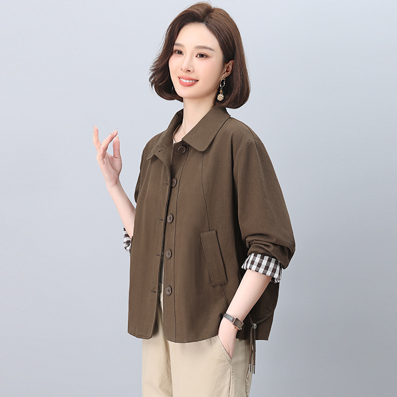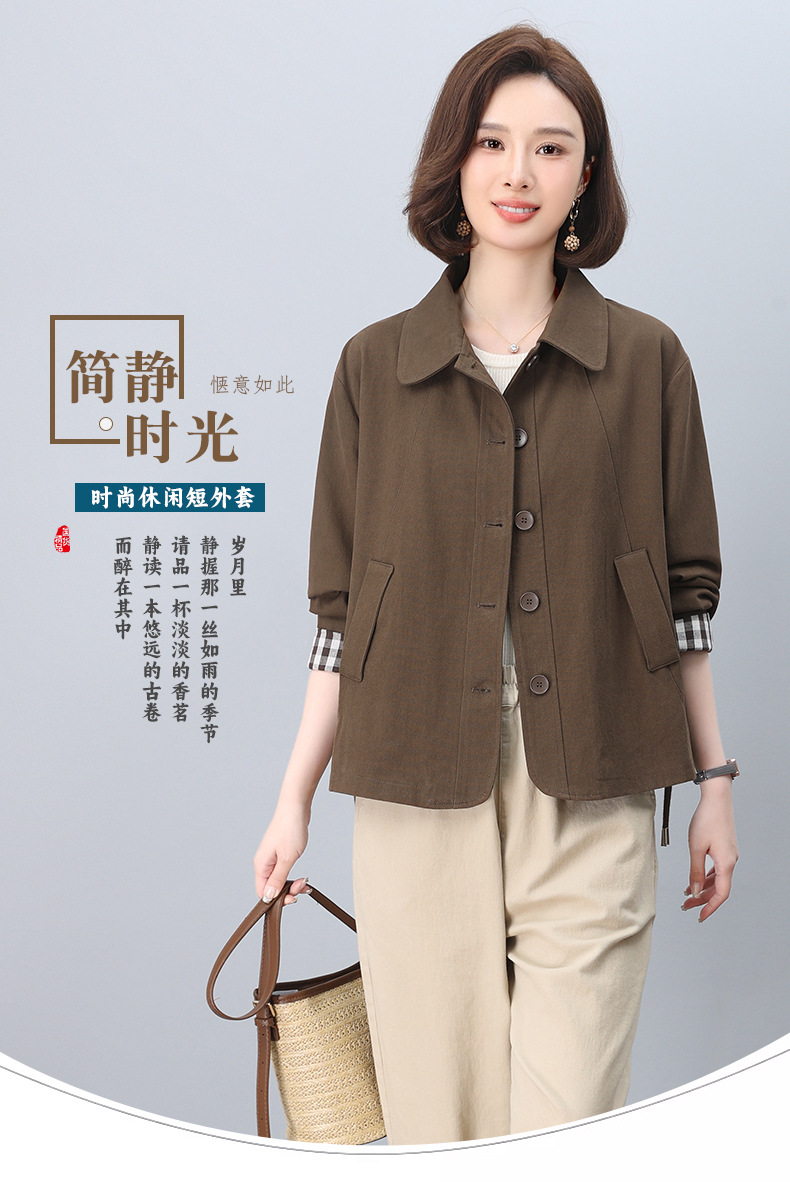 중년 어머니 순면 윈드 브레이커 코트 여성의 짧은 2025 년 봄과 가을 새로운 짧은 느슨한 플러스 사이즈 재킷 탑스토어 가기