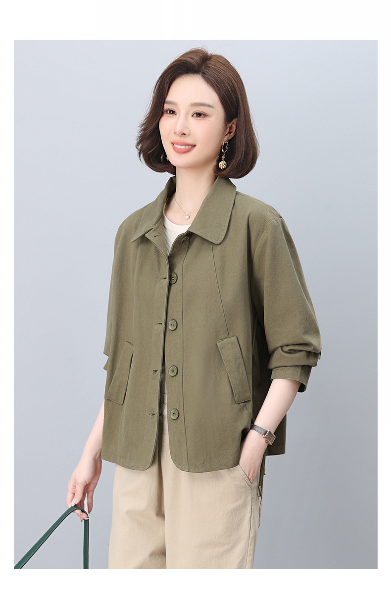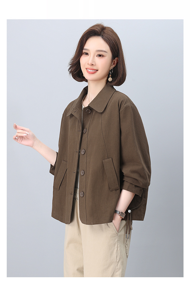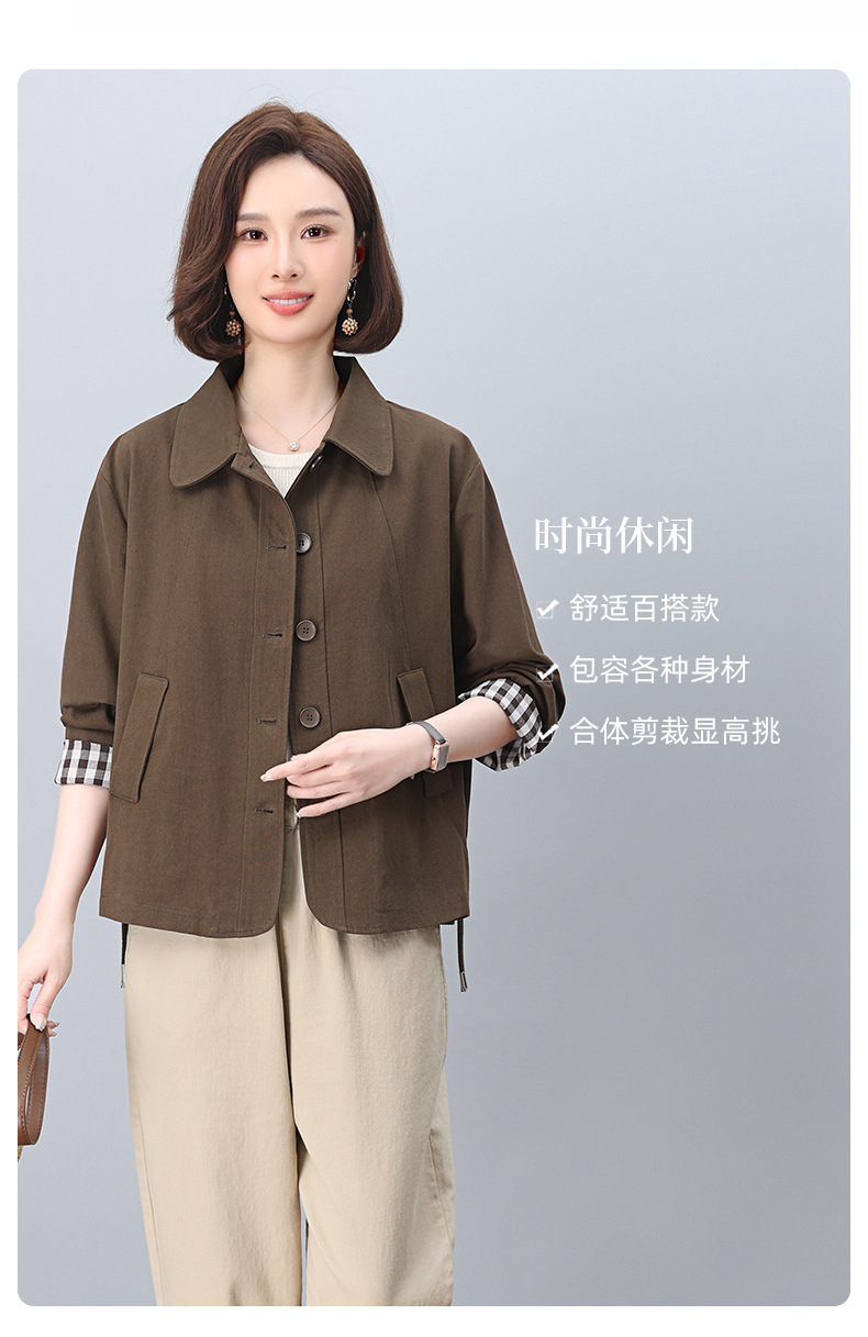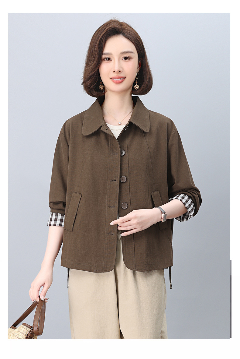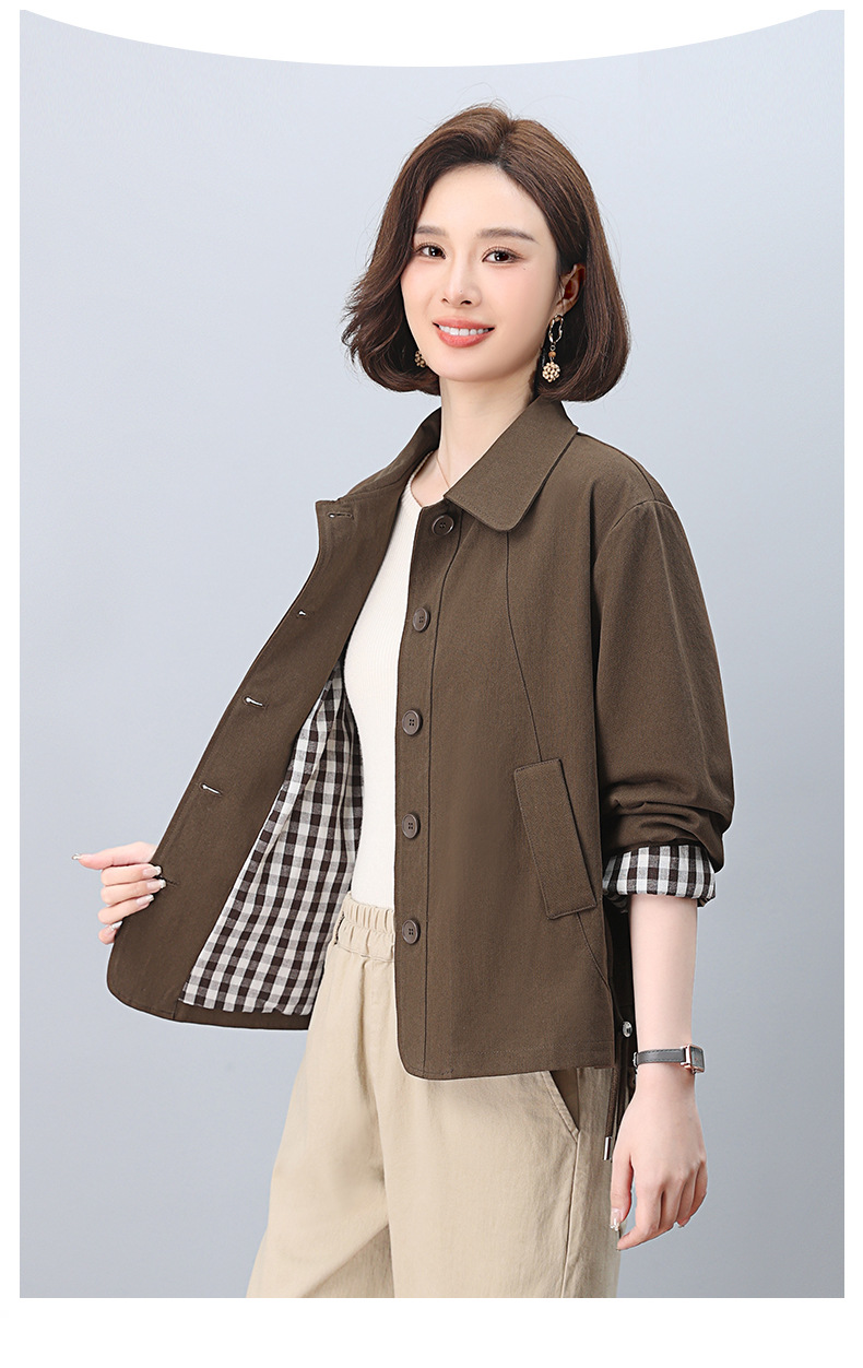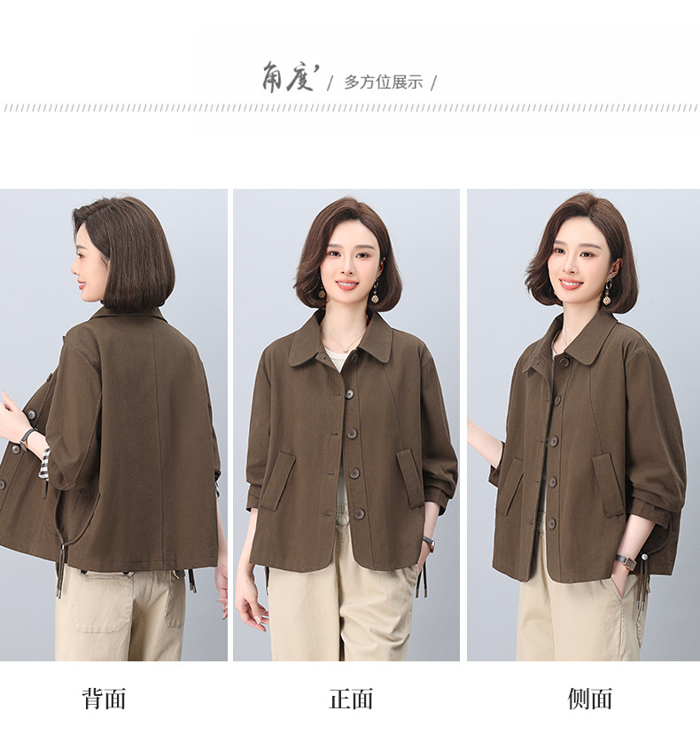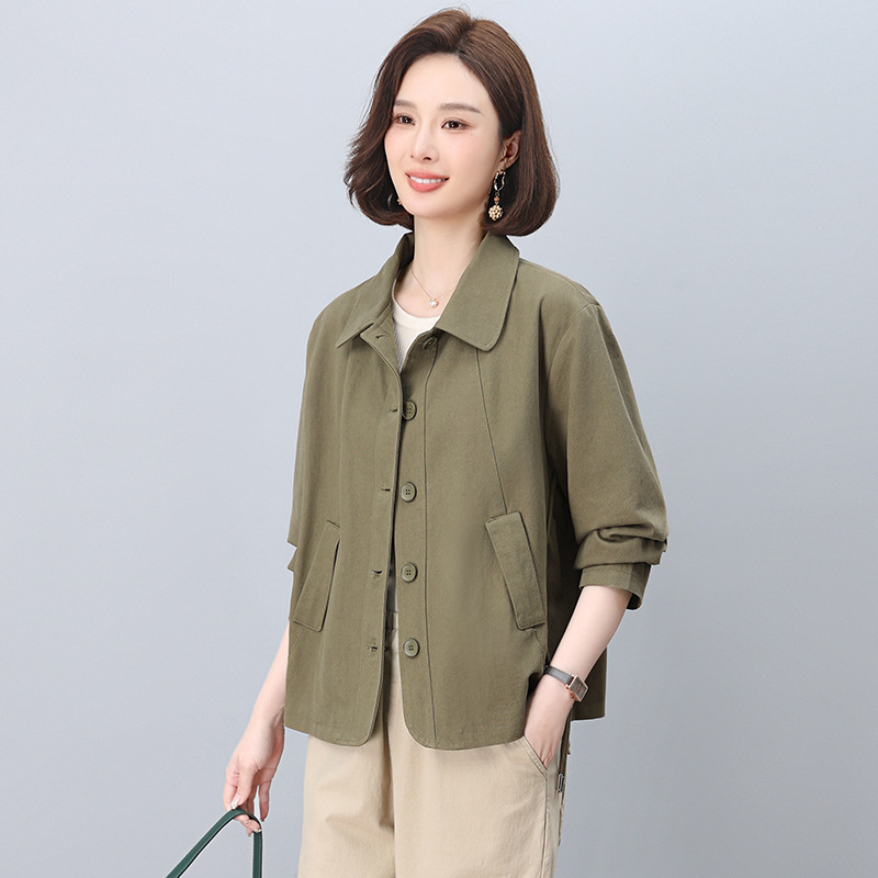 중년 어머니 순면 윈드 브레이커 코트 여성의 짧은 2025 년 봄과 가을 새로운 짧은 느슨한 플러스 사이즈 재킷 탑스토어 가기