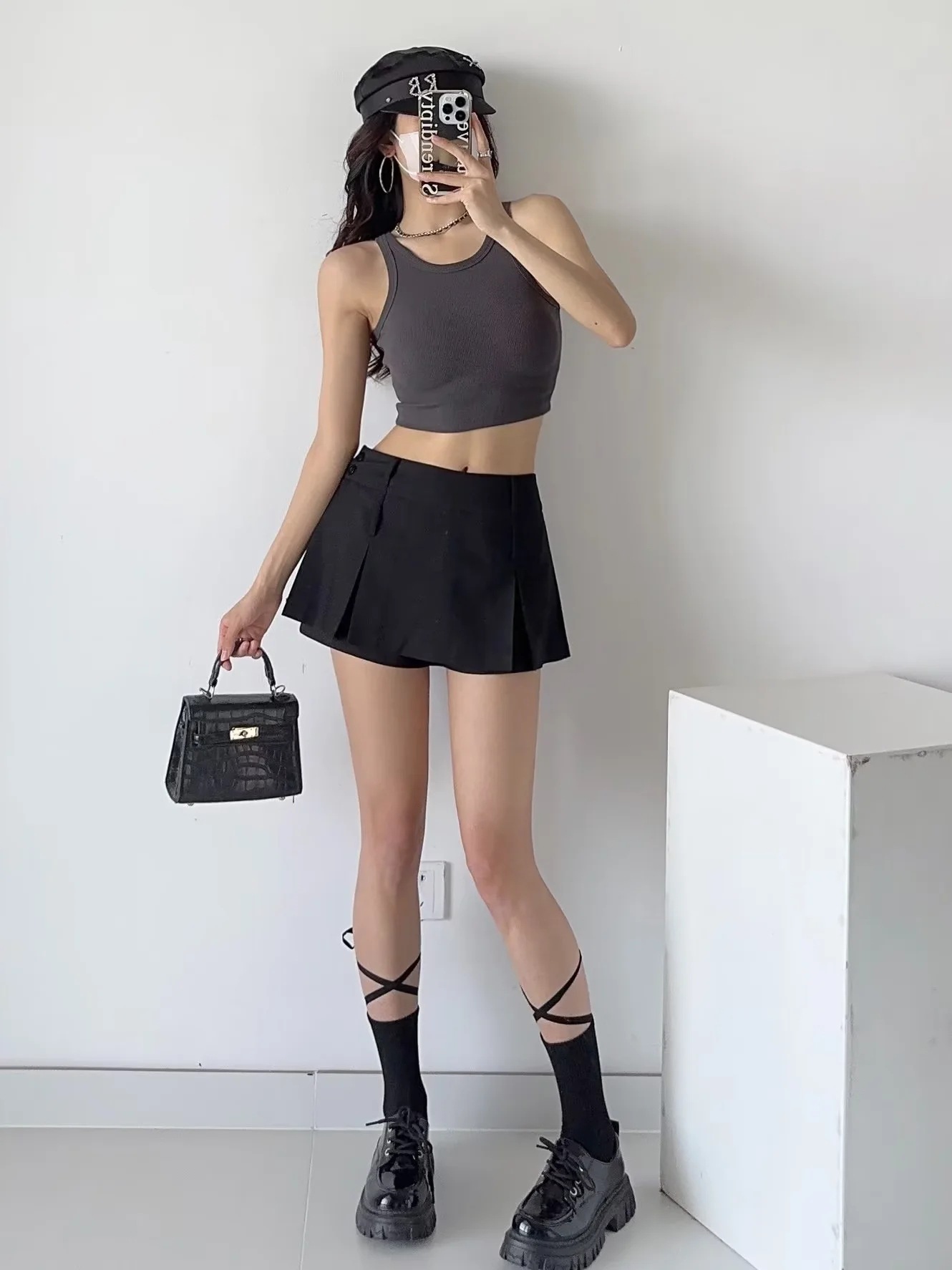 높은 허리 미국 스타일 복고풍 입고 주름 치마 아카데미 스타일 안티 워킹 패션 라이트 하단 바지 작은 신선한 스타일 짧은 스커트 뜨거운 소녀 문화스토어 가기