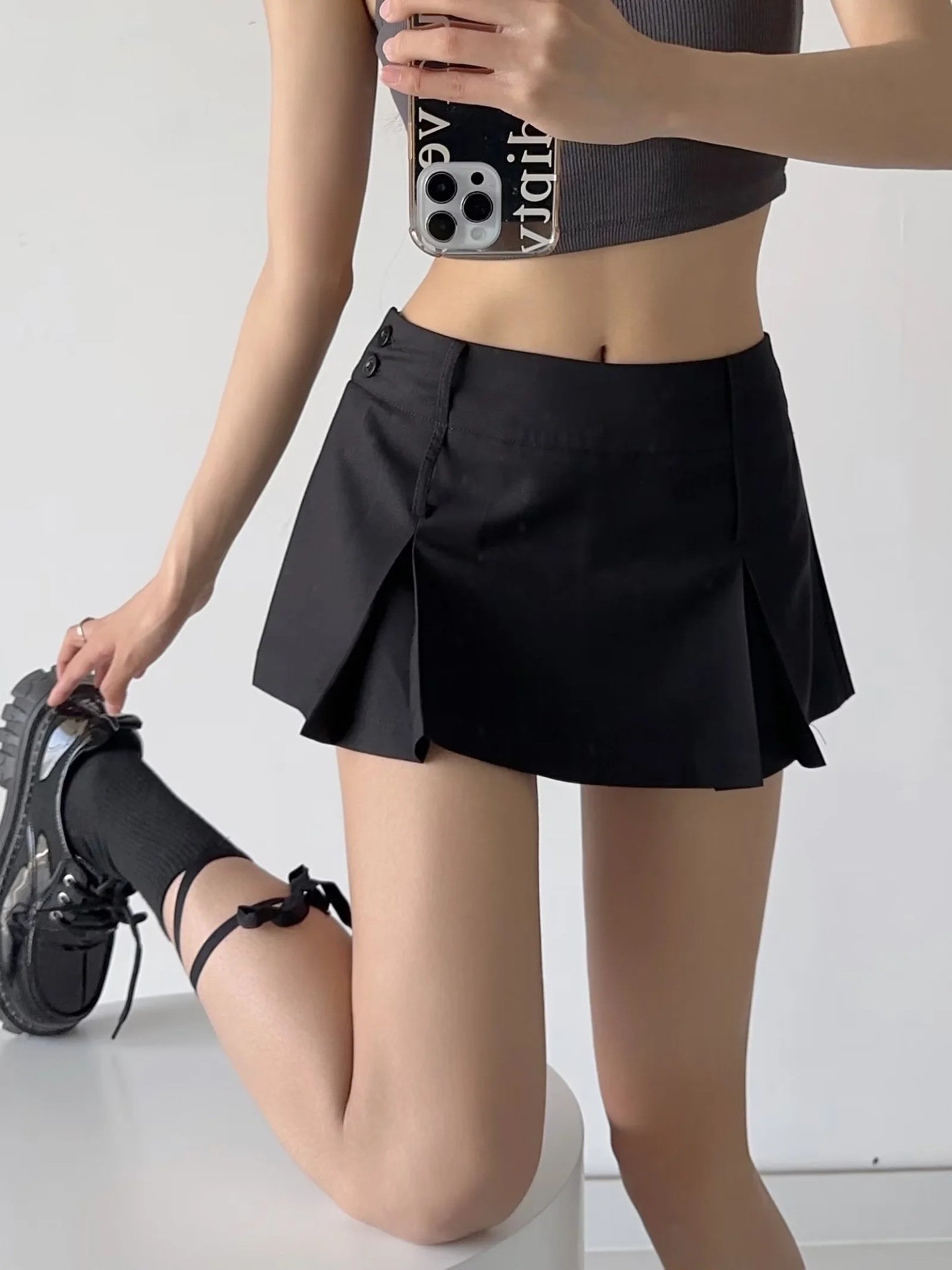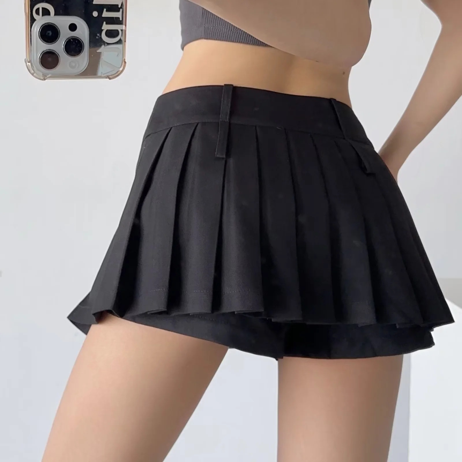 높은 허리 미국 스타일 복고풍 입고 주름 치마 아카데미 스타일 안티 워킹 패션 라이트 하단 바지 작은 신선한 스타일 짧은 스커트 뜨거운 소녀 문화
