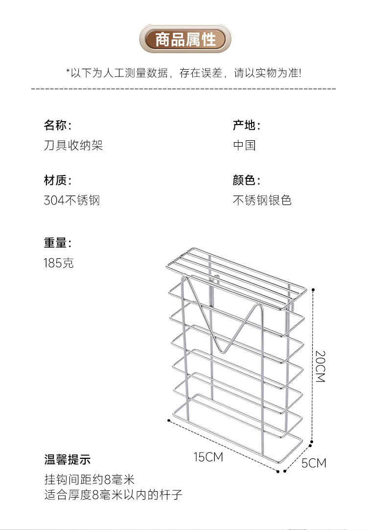 가정용 304 스테인레스 스틸 교수형 칼 랙 주방 보관 랙 나이프 보관 시트 페인트 랙 사이드 액세서리