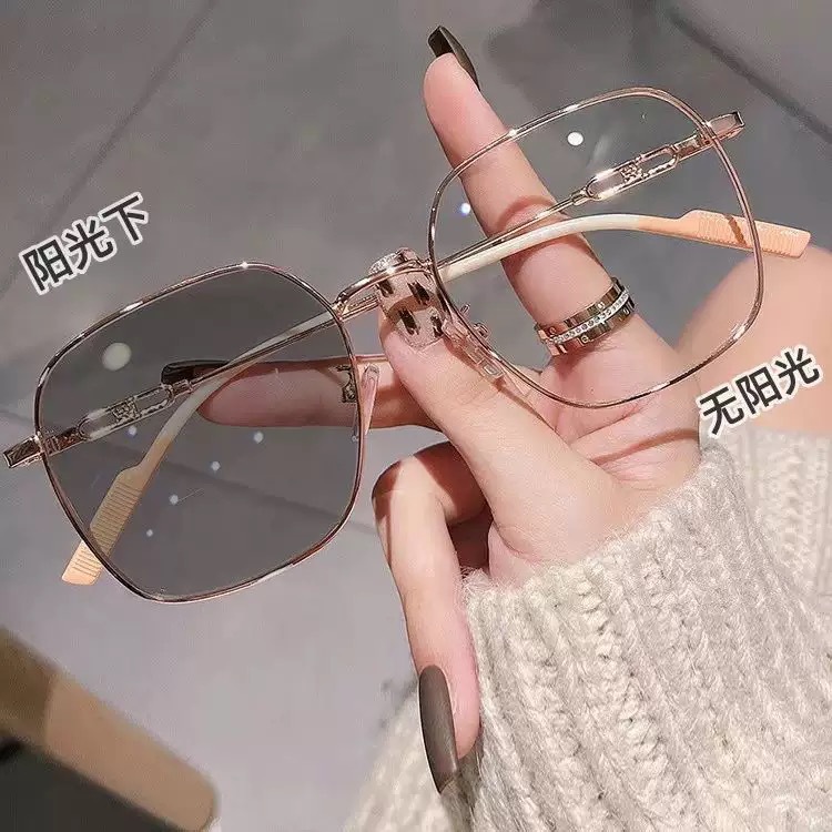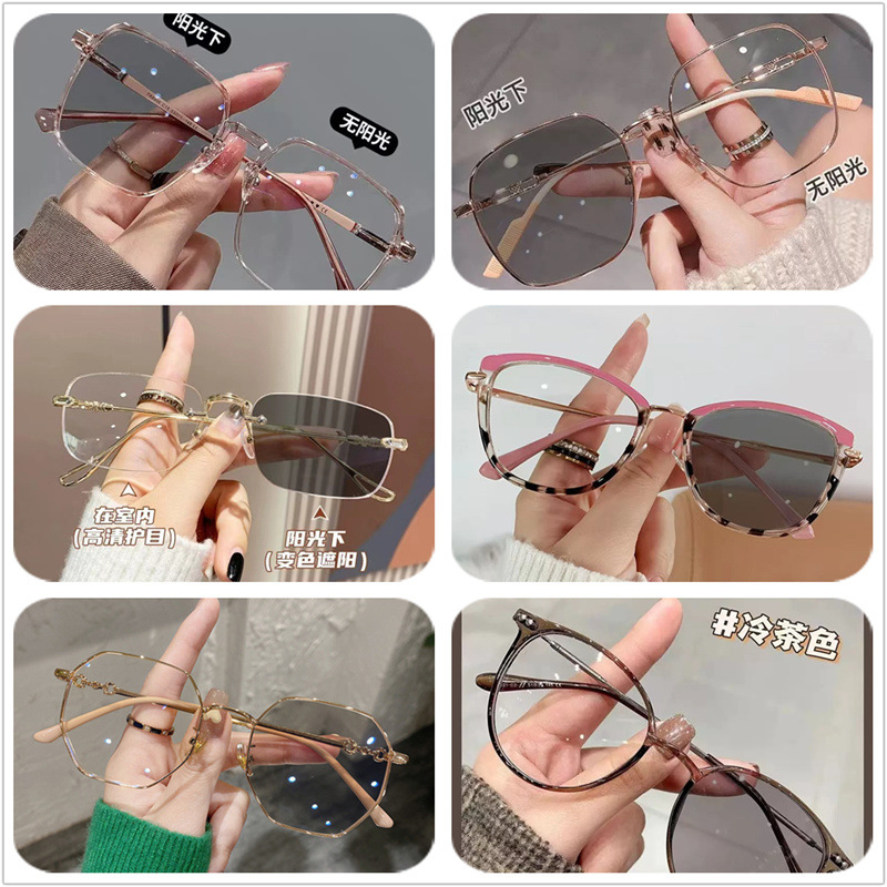 색상 변경 안경 여성 대형 프레임 높은 값 슬리밍 일반 빛에 민감한 색상 변경 안티 블루 안경 프레임 근시 안경스토어 가기