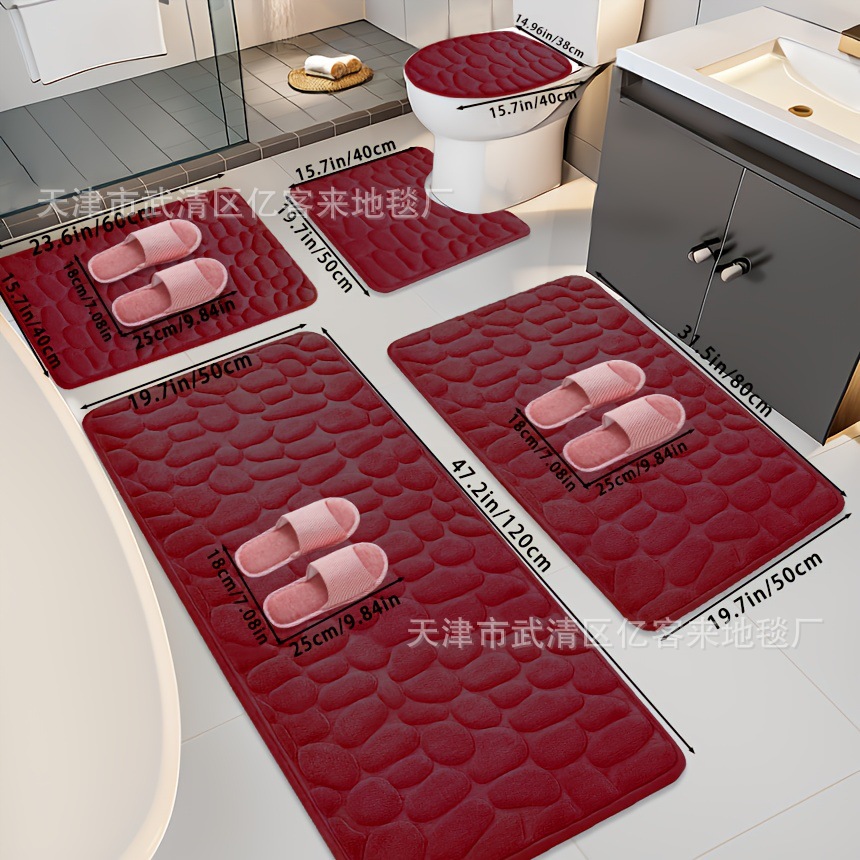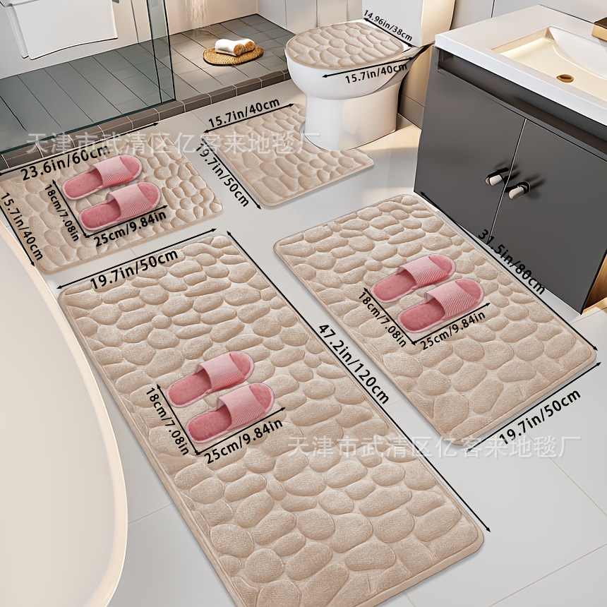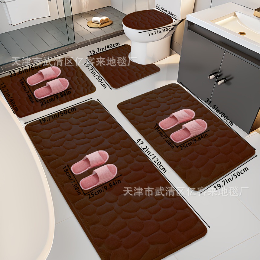 국경 작은 돌 산호 양털 바닥 매트 욕실 슈퍼 흡수성 화장실 U 자형 3 피스 화장실 미끄럼 방지 매트스토어 가기