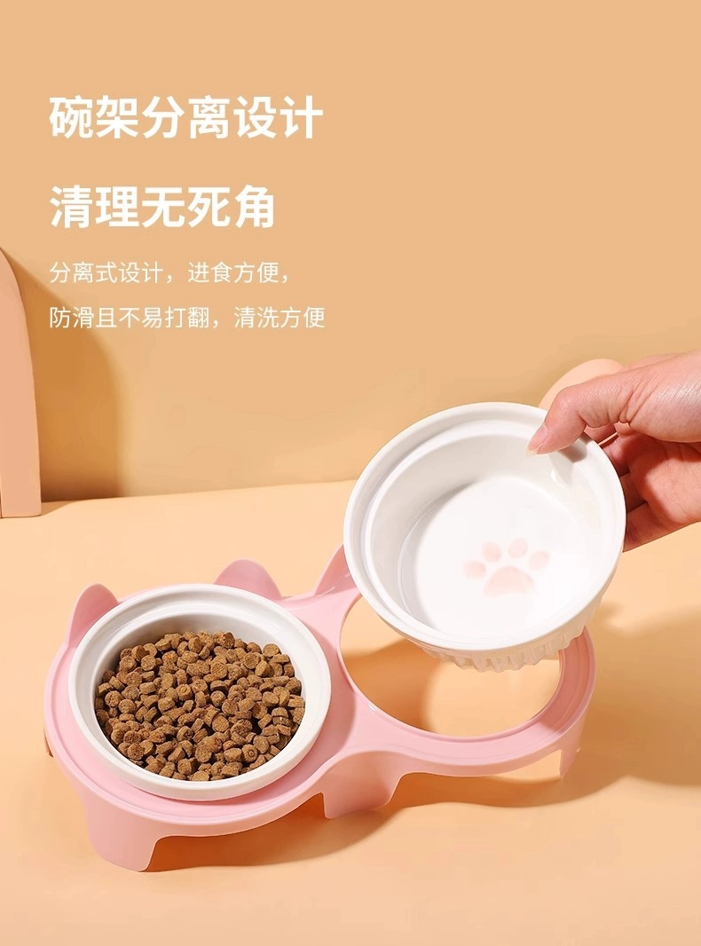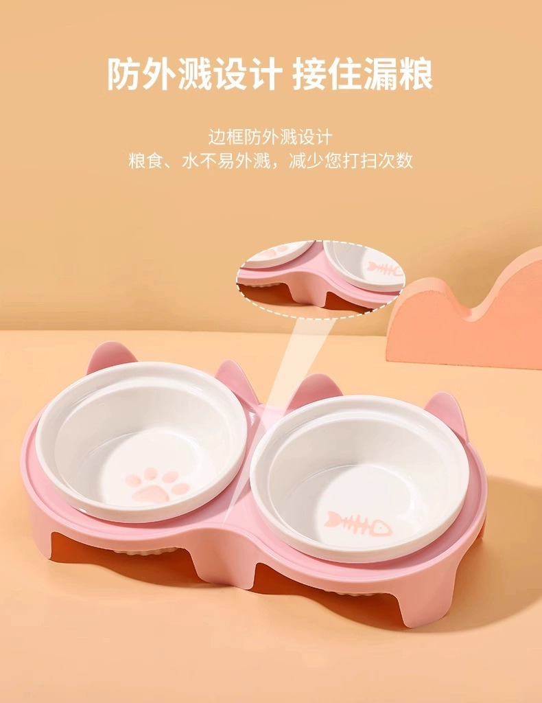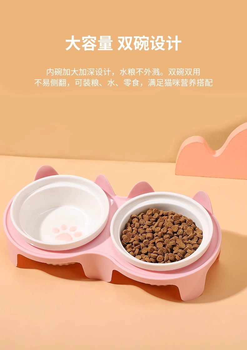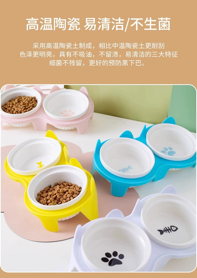 宠物陶瓷碗防打翻 双碗设计 猫狗通用 防霉防潮 高颜值食盆 厂家批发价