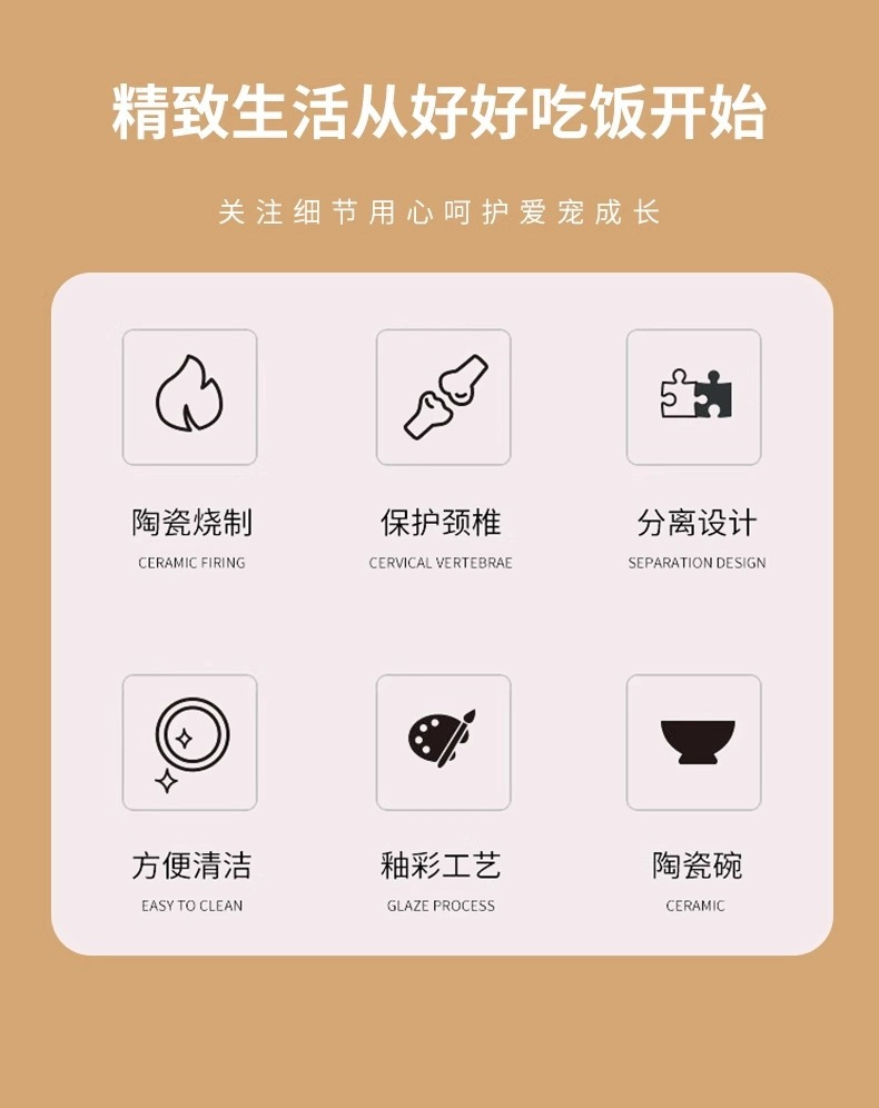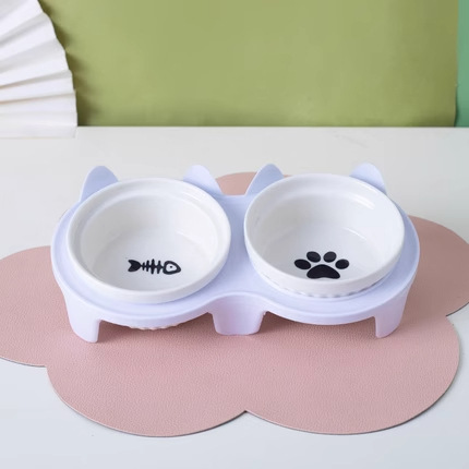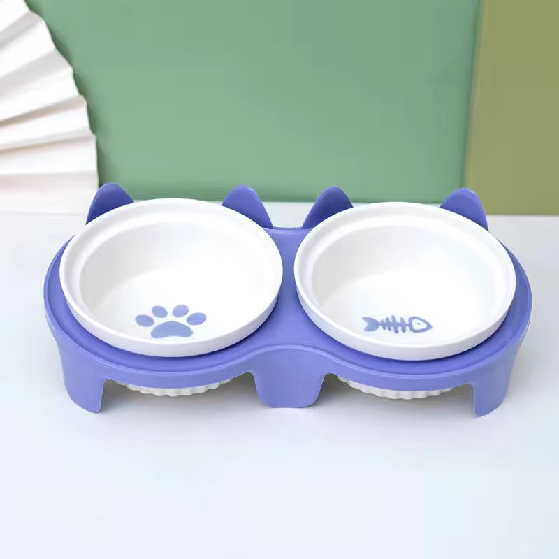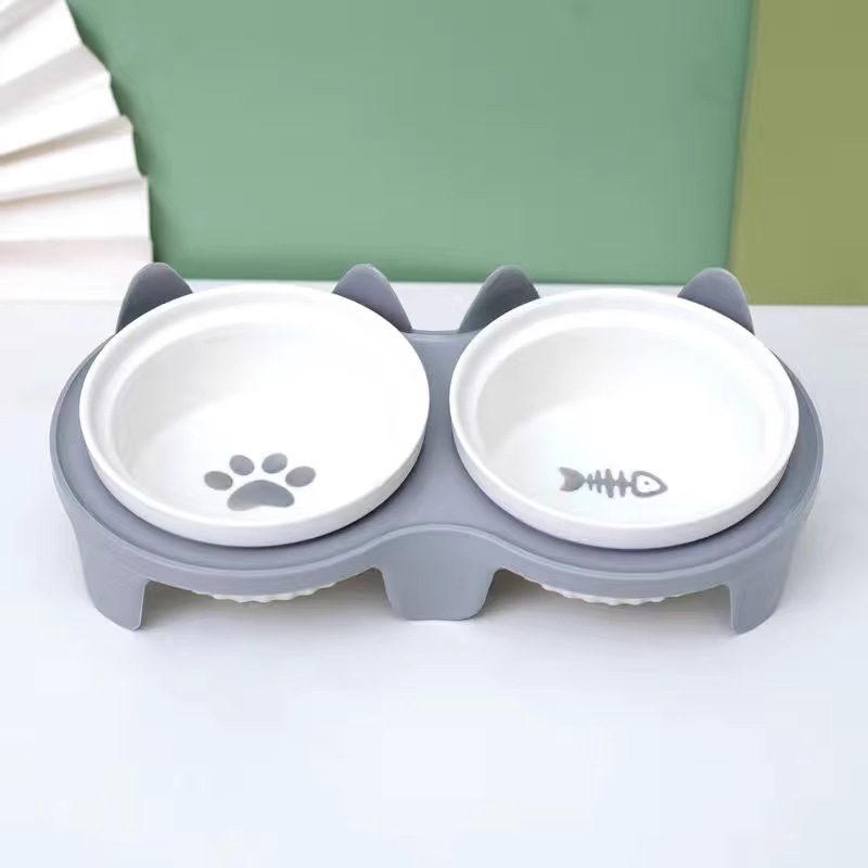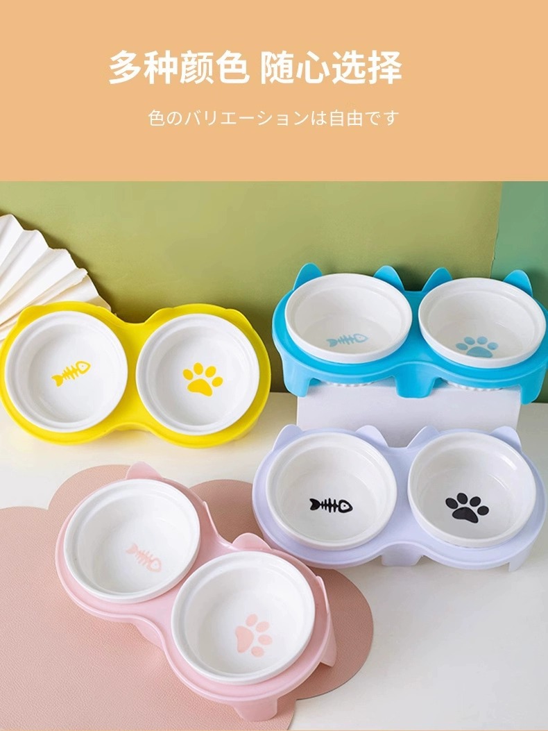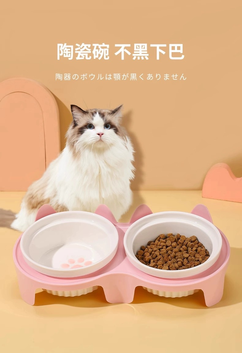 宠物陶瓷碗防打翻 双碗设计 猫狗通用 防霉防潮 高颜值食盆 厂家批发价