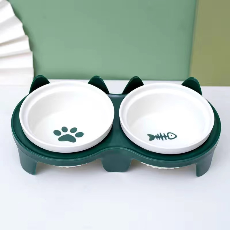 고양이 그릇 세라믹 고양이 음식 분지 고양이 그릇 개 그릇 음식 분지 애완 동물 비스듬한 입 보호 자궁 경부 척추 안티 노크 더블 그릇 식수스토어 가기