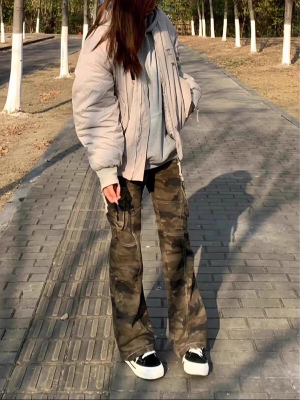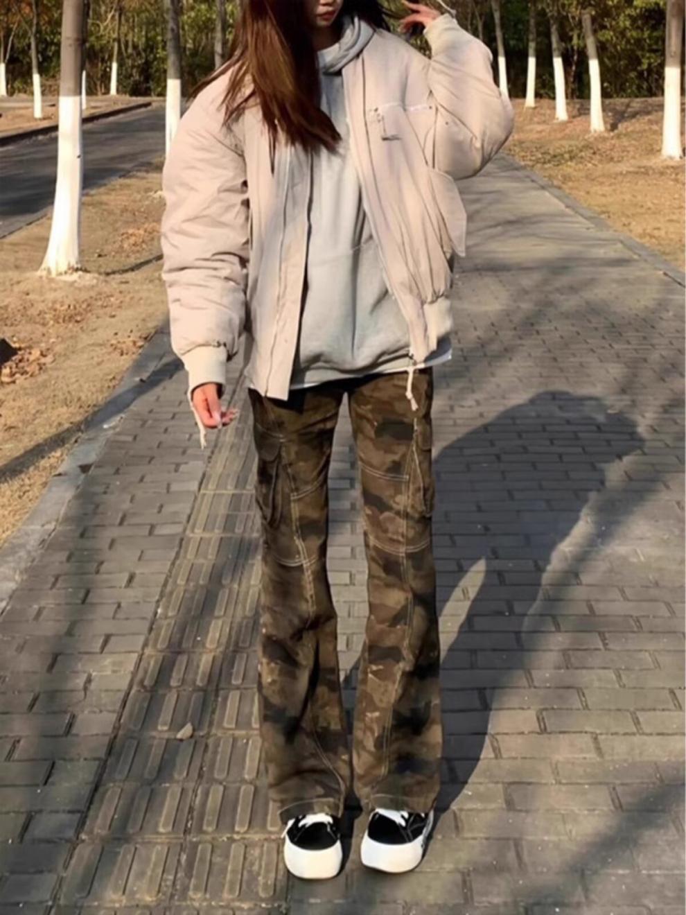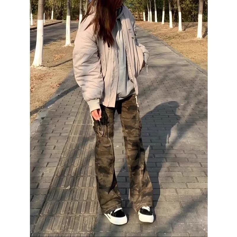 가을 빠른 건조 위장 바지 여성 미국식 스트레이트 느슨한 충전 캐주얼 바지 Instagram 인기 브랜드 간단한 커플 바지스토어 가기