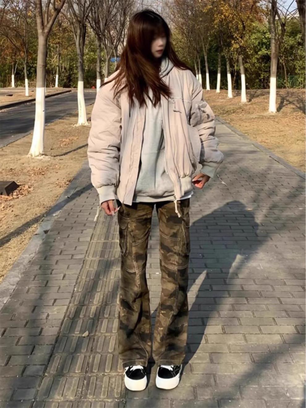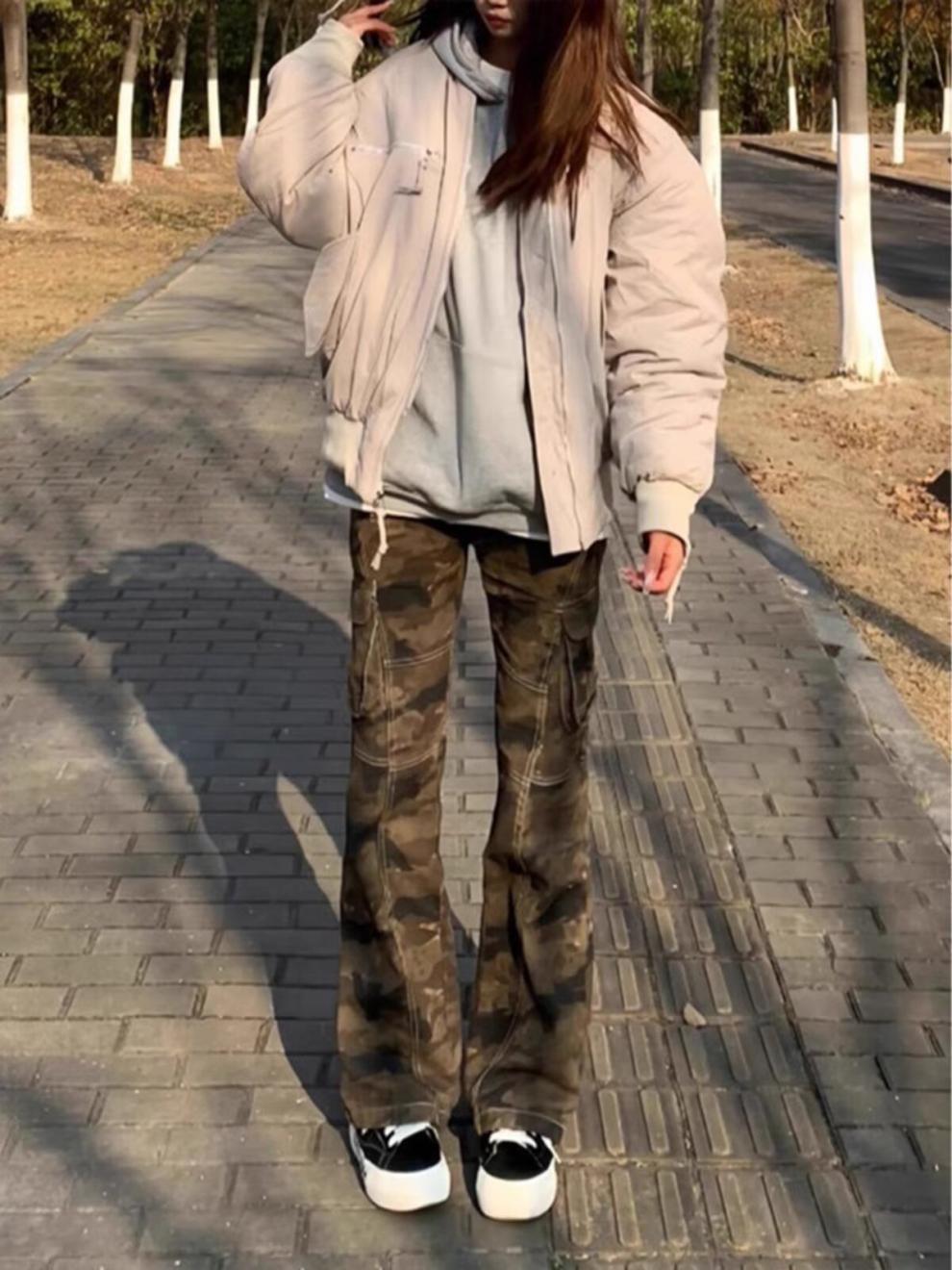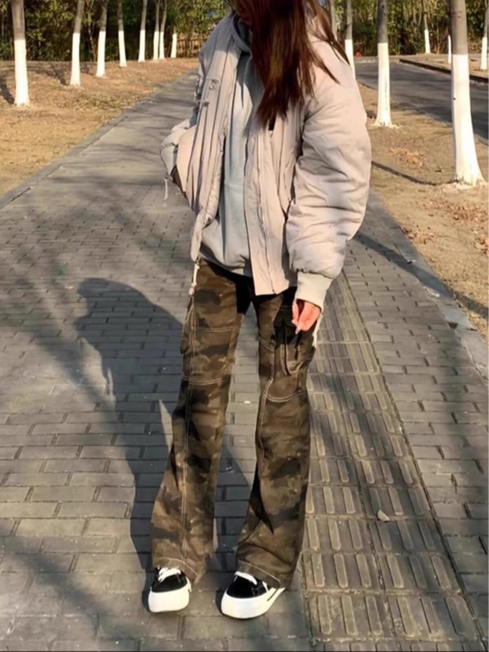 가을 빠른 건조 위장 바지 여성 미국식 스트레이트 느슨한 충전 캐주얼 바지 Instagram 인기 브랜드 간단한 커플 바지스토어 가기