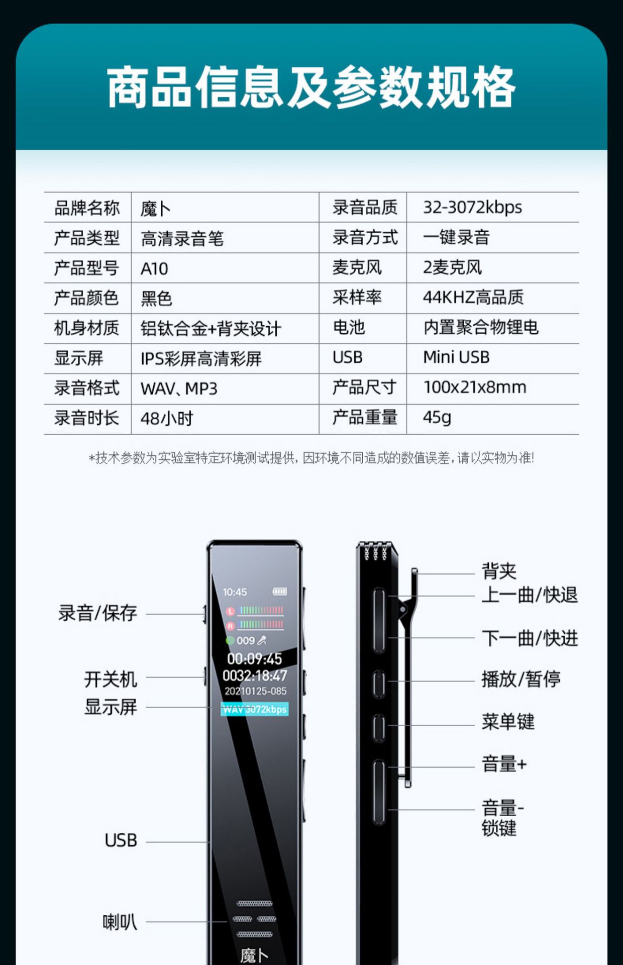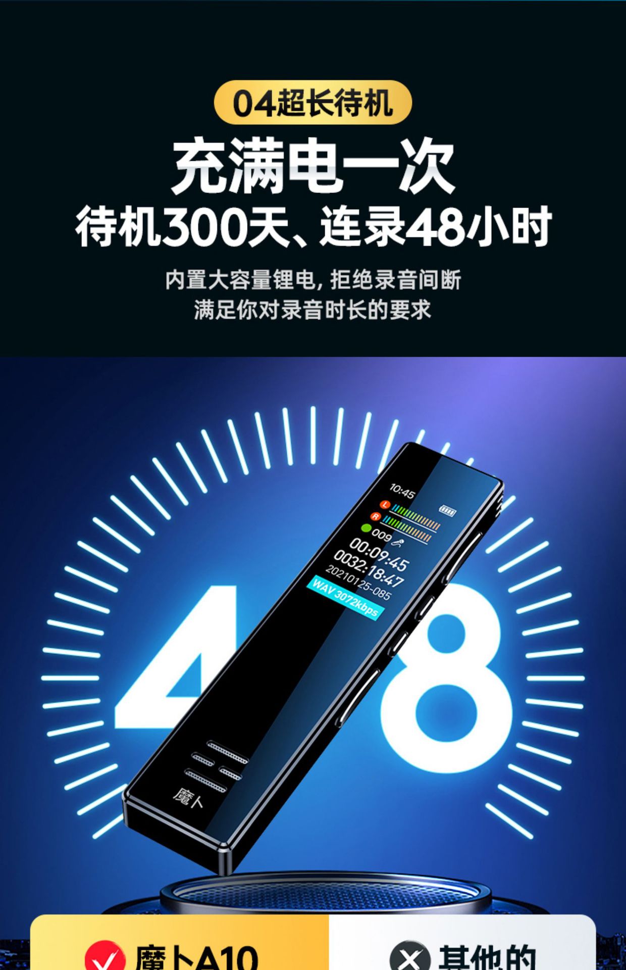 녹음 펜 작은 휴대용 전문 고화질 소음 감소 아티팩트 대용량 학생들은 수업 시간에 텍스트를 바꾸기 위해 슈퍼 긴 대기 사용