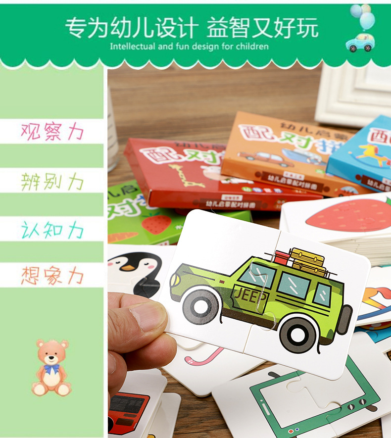 국경 간 페어링 퍼즐 어린이 계몽 교육 만화 교육 재미있는 아기 조기 교육 장난감 카드 퍼즐스토어 가기