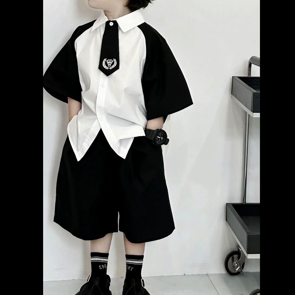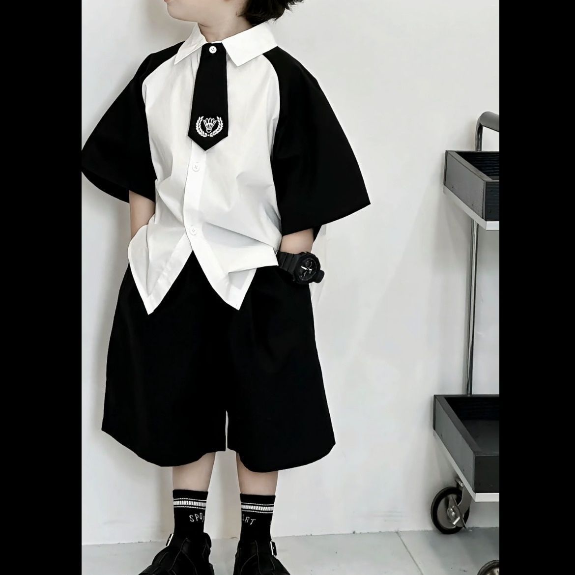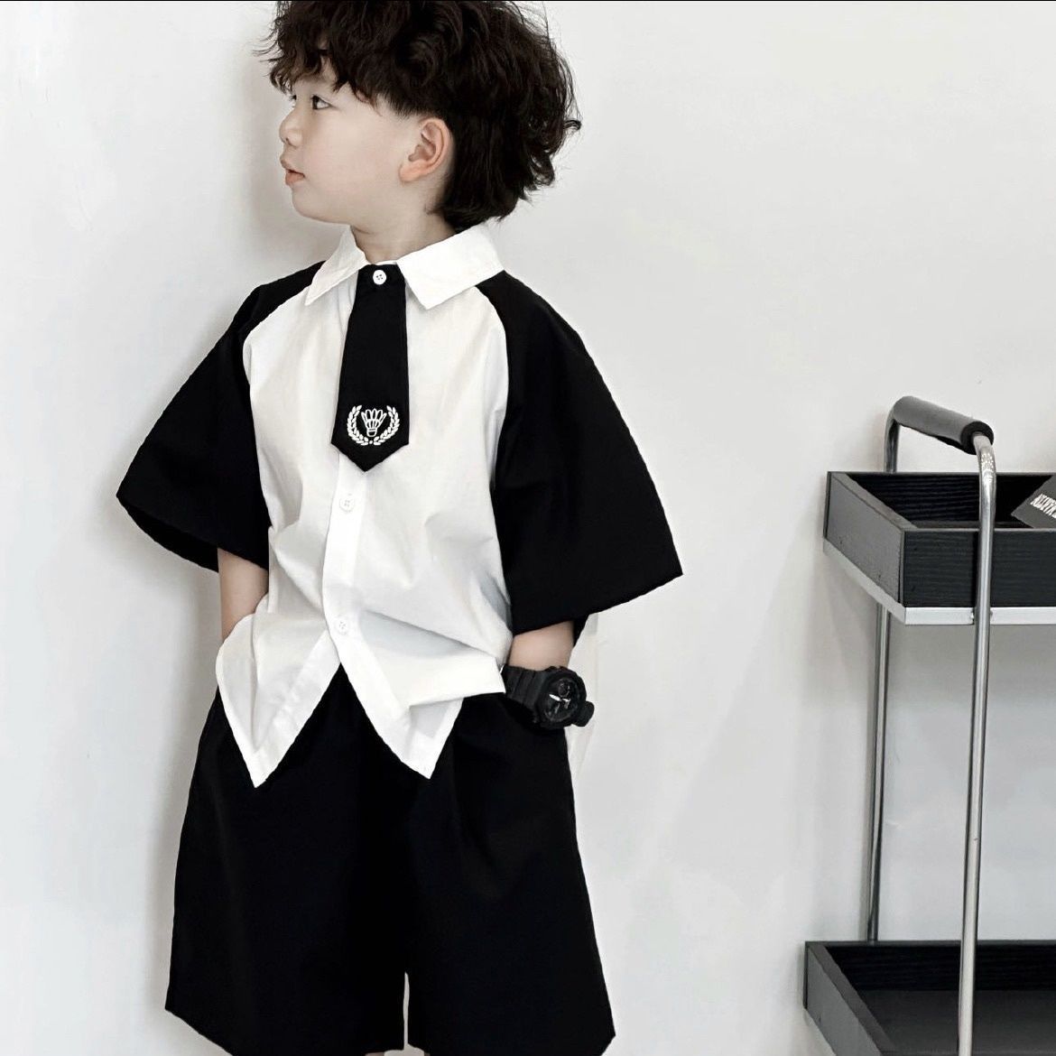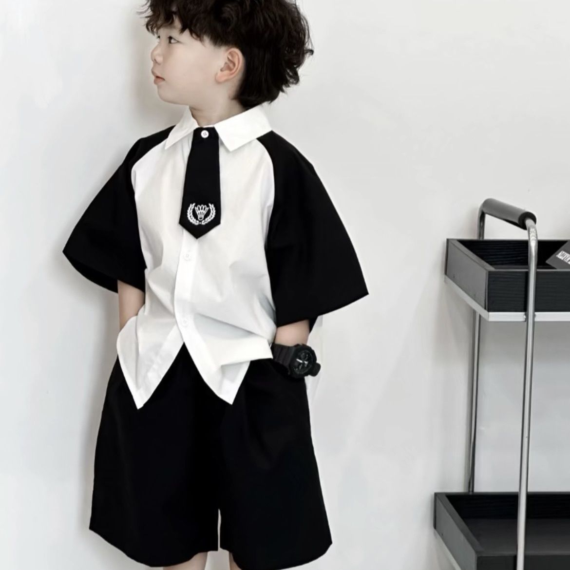 소년 여름 세트 어린이 여름 흰 셔츠 2025 새로운 어린이 잘 생긴 소년 아기 반팔 소년 여름스토어 가기