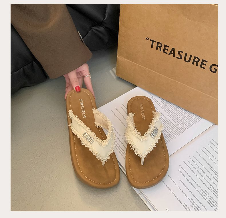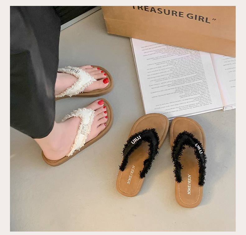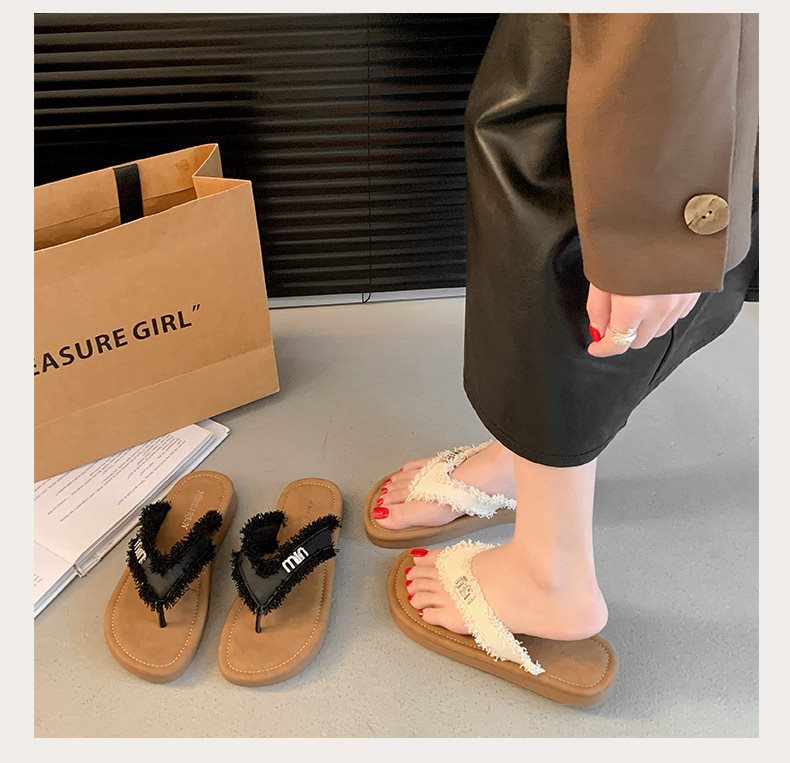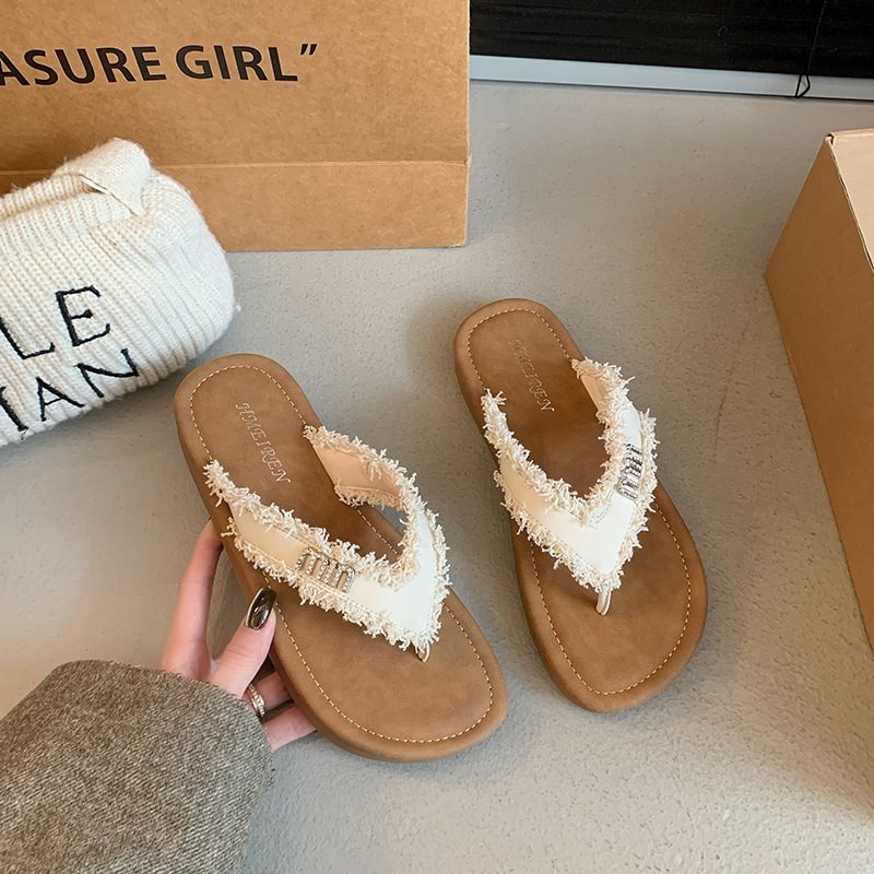 여름 새로운 요정 플립 플롭-플롭 여성 아우터 비치 슈즈 프랑스 스타일 플립 플롭 2025 플랫 소프트 패션스토어 가기