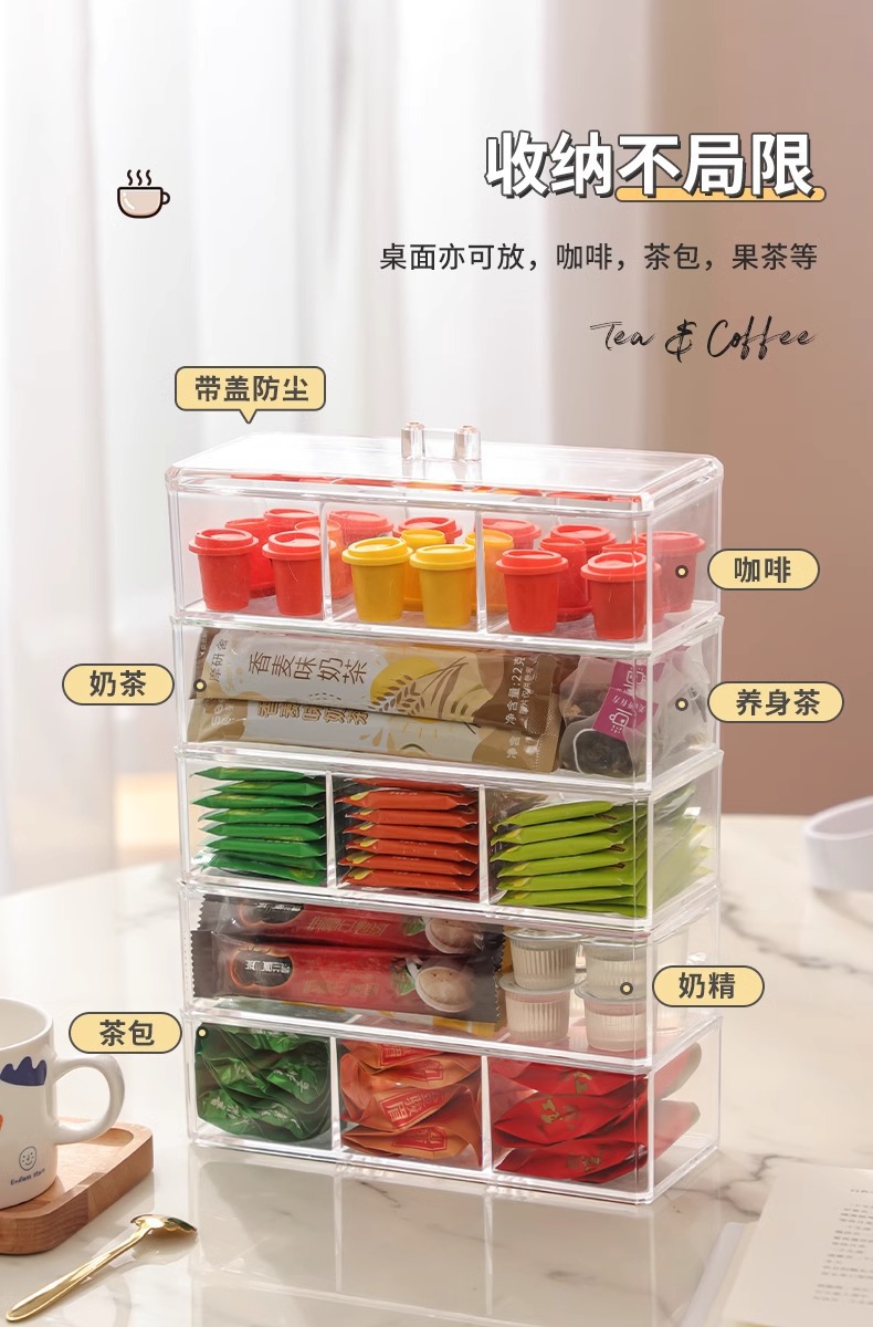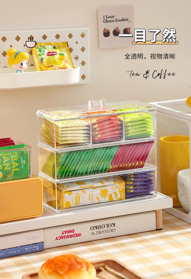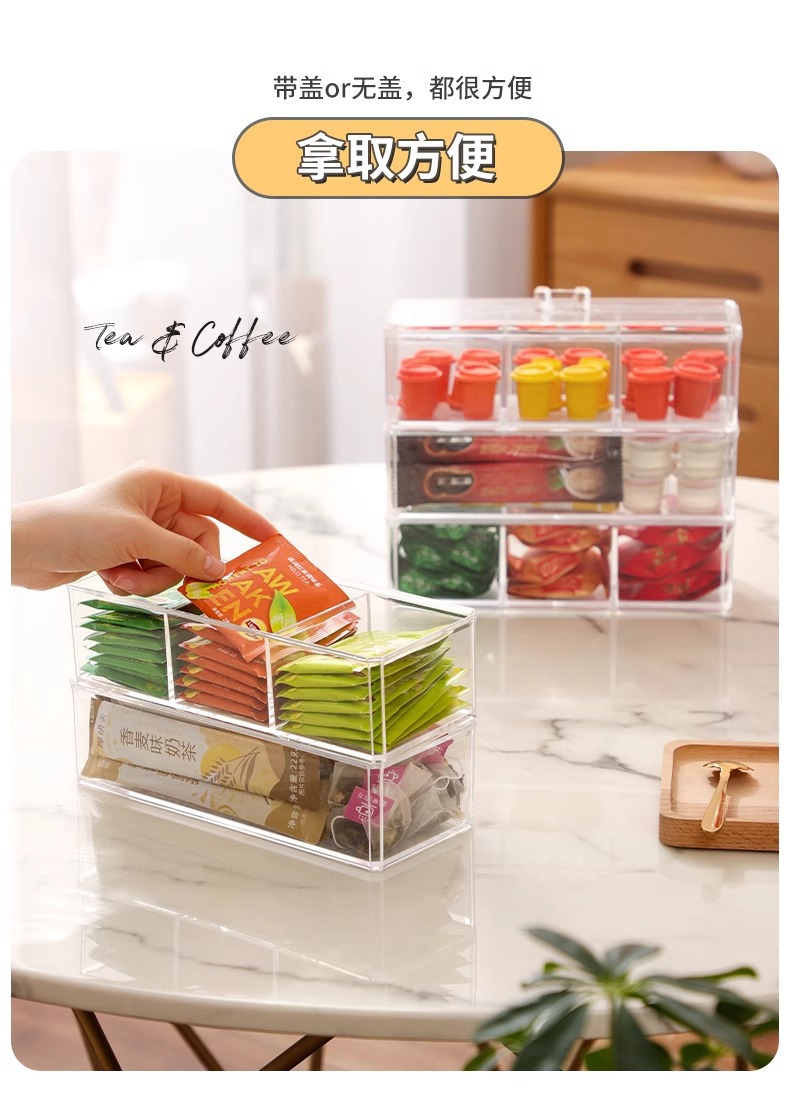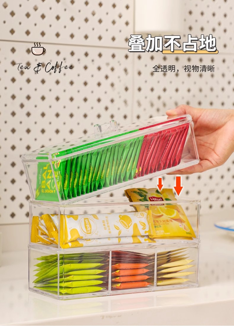 뚜껑이있는 방진 티백 보관 상자 투명한 Superposable Partition 상자 티 룸 바 커피 캡슐 보관 상자스토어 가기