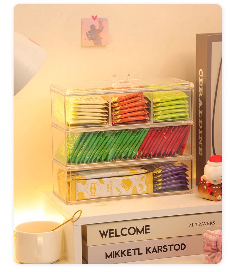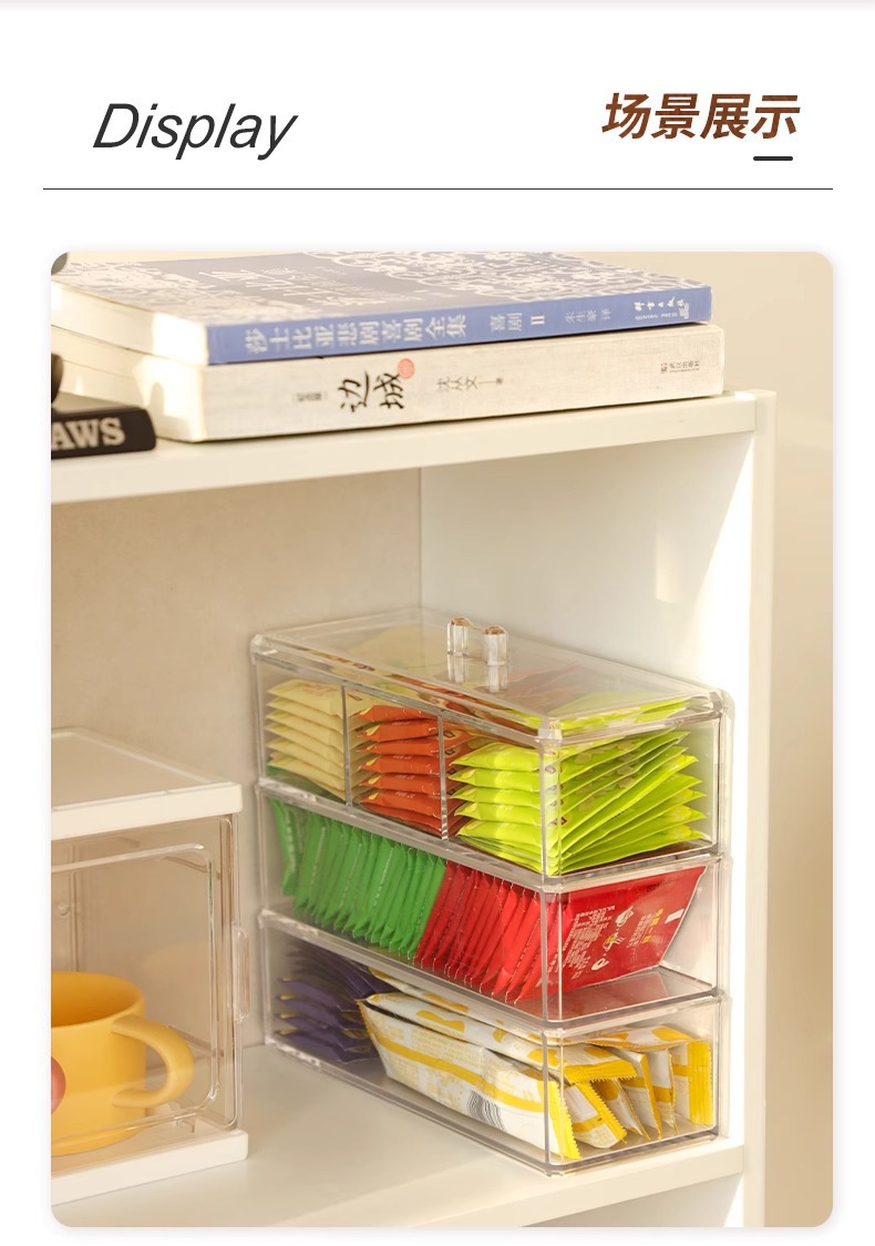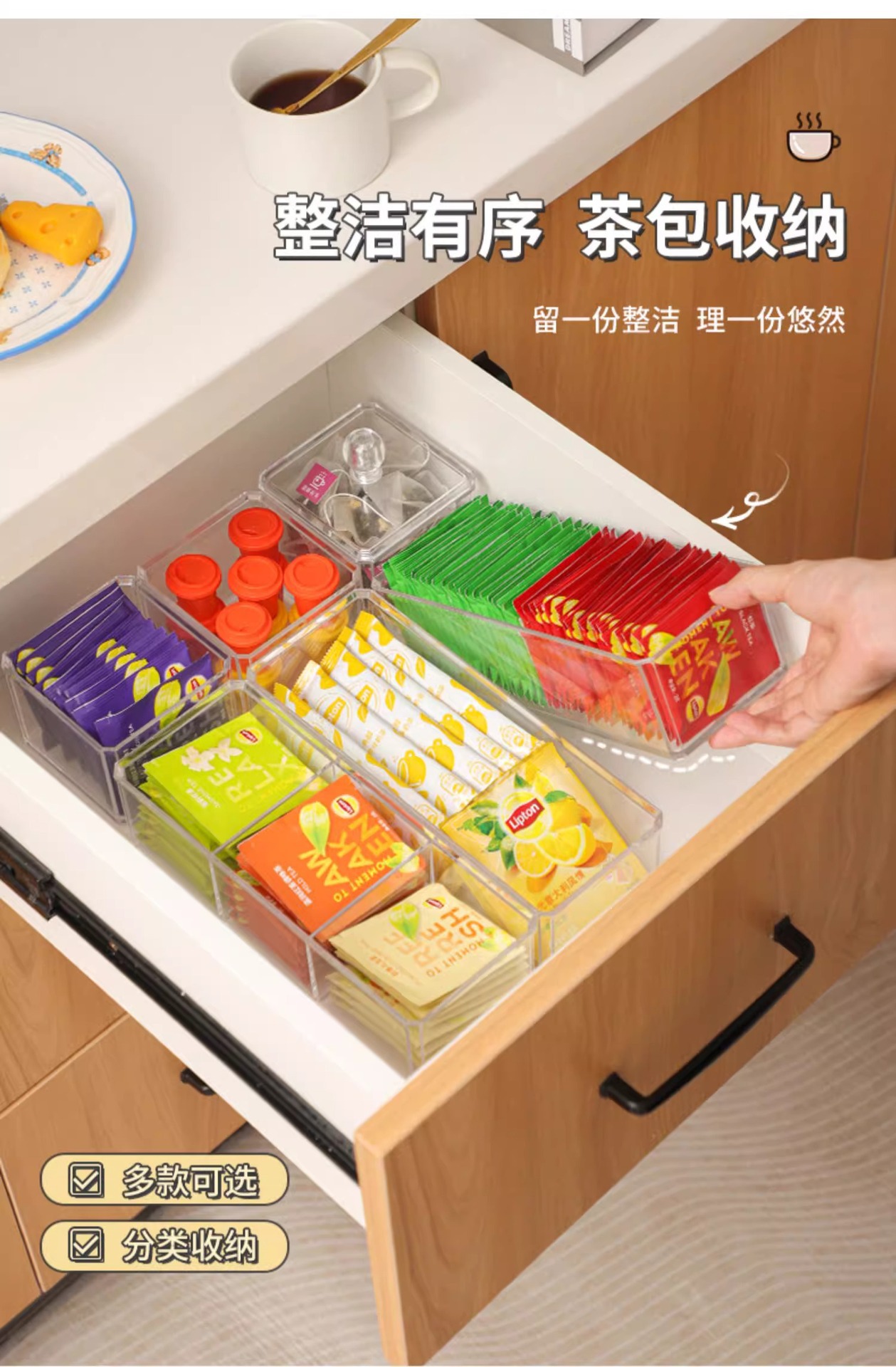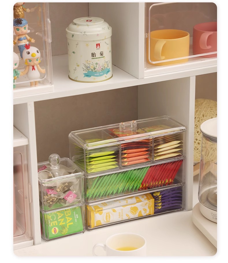 뚜껑이있는 방진 티백 보관 상자 투명한 Superposable Partition 상자 티 룸 바 커피 캡슐 보관 상자스토어 가기