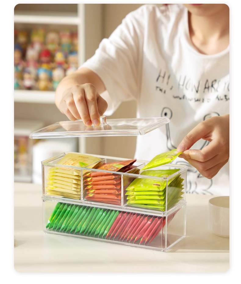 뚜껑이있는 방진 티백 보관 상자 투명한 Superposable Partition 상자 티 룸 바 커피 캡슐 보관 상자