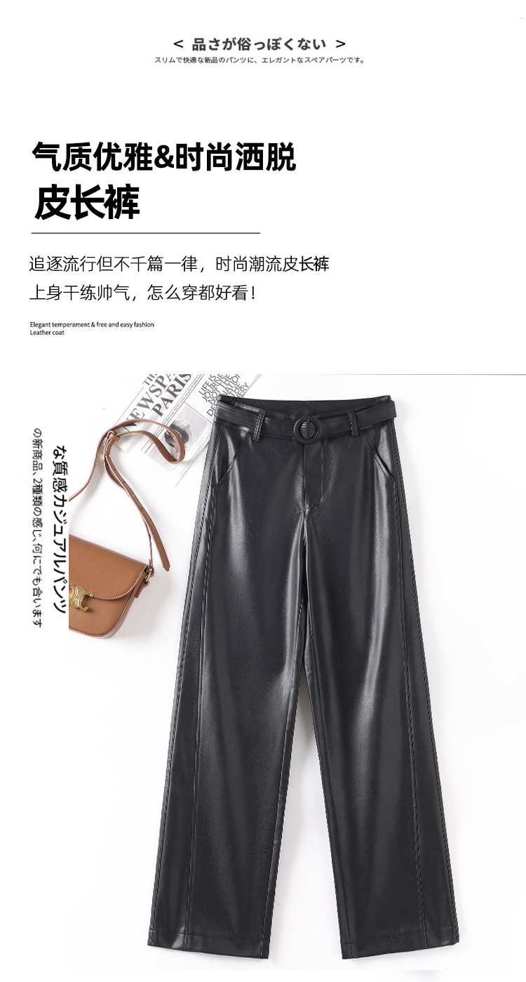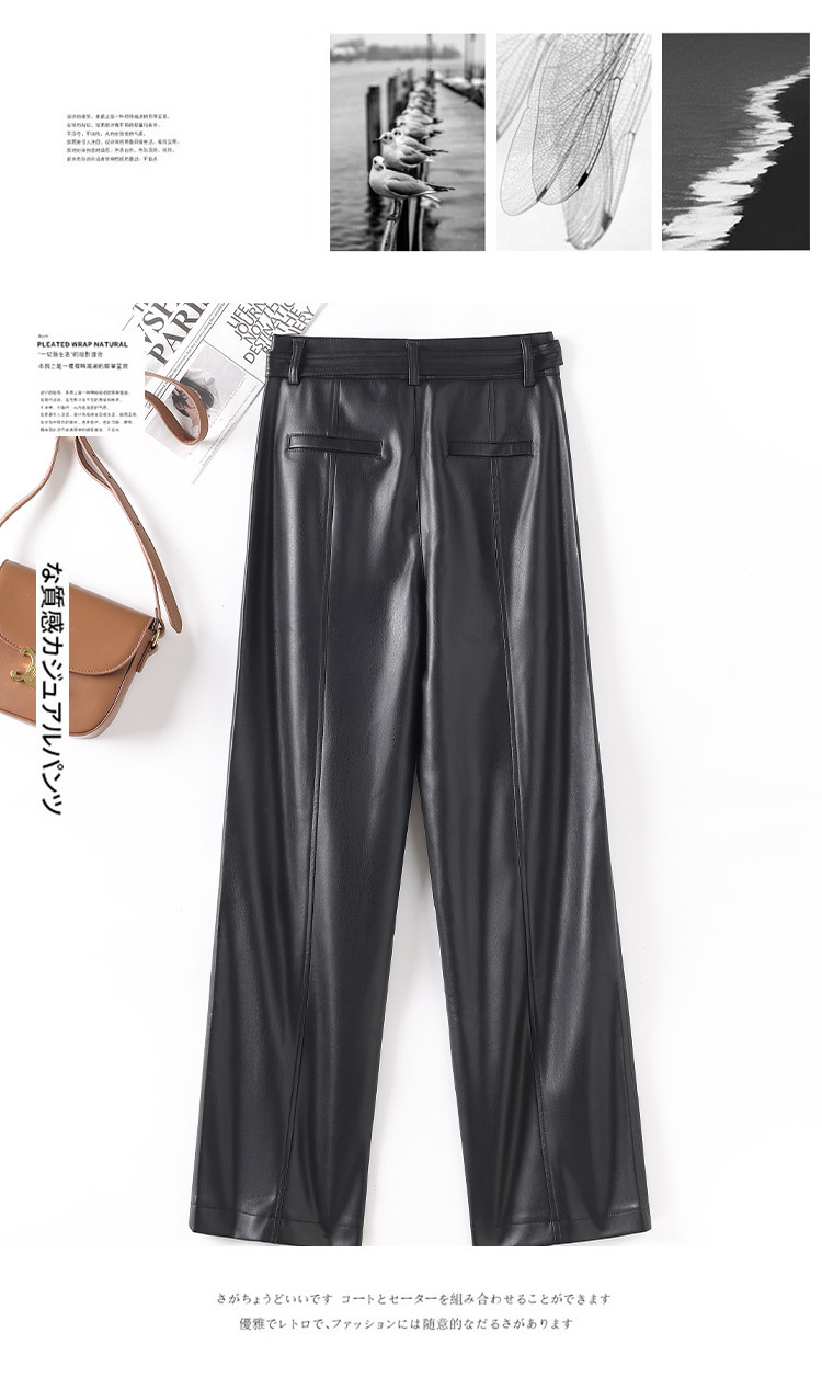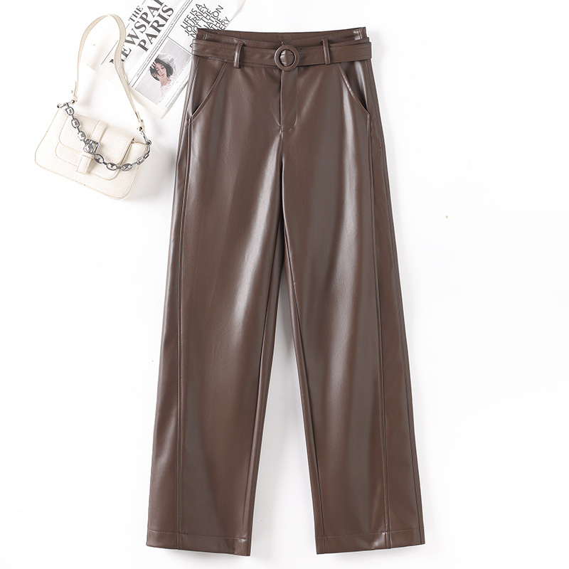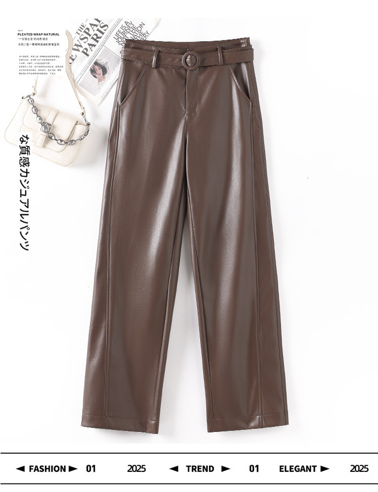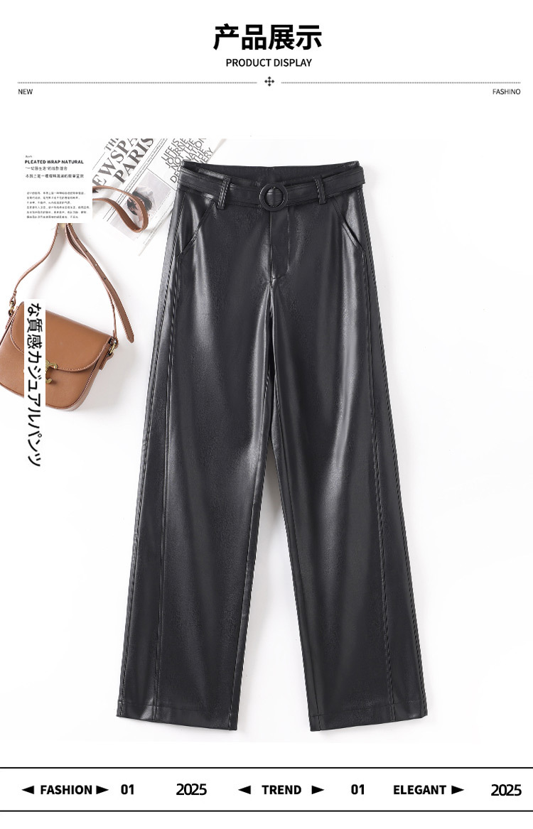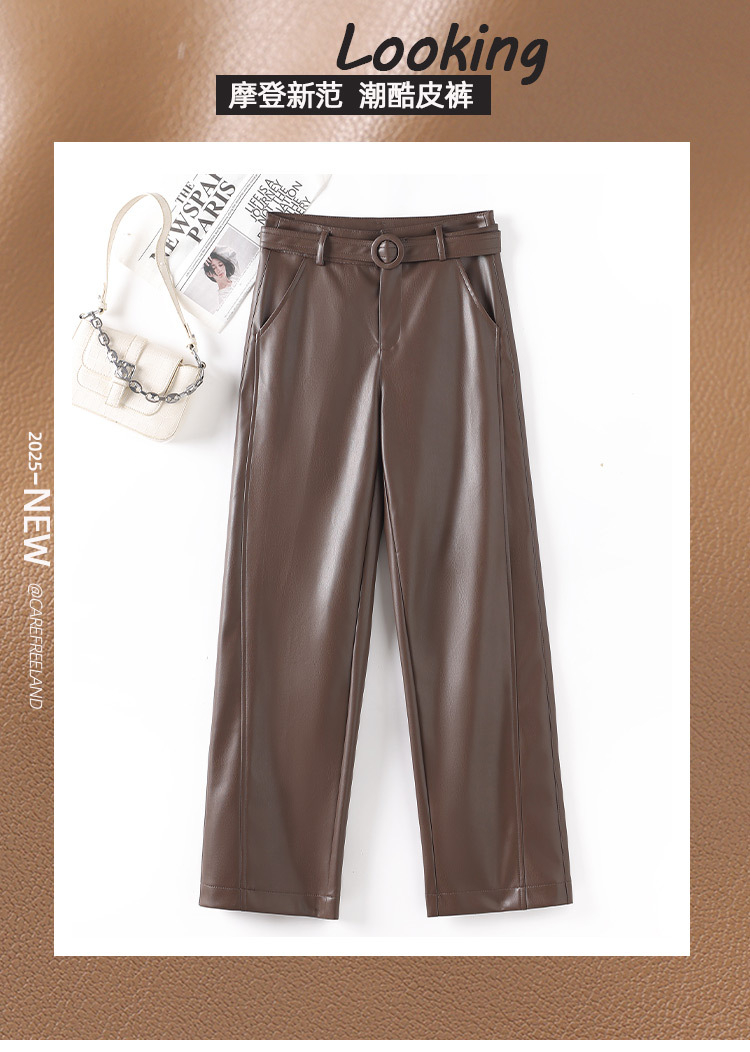 2025 봄 새 가죽 바지 여성 한국 스타일 플러스 사이즈 느슨한 여성 가죽 바지 캐주얼 올 매치 벨트 스트레이트 다리 바지 1905스토어 가기