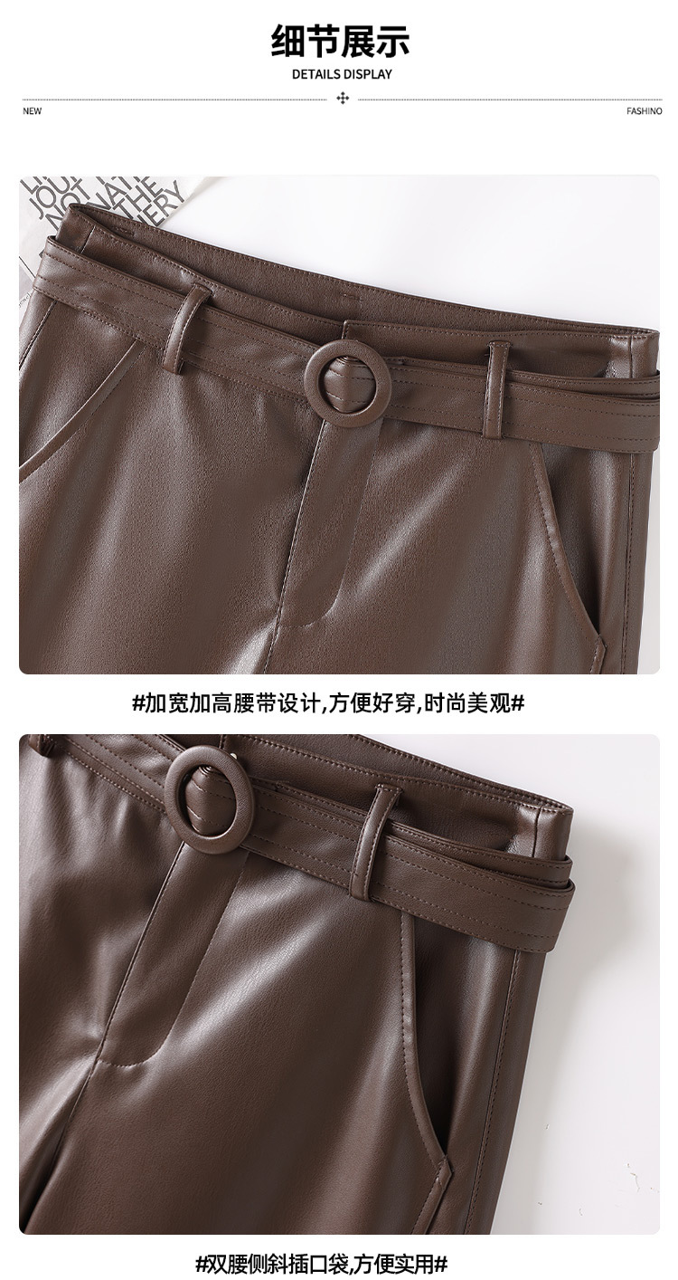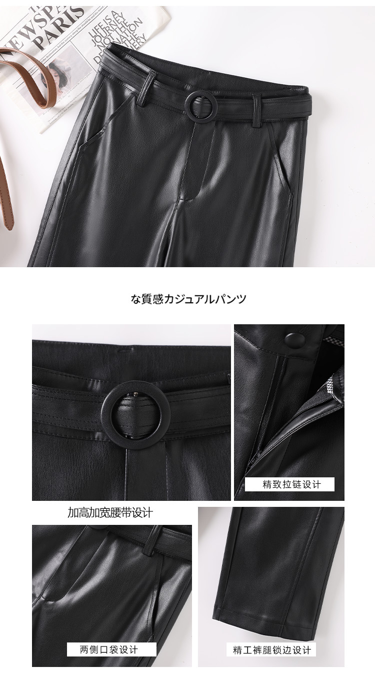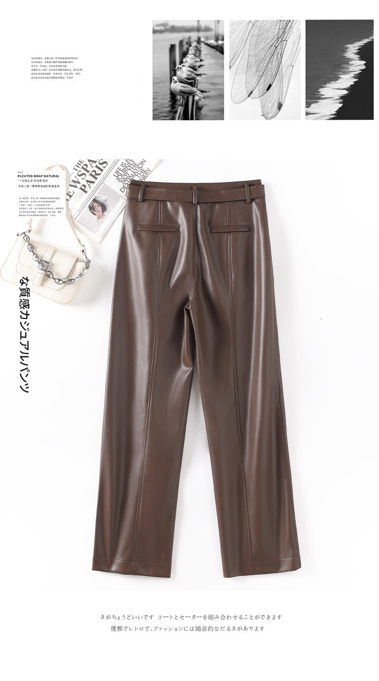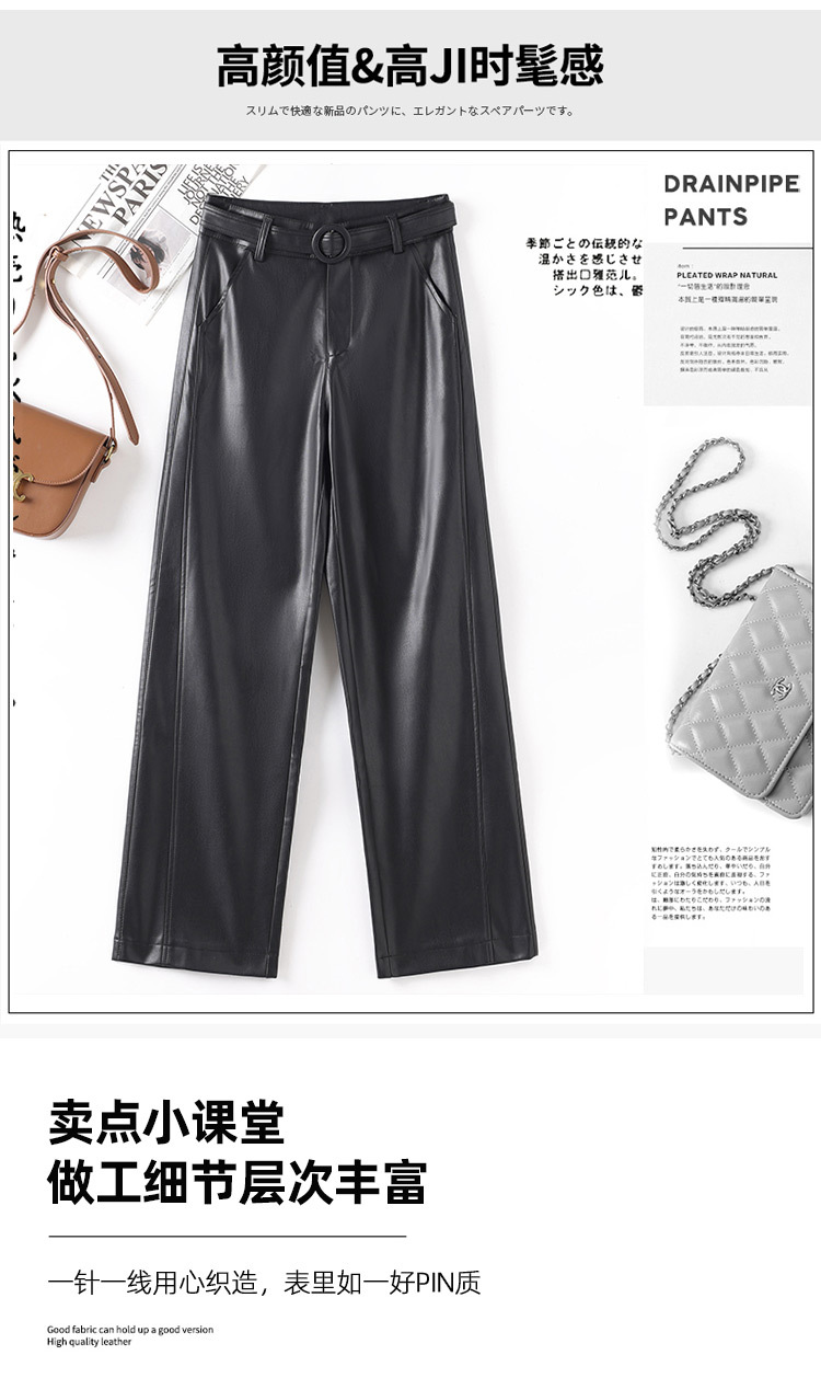 2025 봄 새 가죽 바지 여성 한국 스타일 플러스 사이즈 느슨한 여성 가죽 바지 캐주얼 올 매치 벨트 스트레이트 다리 바지 1905스토어 가기