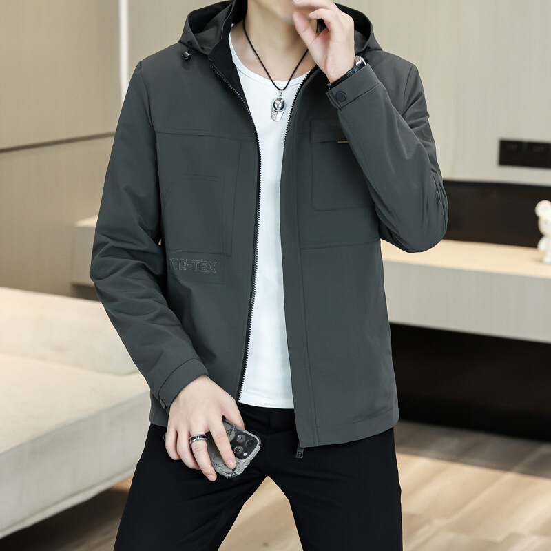 가을 2024 새로운 남성 패션 후드 자켓 슬림 핏 캐주얼 자켓 남자 잘 생긴 올매치 탑 남자스토어 가기