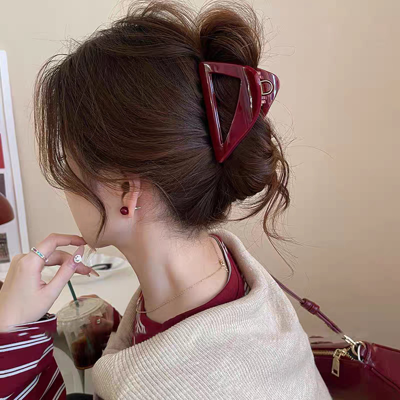 • 4#초콜릿 브라운 중공 경사 삼각형 8cm 헤어 그립