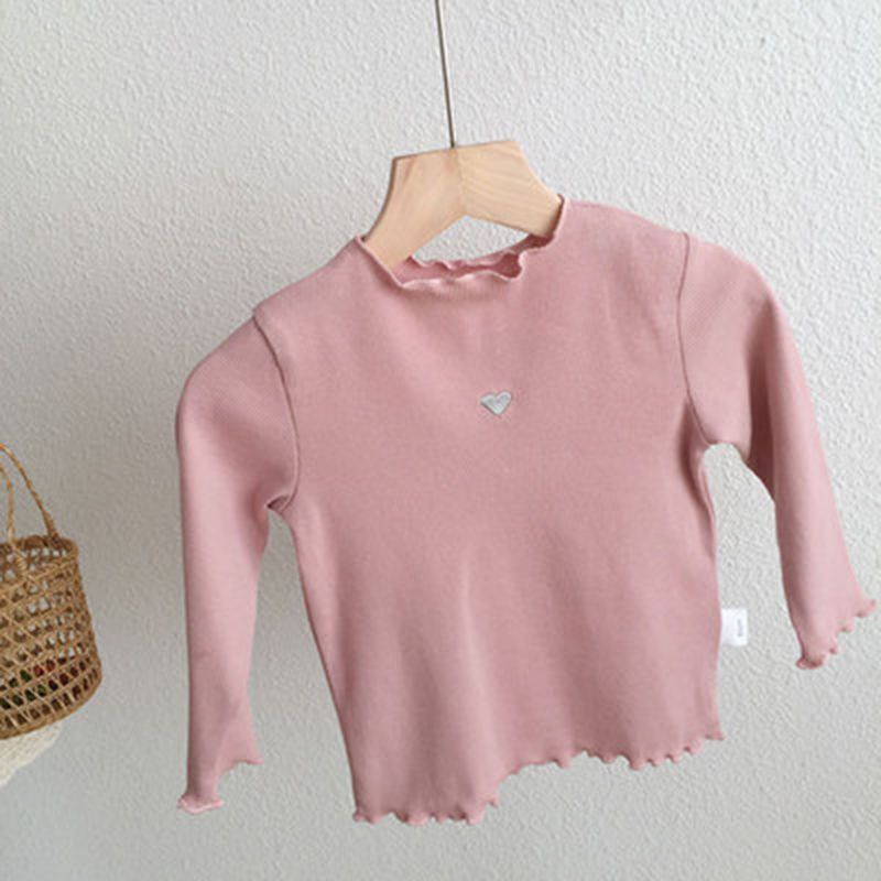 봄과 가을 여성 아동복 티셔츠 아기의 서양식 어린이 성격 유행 한국 스타일 사랑 자수 나무 귀 달콤한 베이스 셔츠스토어 가기