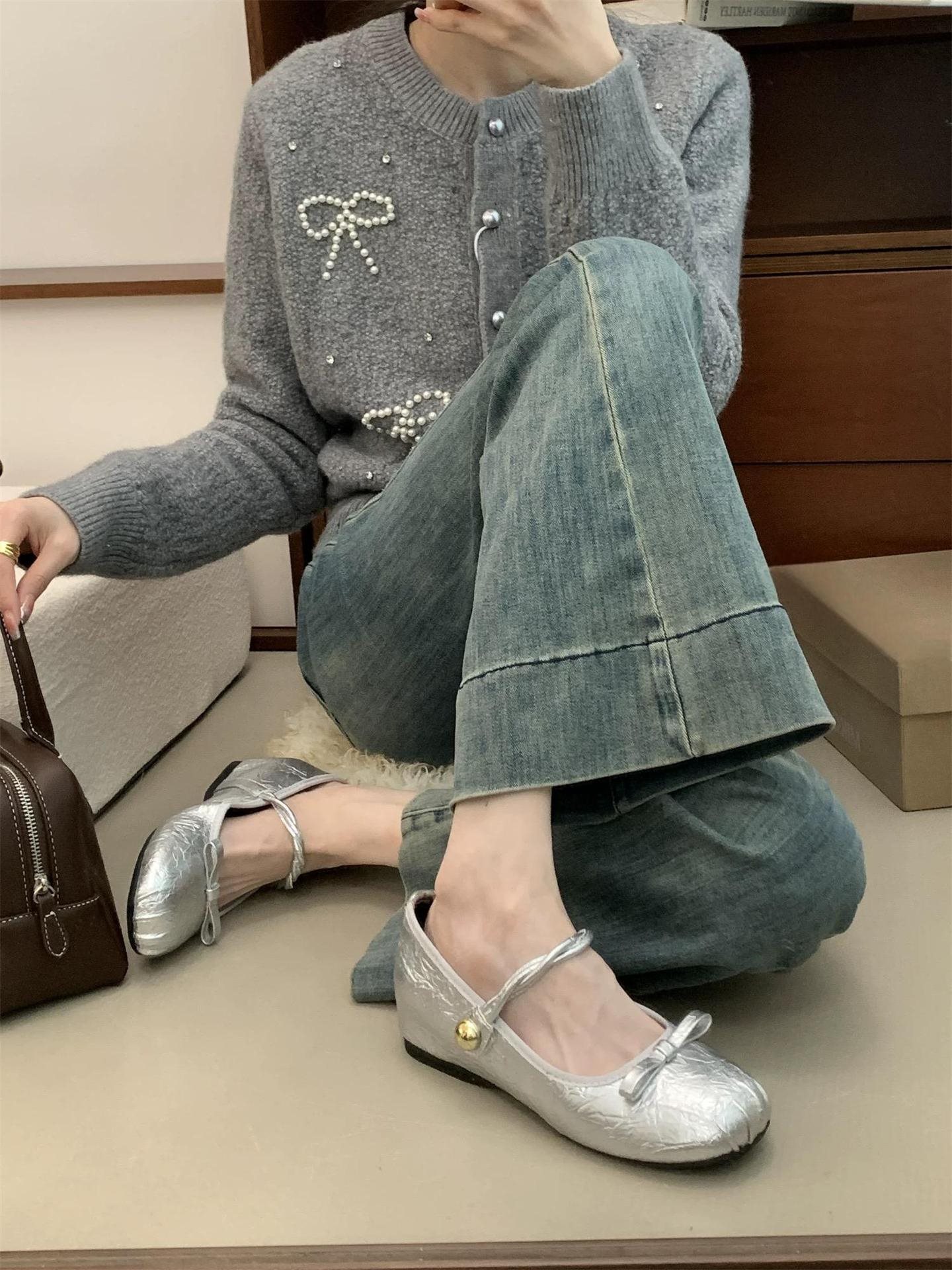 내부 높이 증가 봄 메리 제인 신발 새로운 블랙 프랑스 가죽 신발 레트로 싱글 레이어 신발 여성의 2025 통근 블루스토어 가기