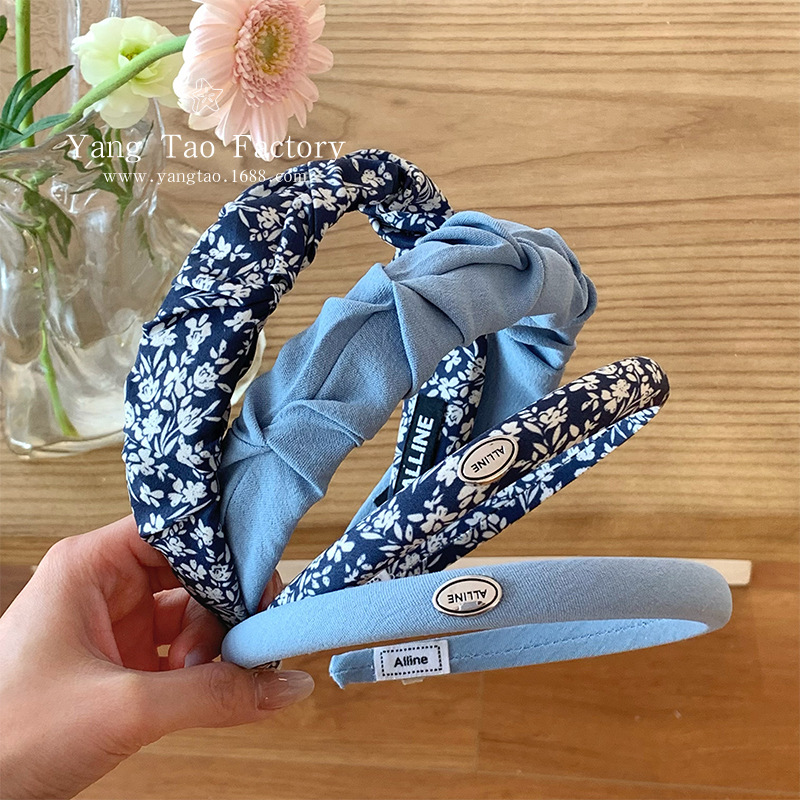 데님 꽃 머리 후프 봄과 여름 신선한 스타일 넓은 챙이 헤어 아웃 간단한 올 매치 머리띠 머리 헤어 액세서리스토어 가기