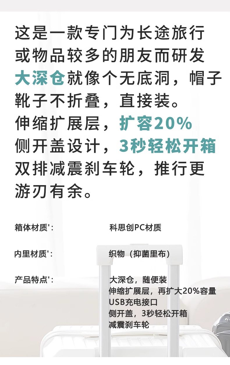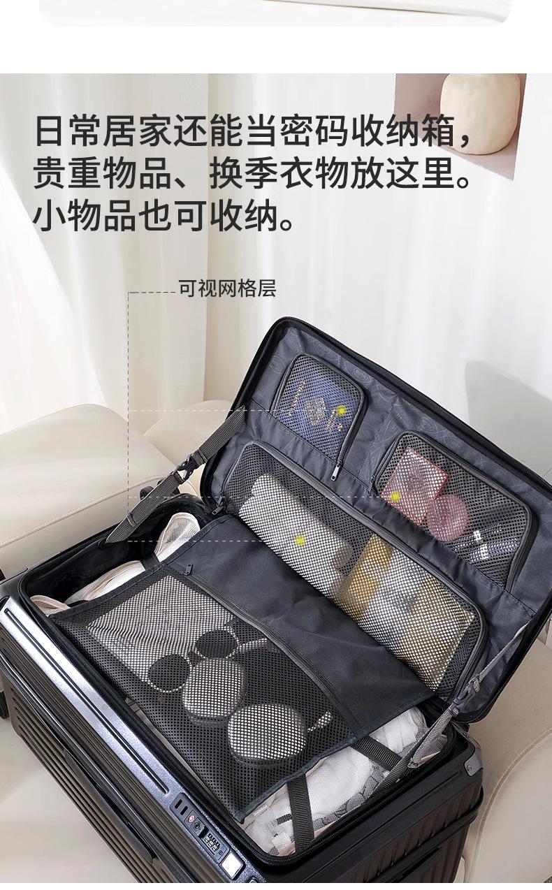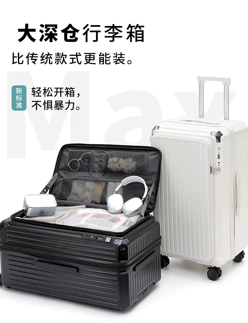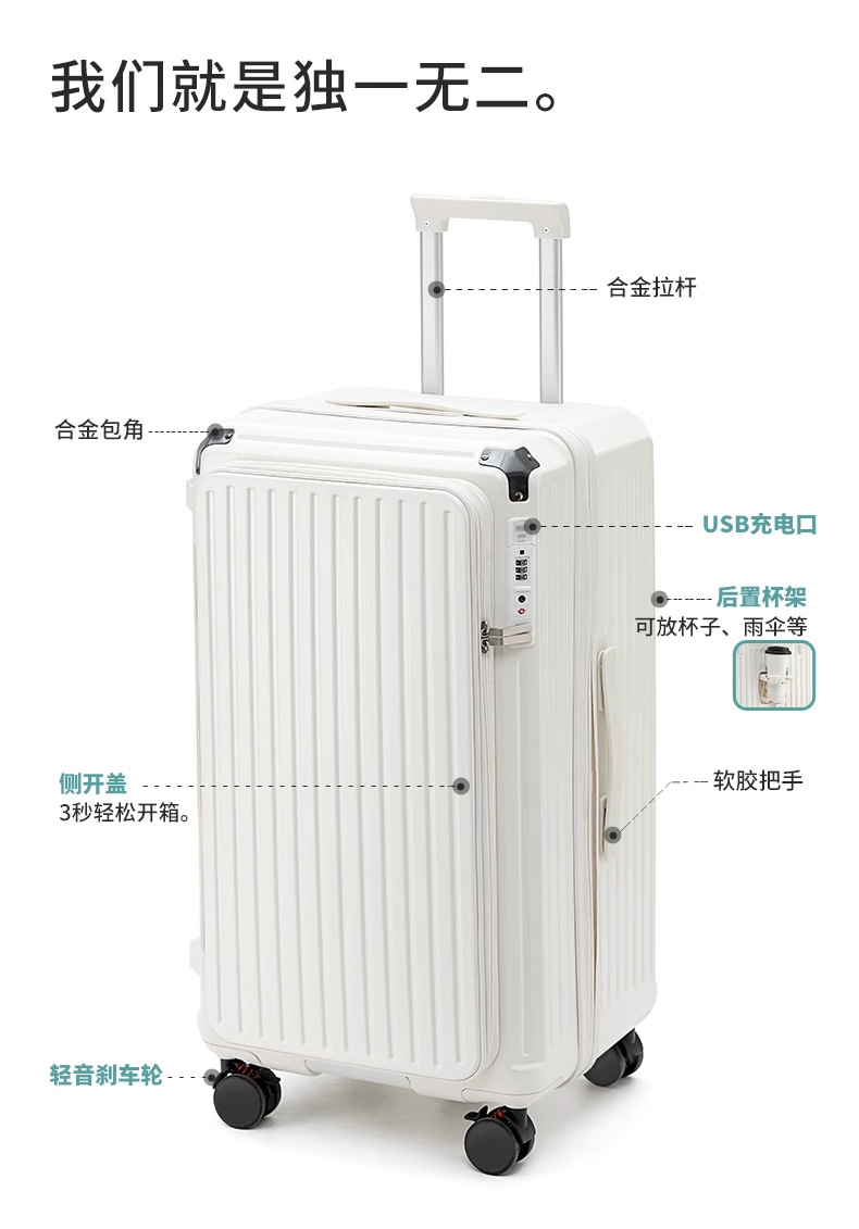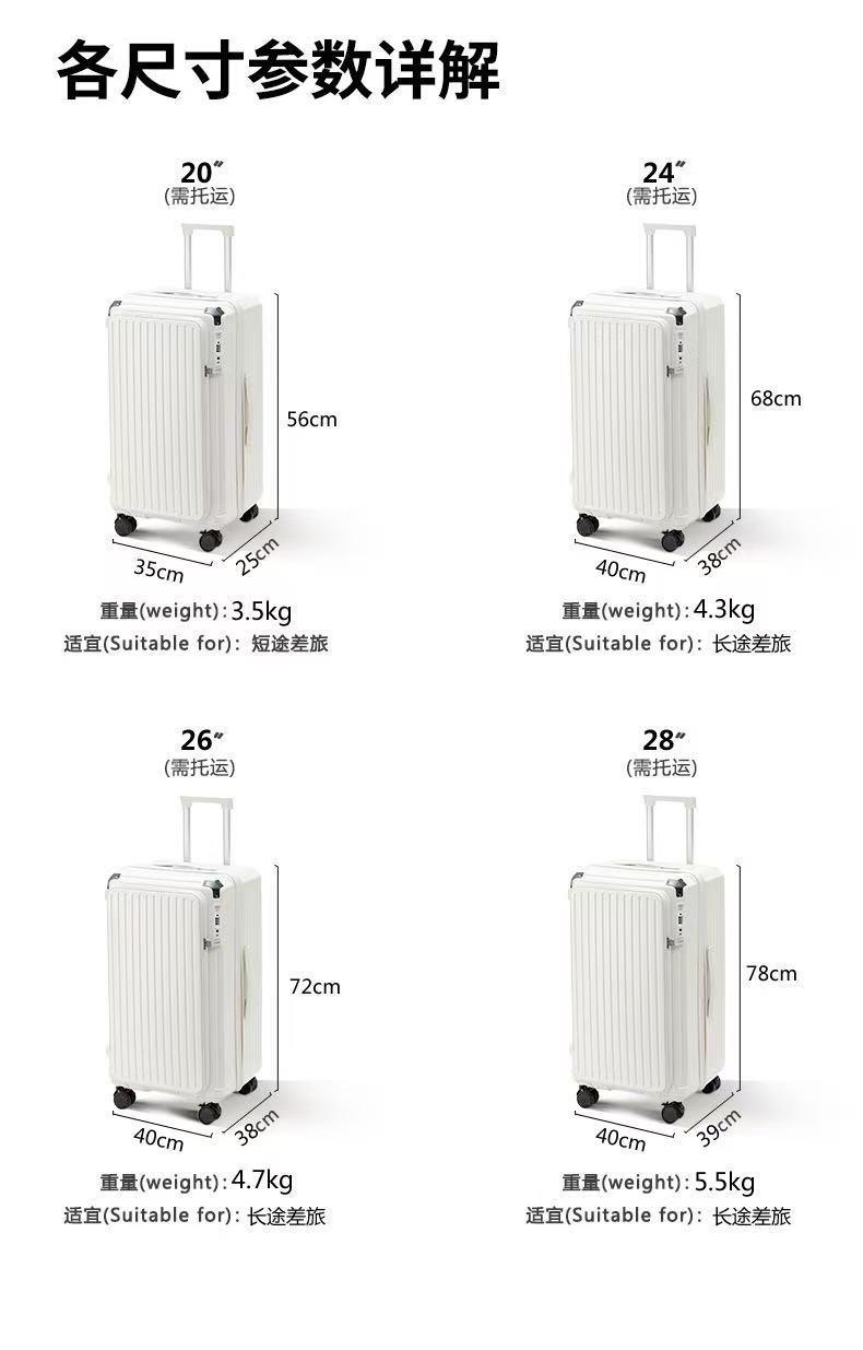 새로운 측면 개방 대용량 수하물 케이스 여성 비밀번호 트롤리 케이스 남성 20 인치 5 륜 가방 32 확장 가능한 여행 가방스토어 가기